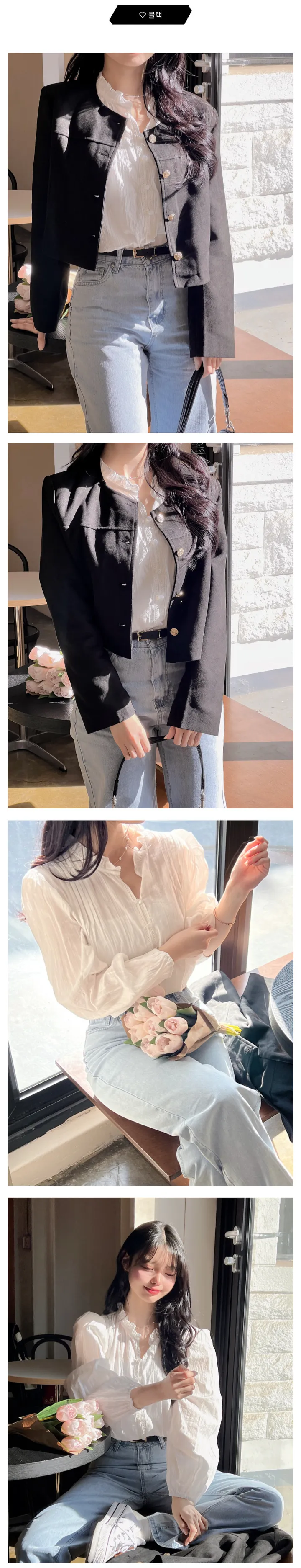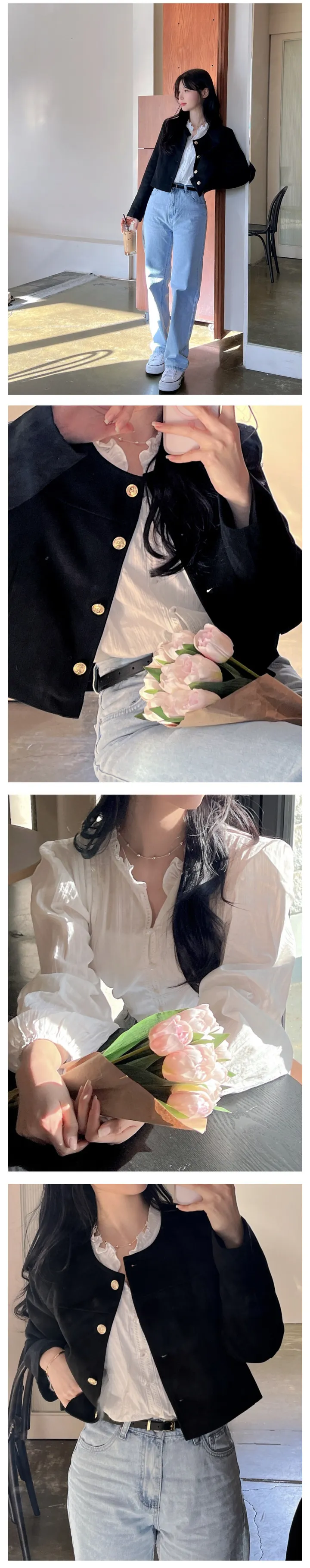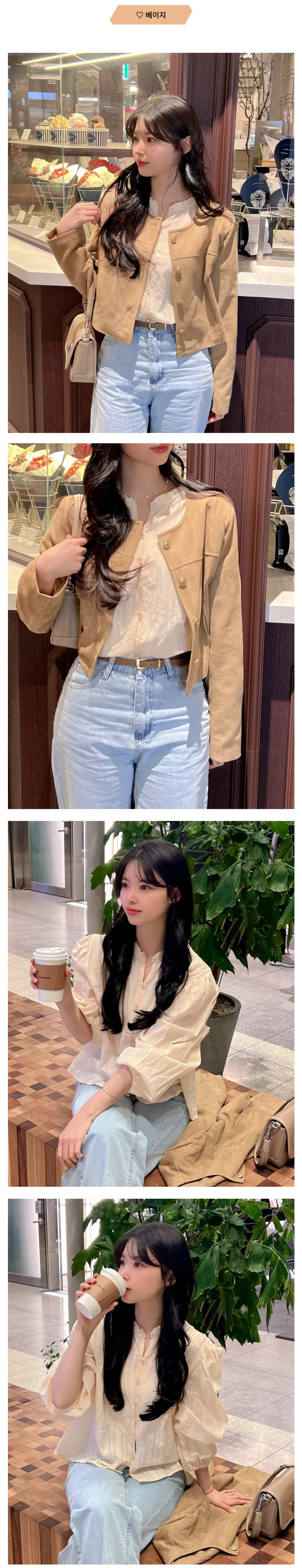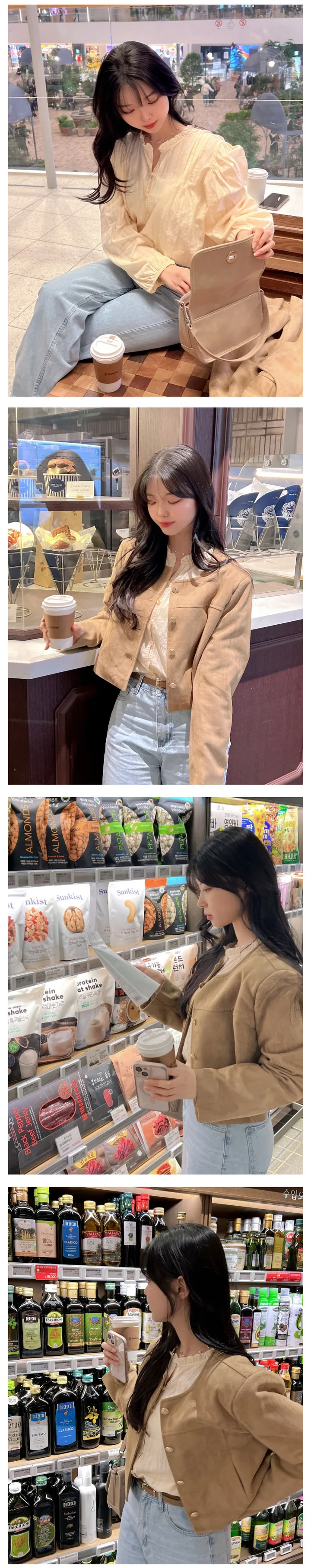 スエードノーカラーラウンドネックセミクロップドジャケット