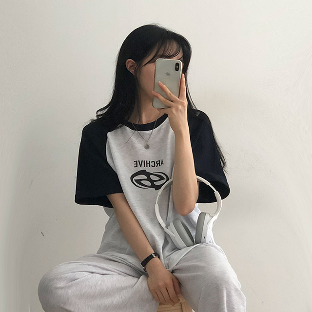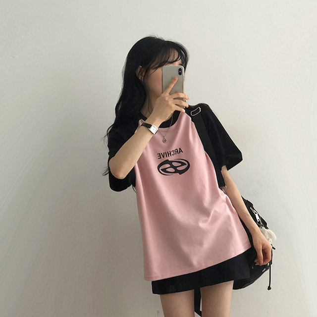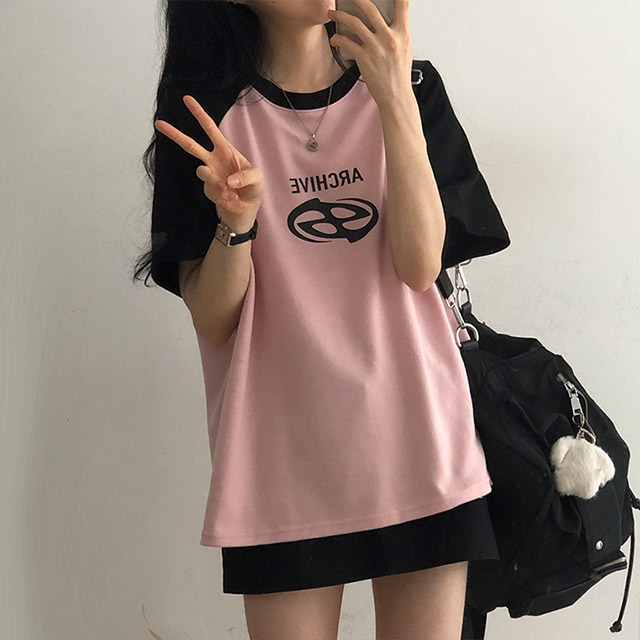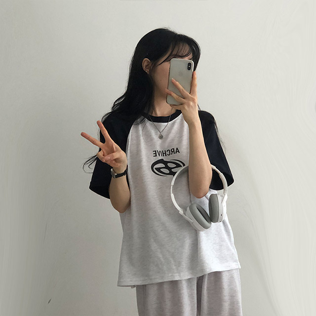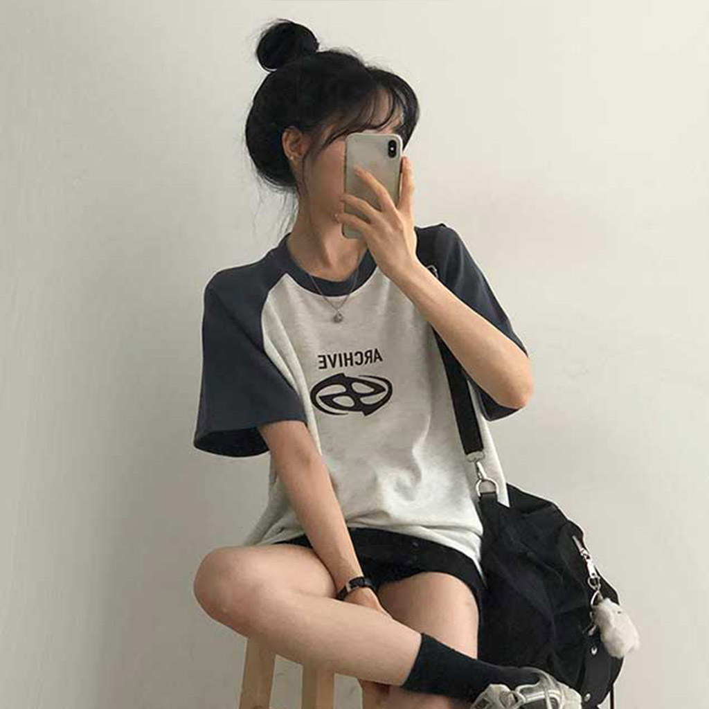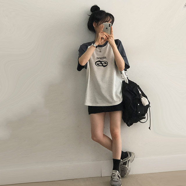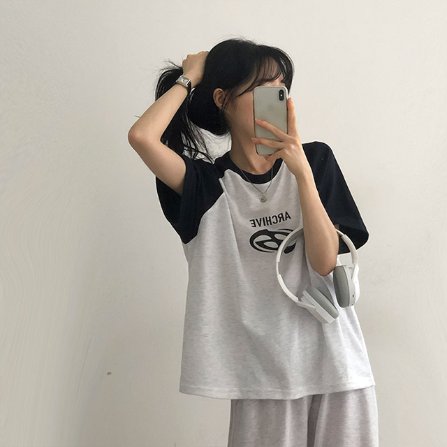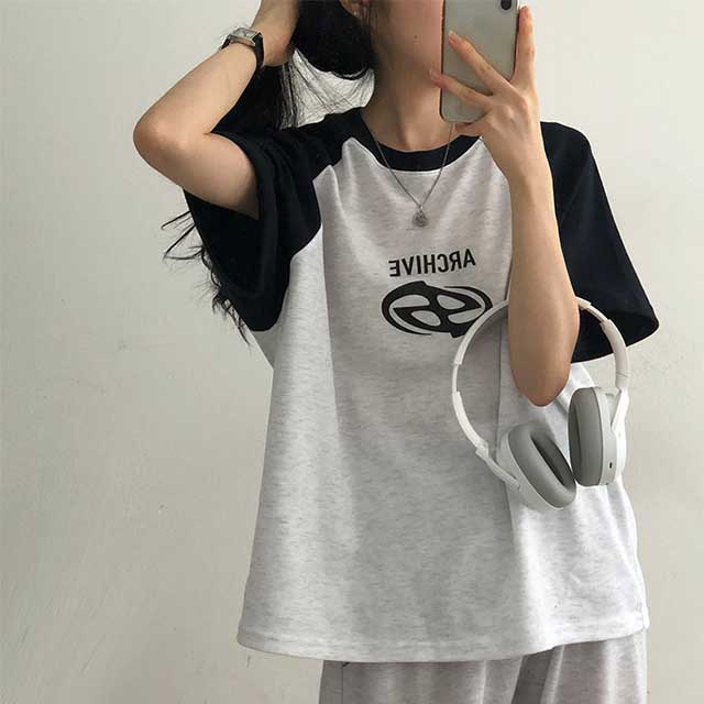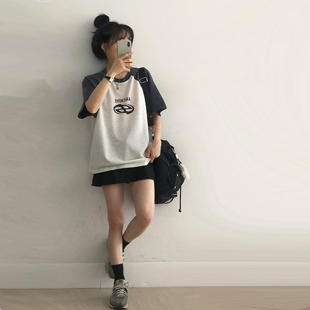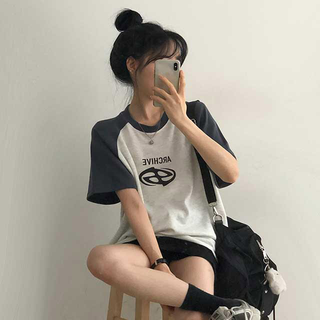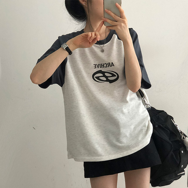 [3color]y2kカジュアルラグランバイカラー半袖Tシャツ