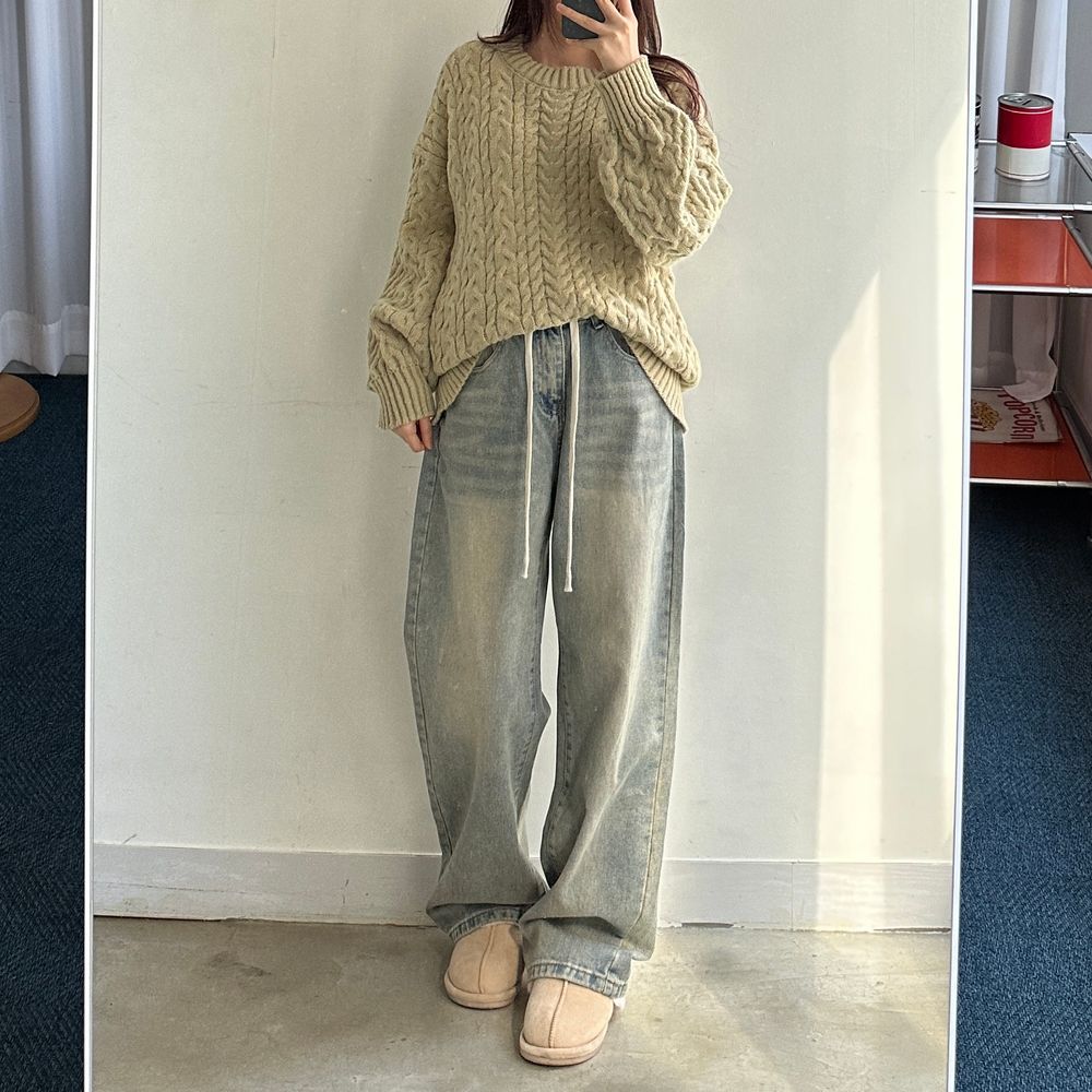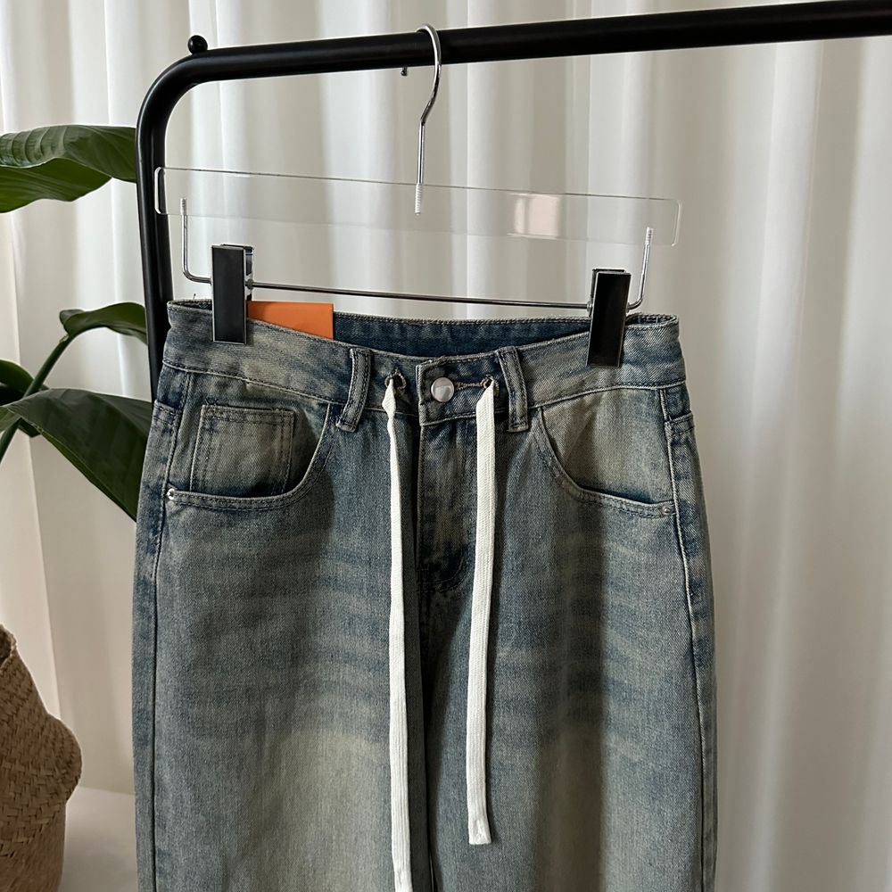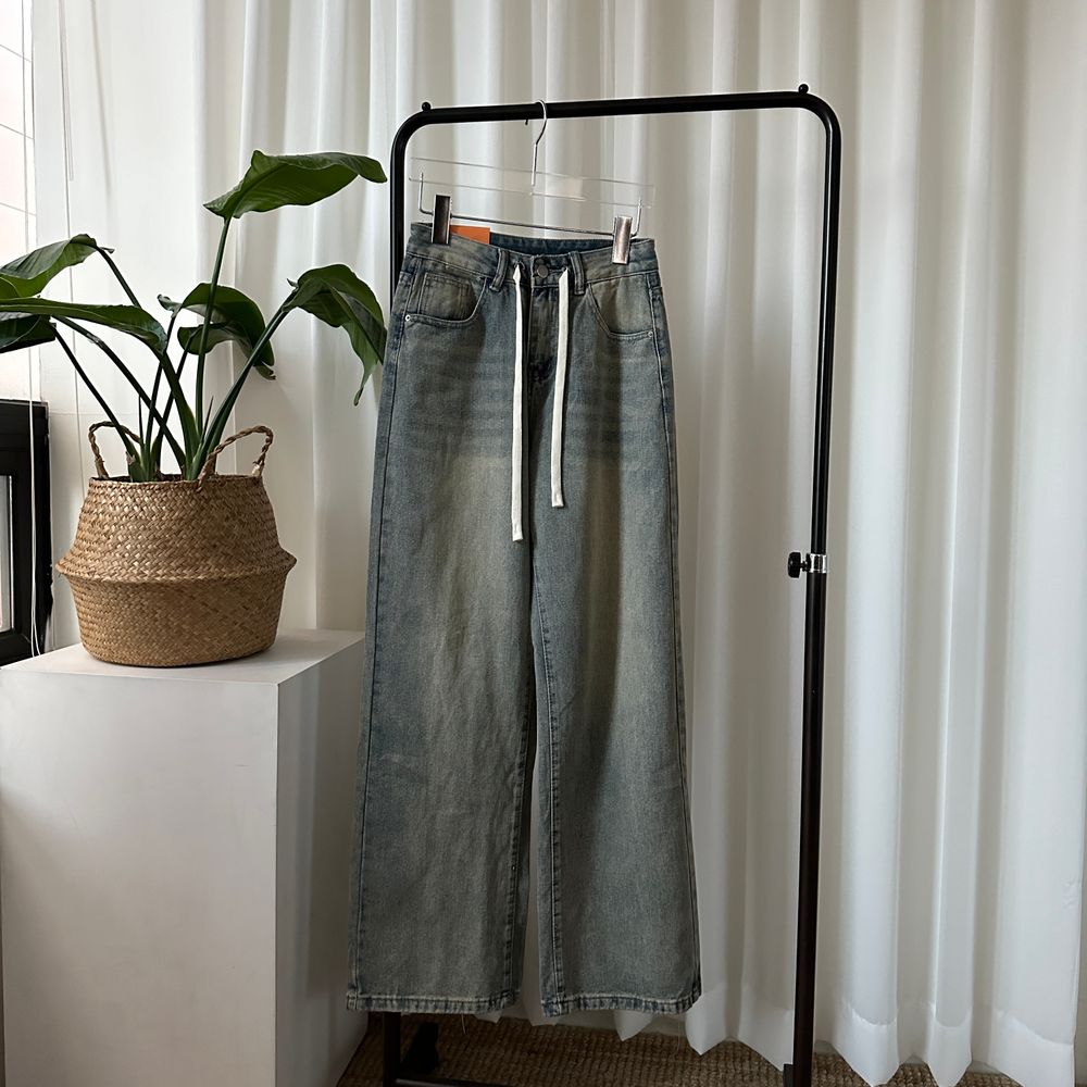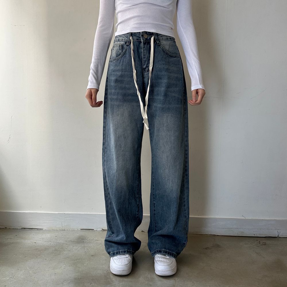 ウエスト紐ワイドデニムパンツ