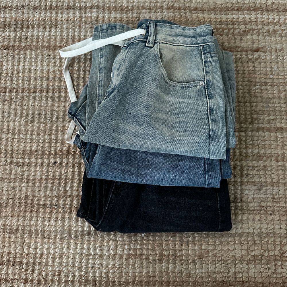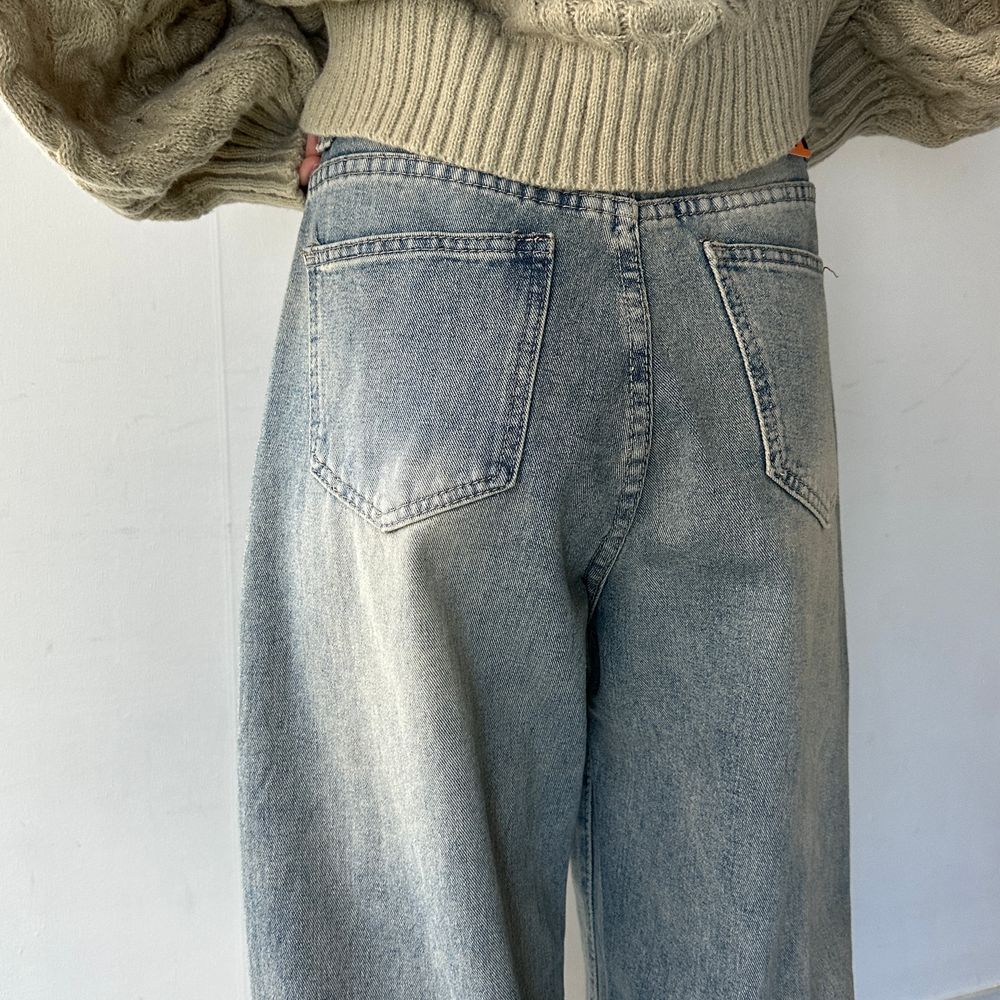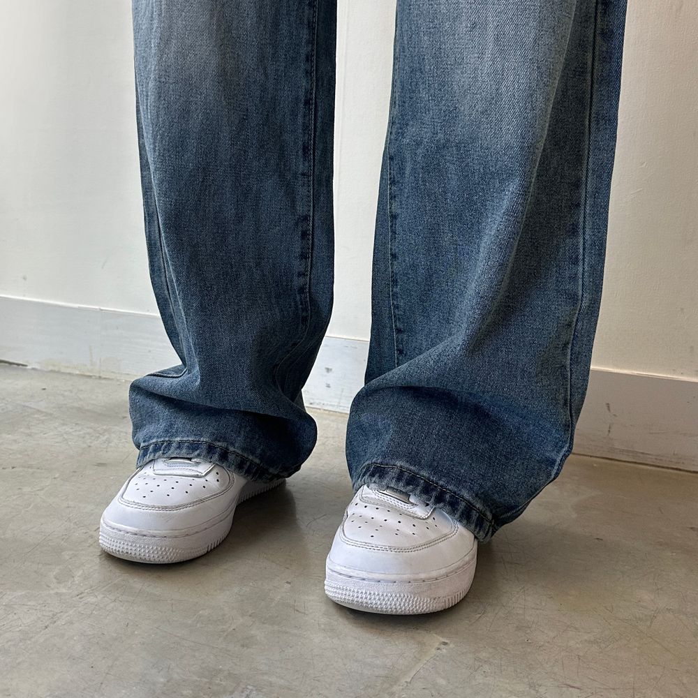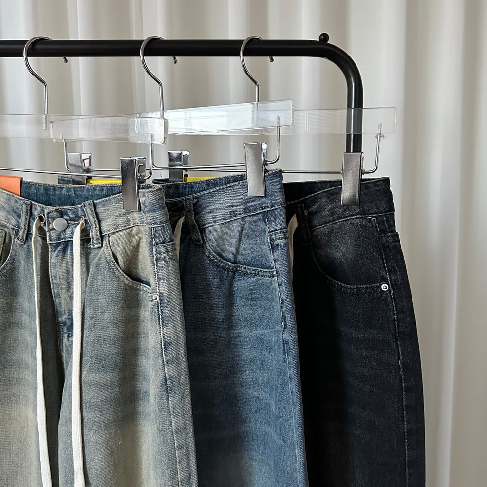 ウエスト紐ワイドデニムパンツ