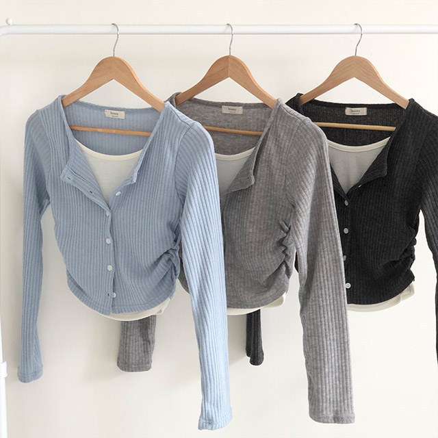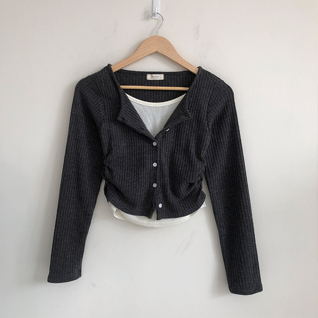 ローズシャーリングボタンカーディガンレイヤードセット