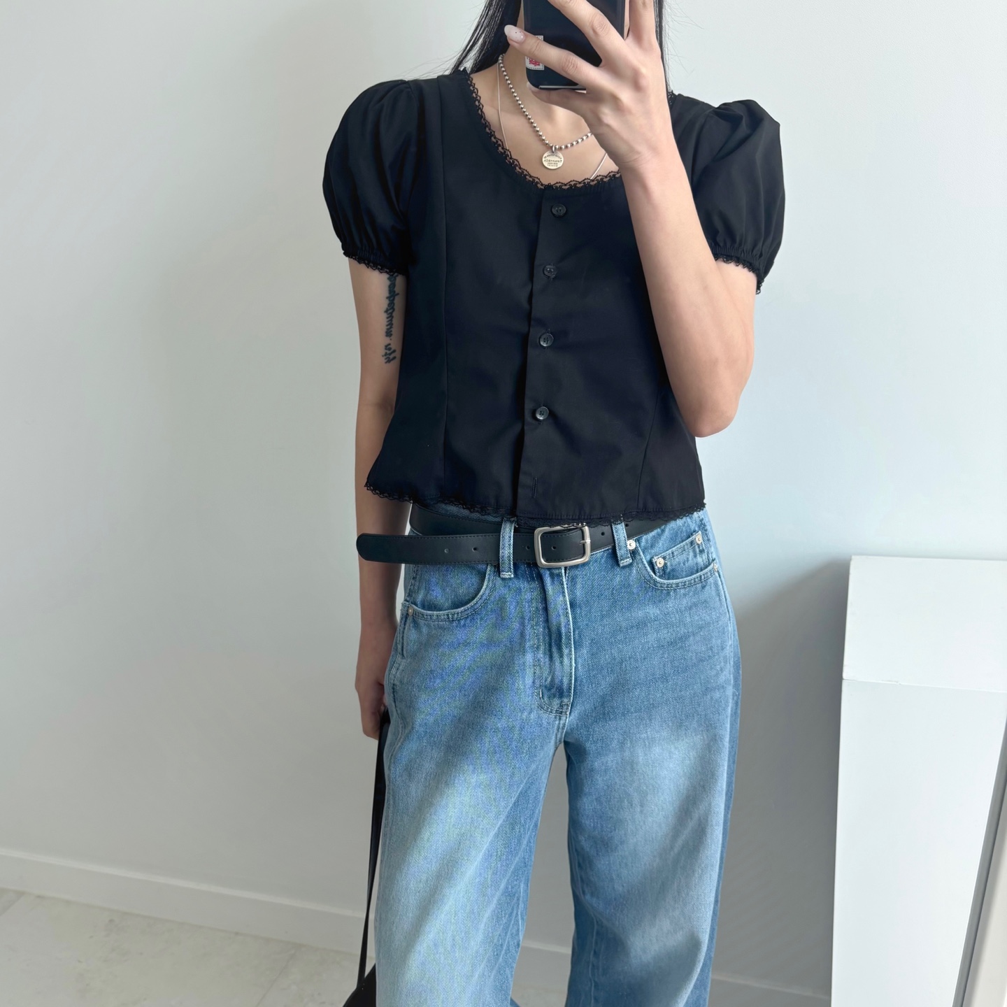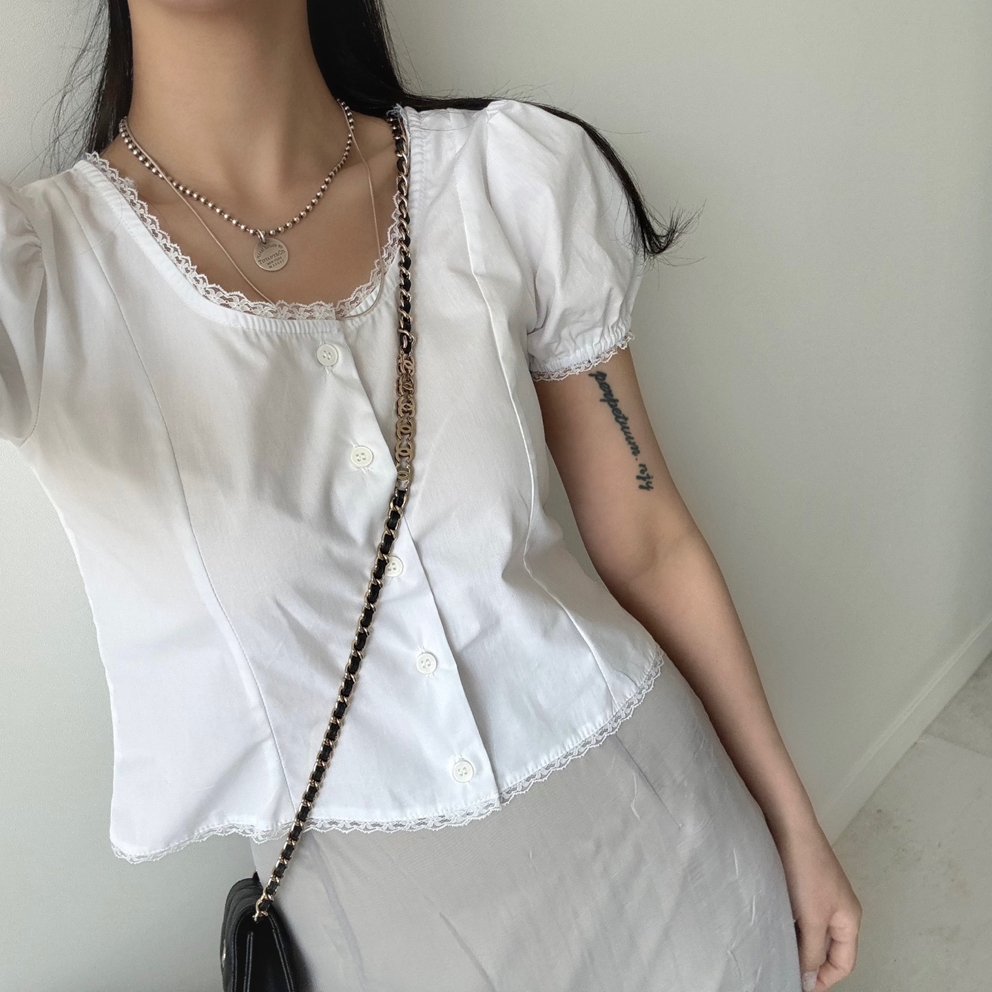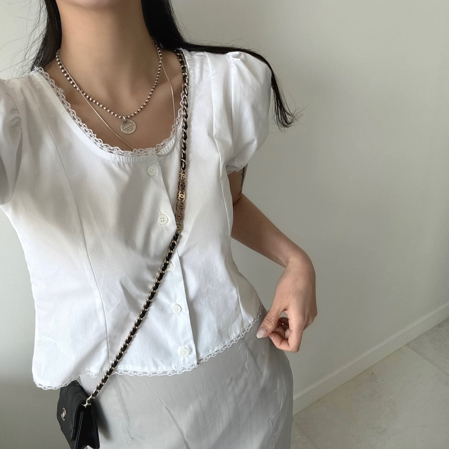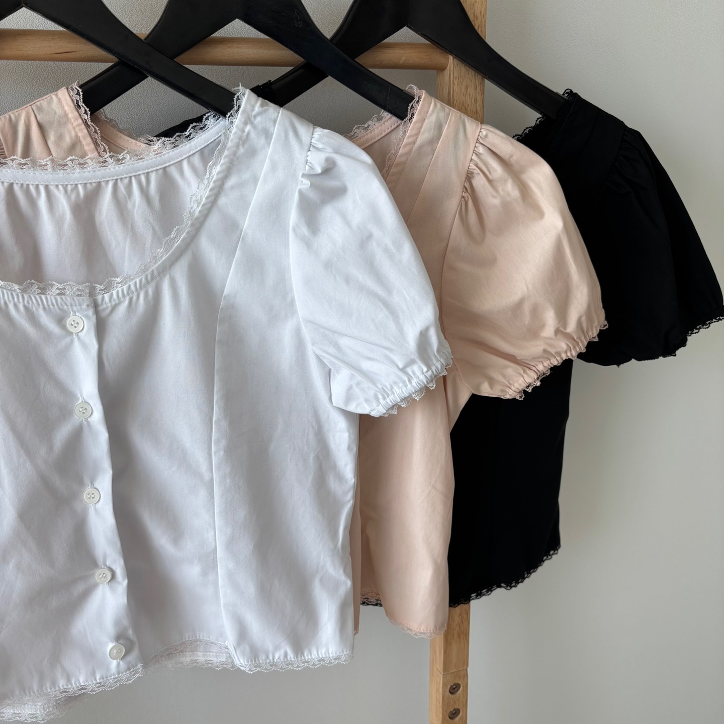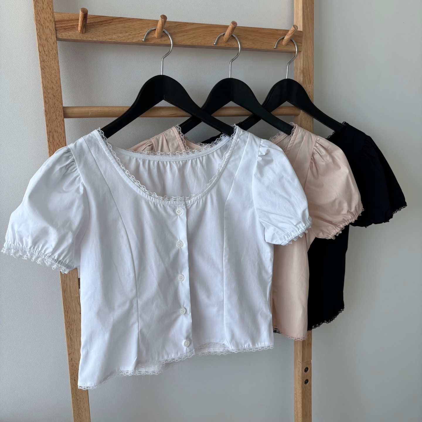 レースパンチングパフクロップドブラウス