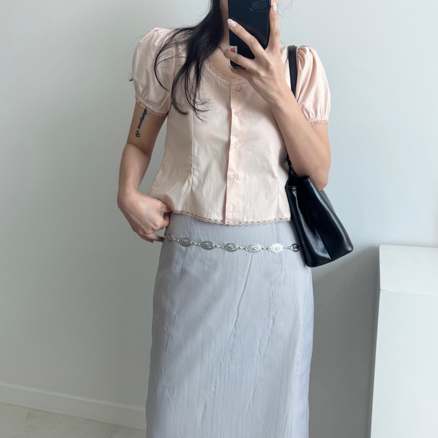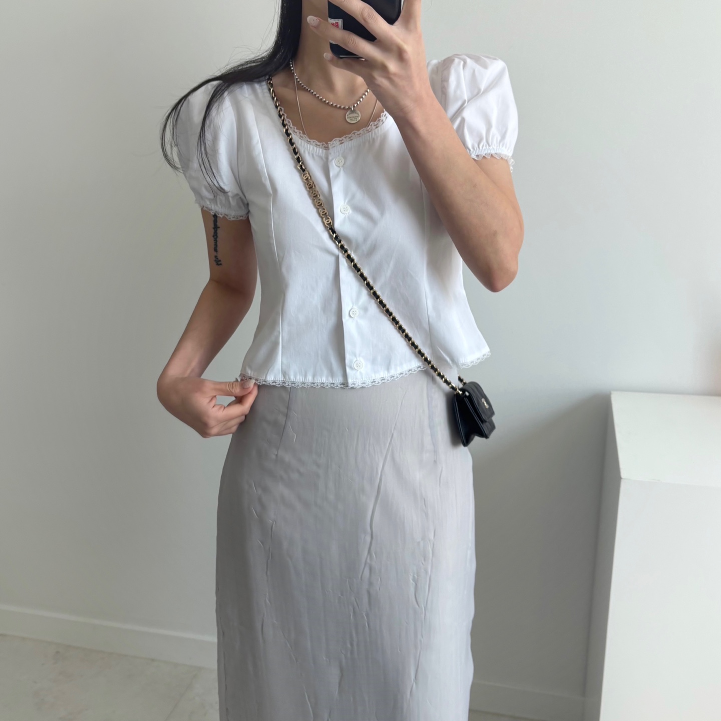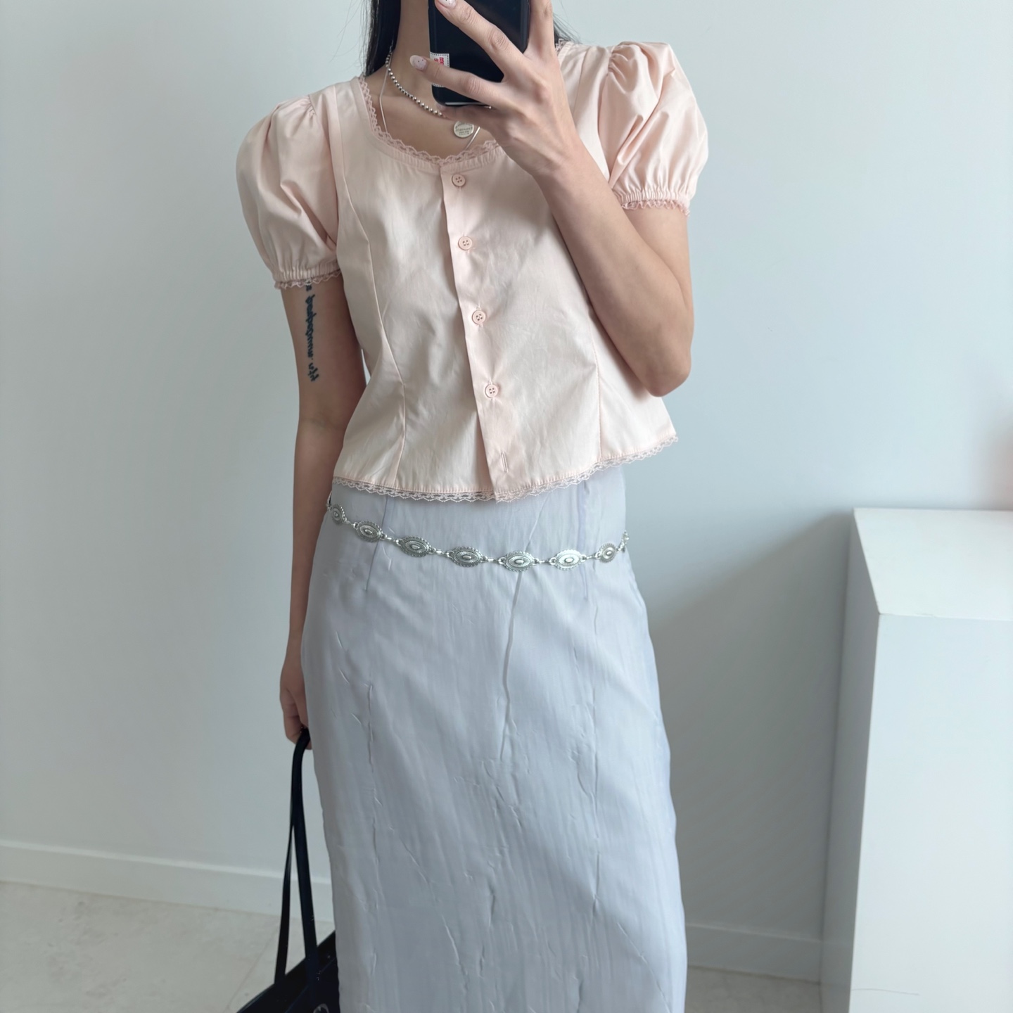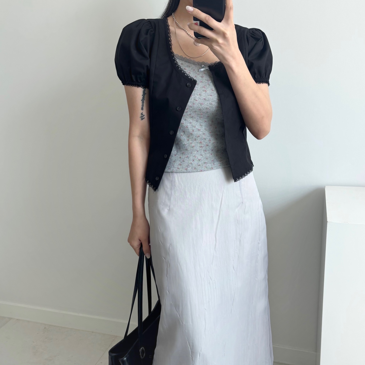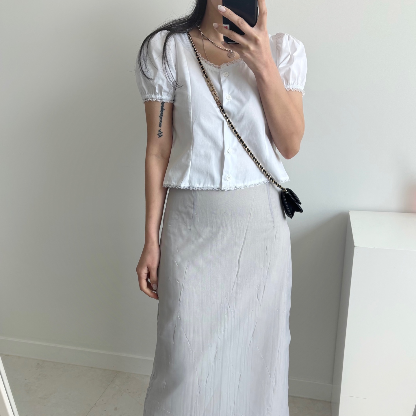 レースパンチングパフクロップドブラウス