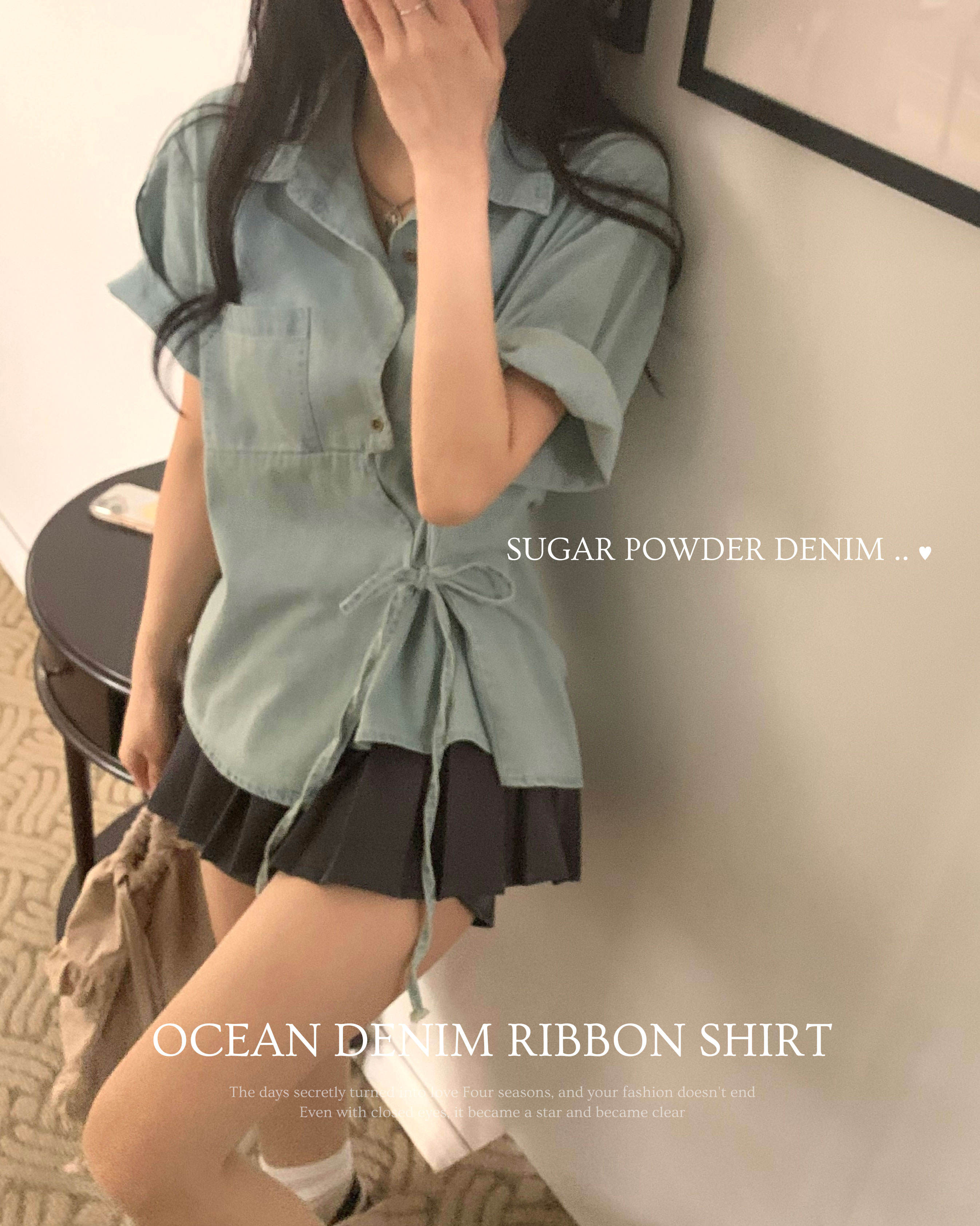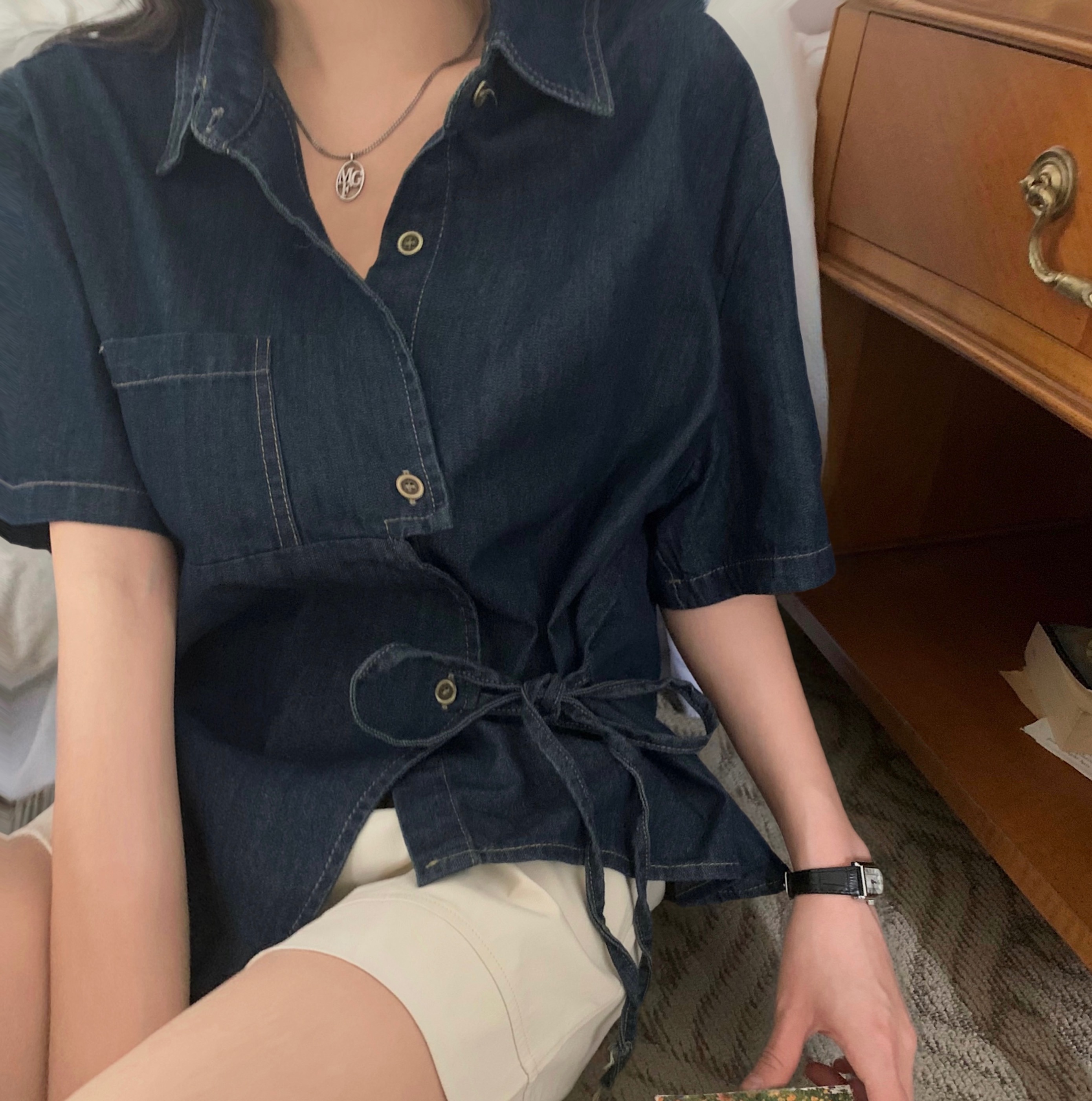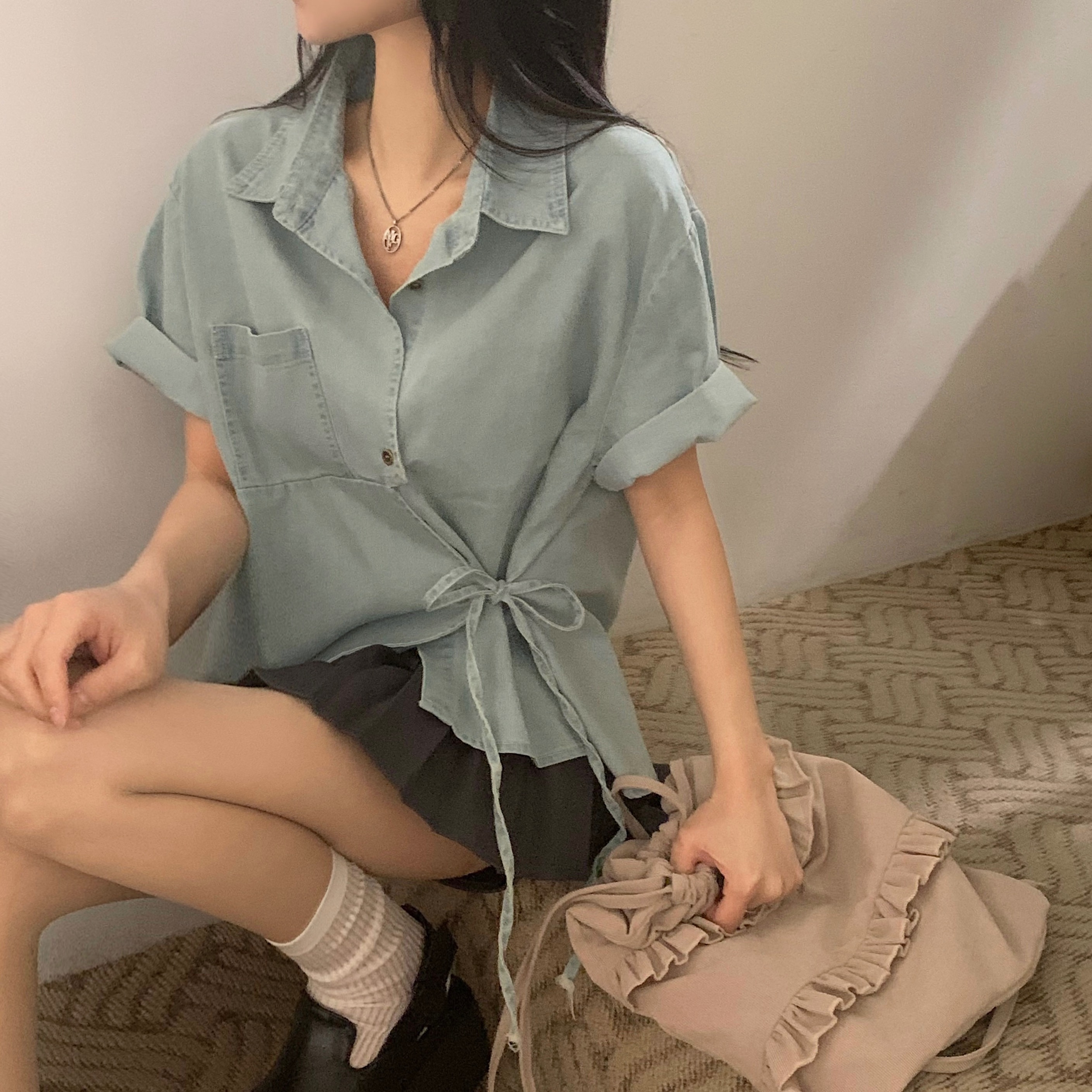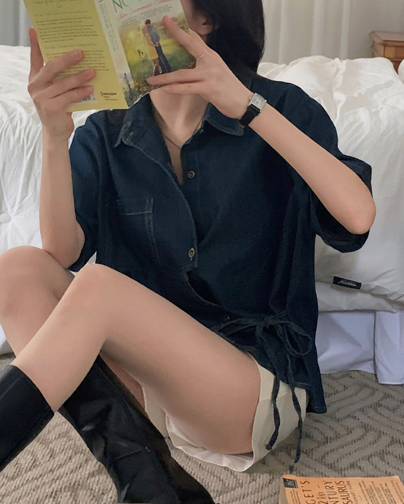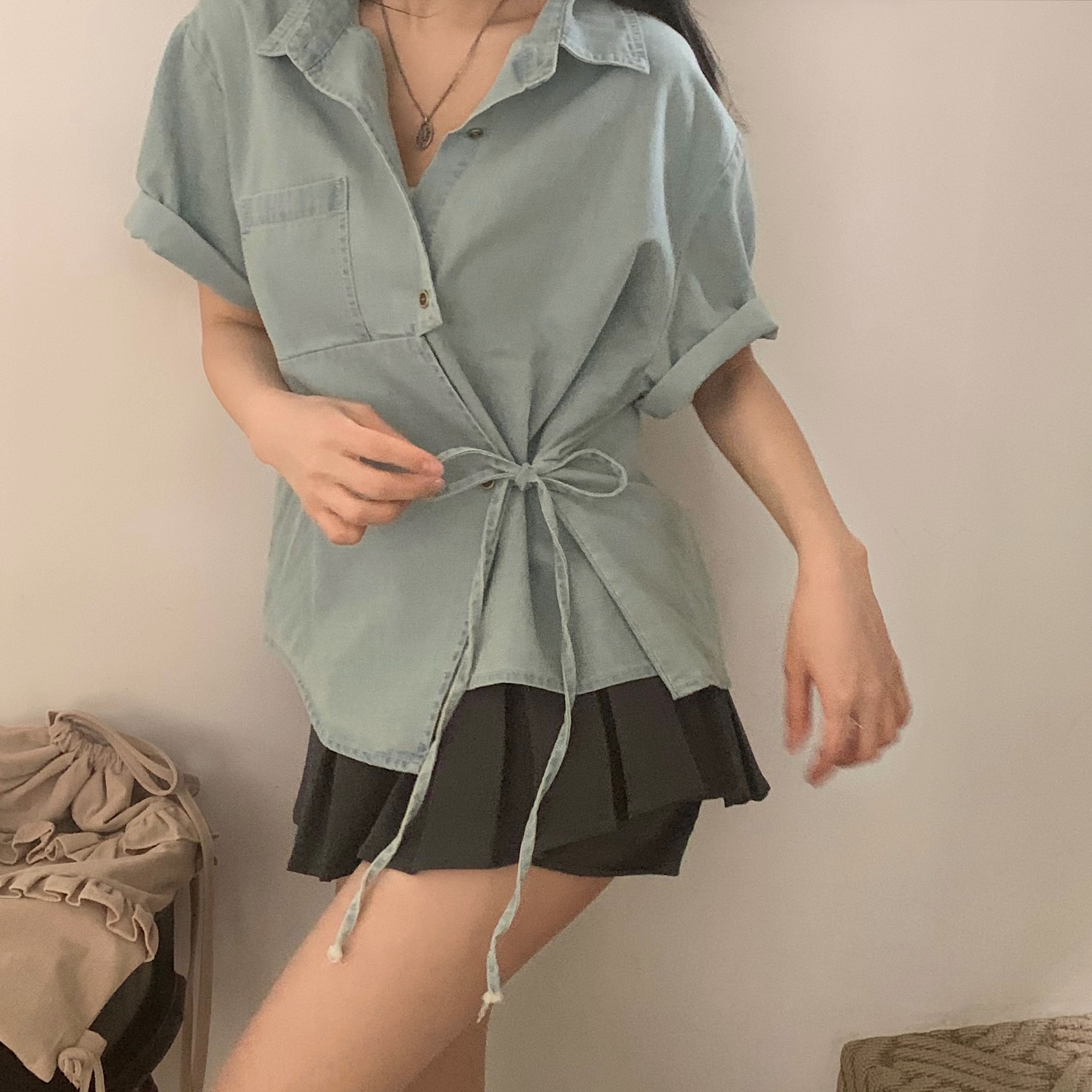 [original]サイドリボンポイントルーズフィットデニムシャツ