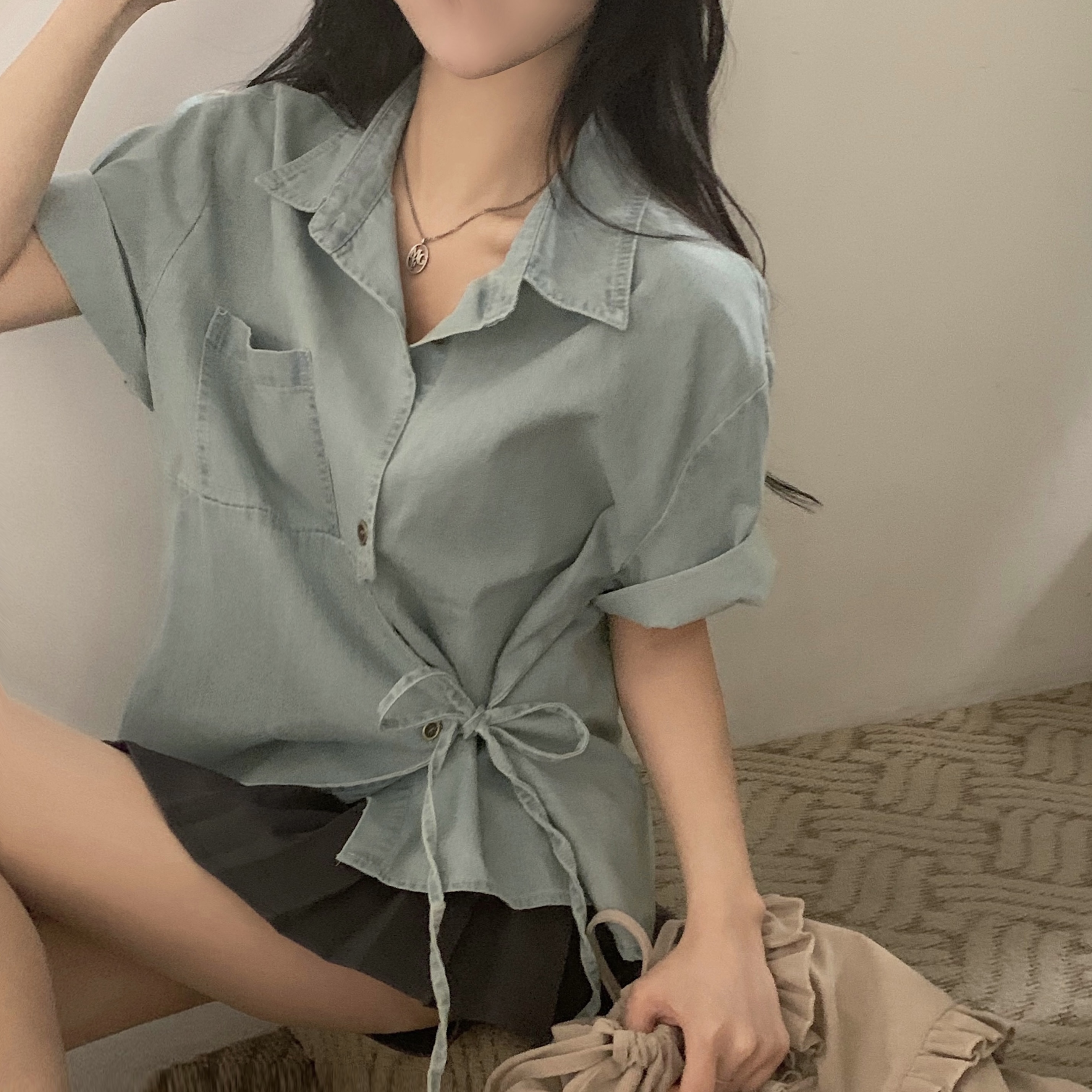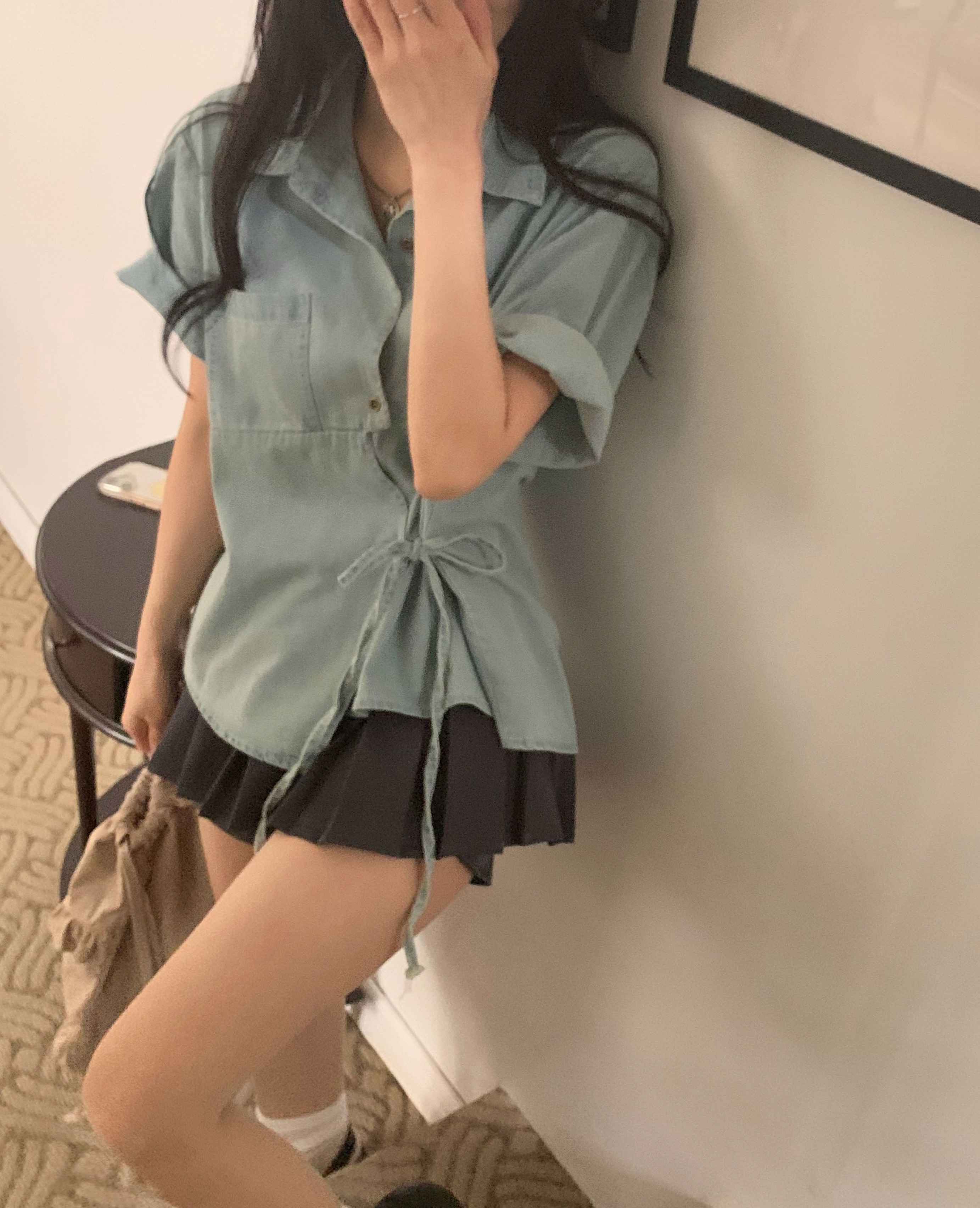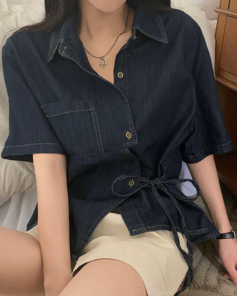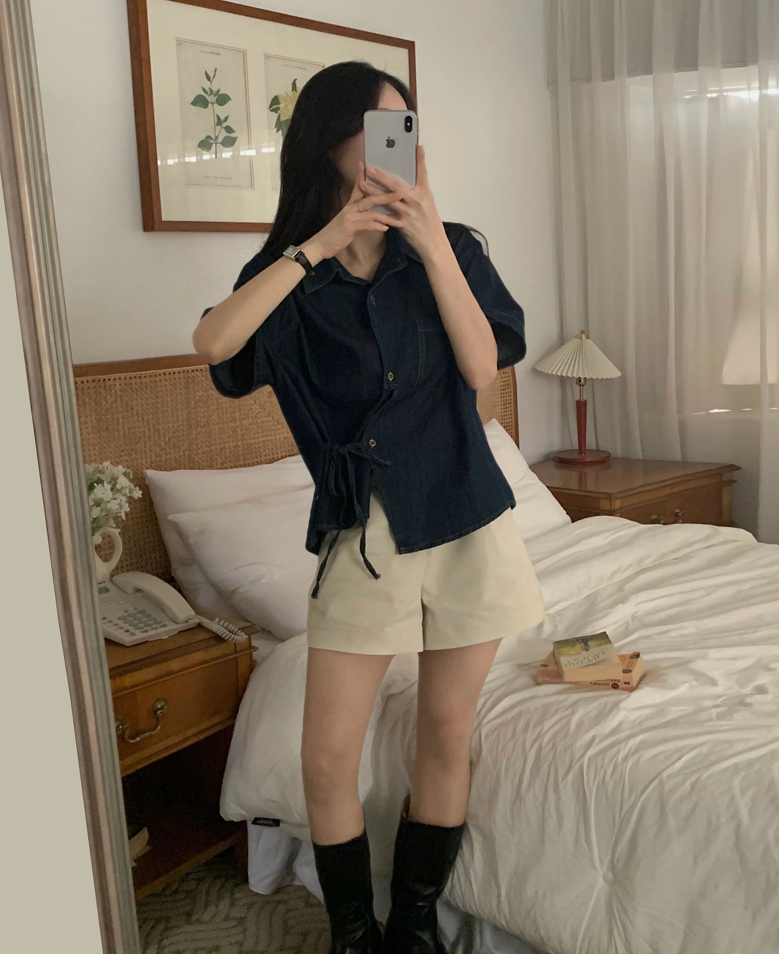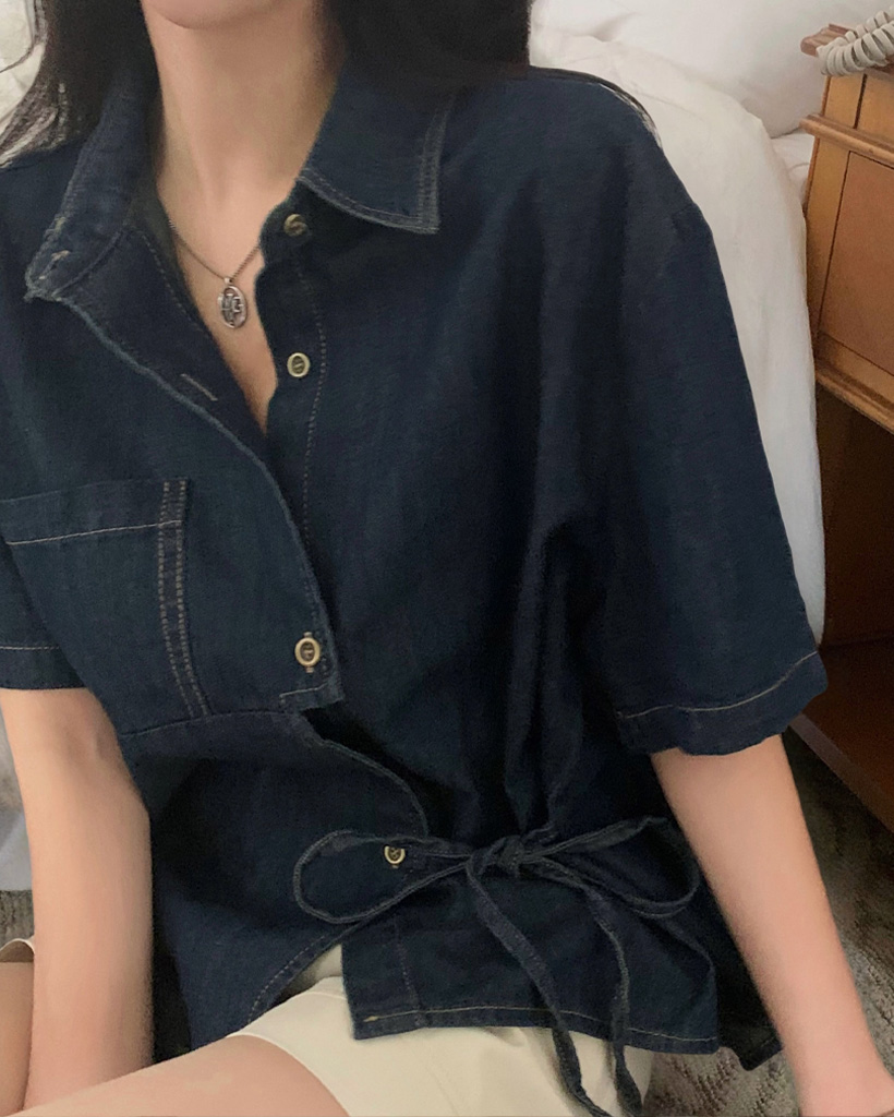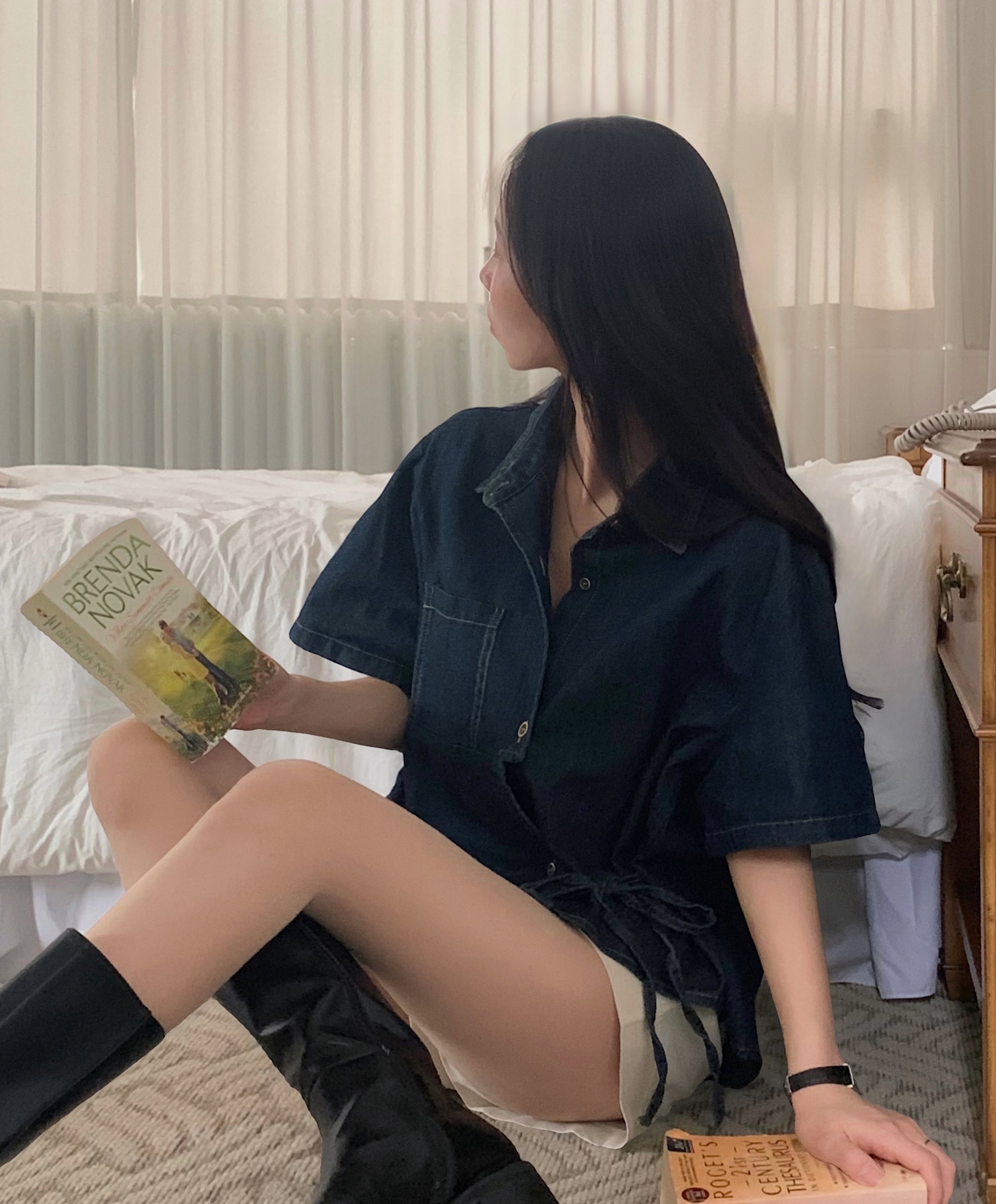 [original]サイドリボンポイントルーズフィットデニムシャツ
