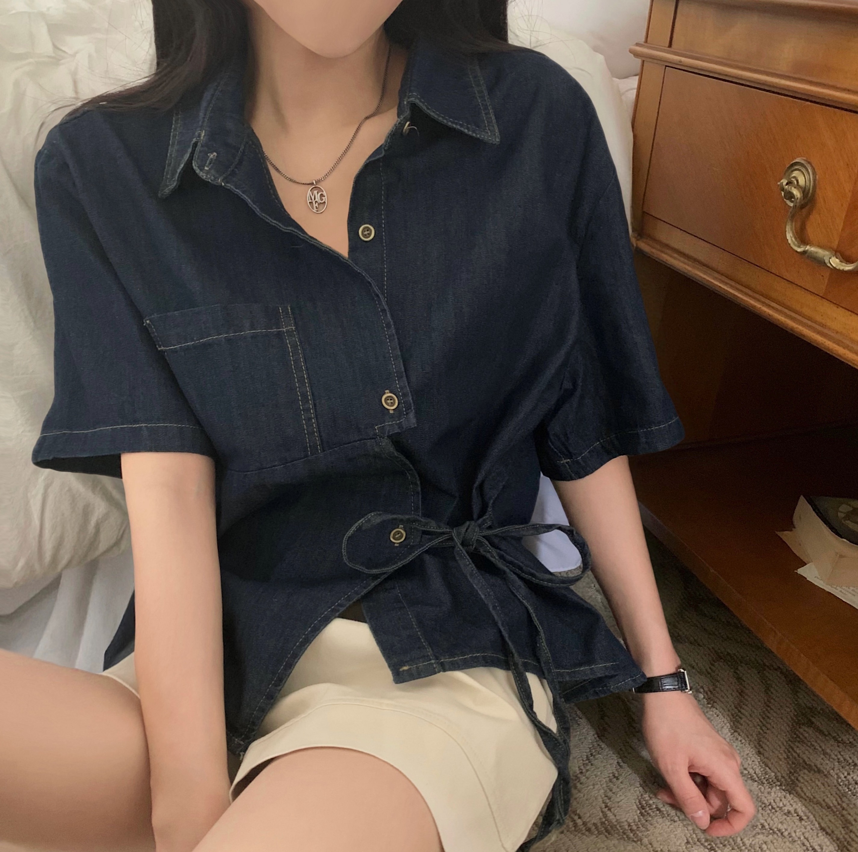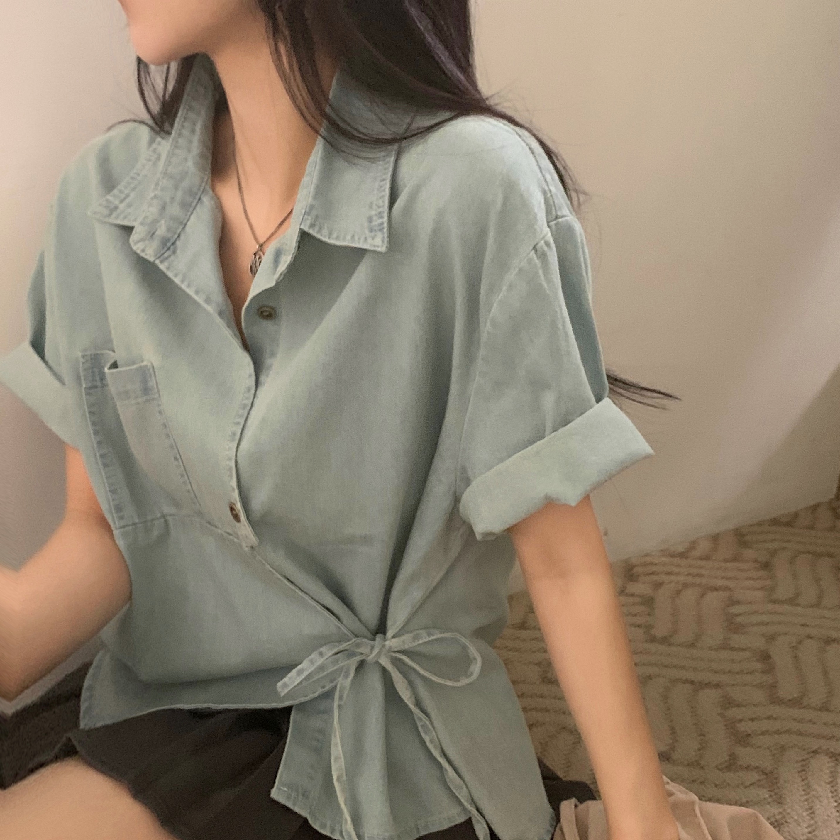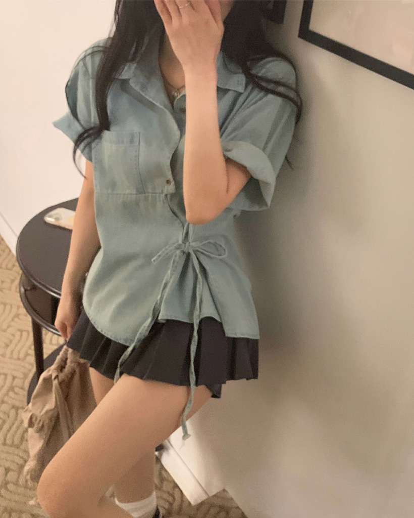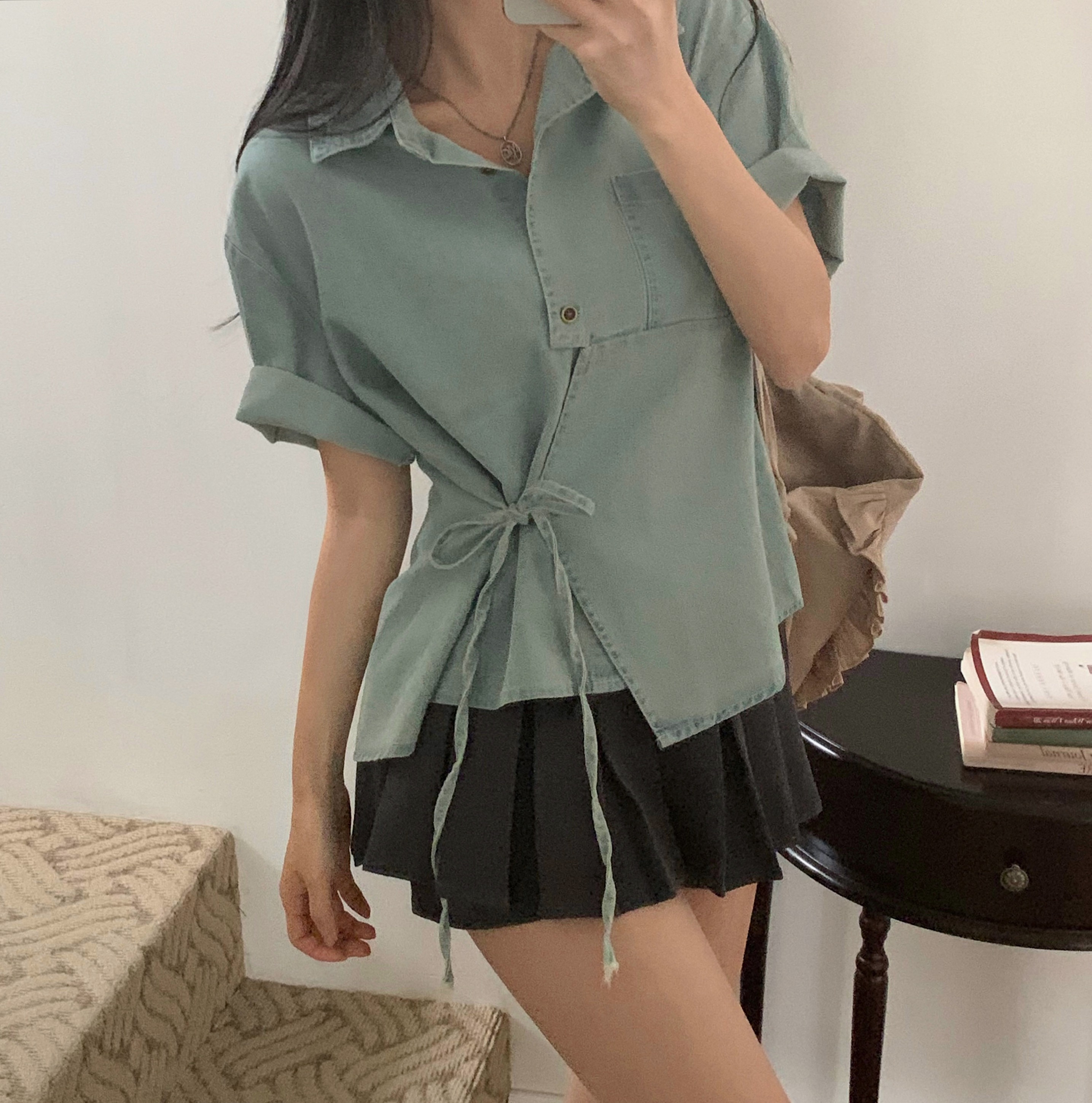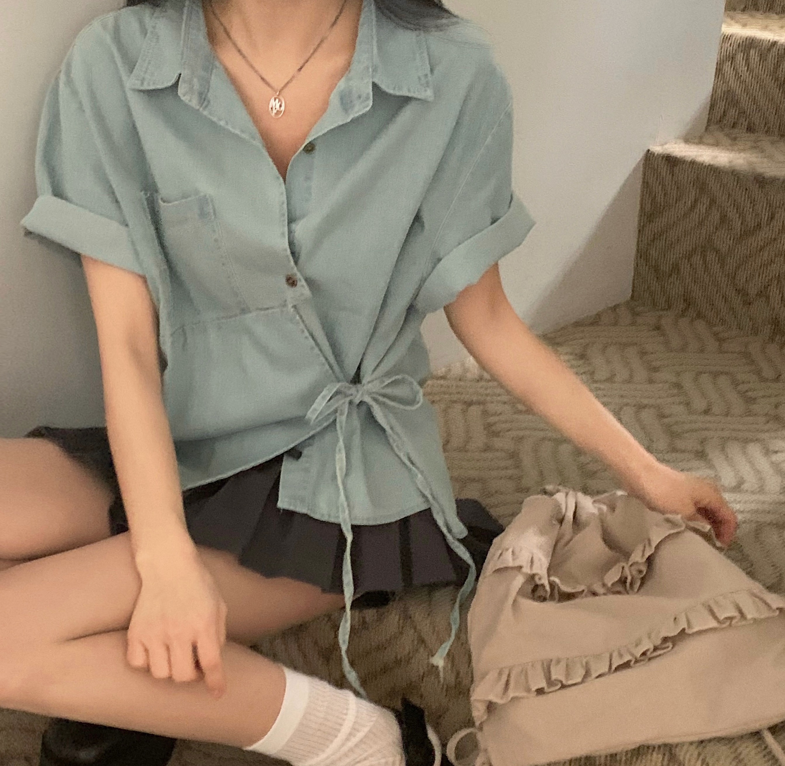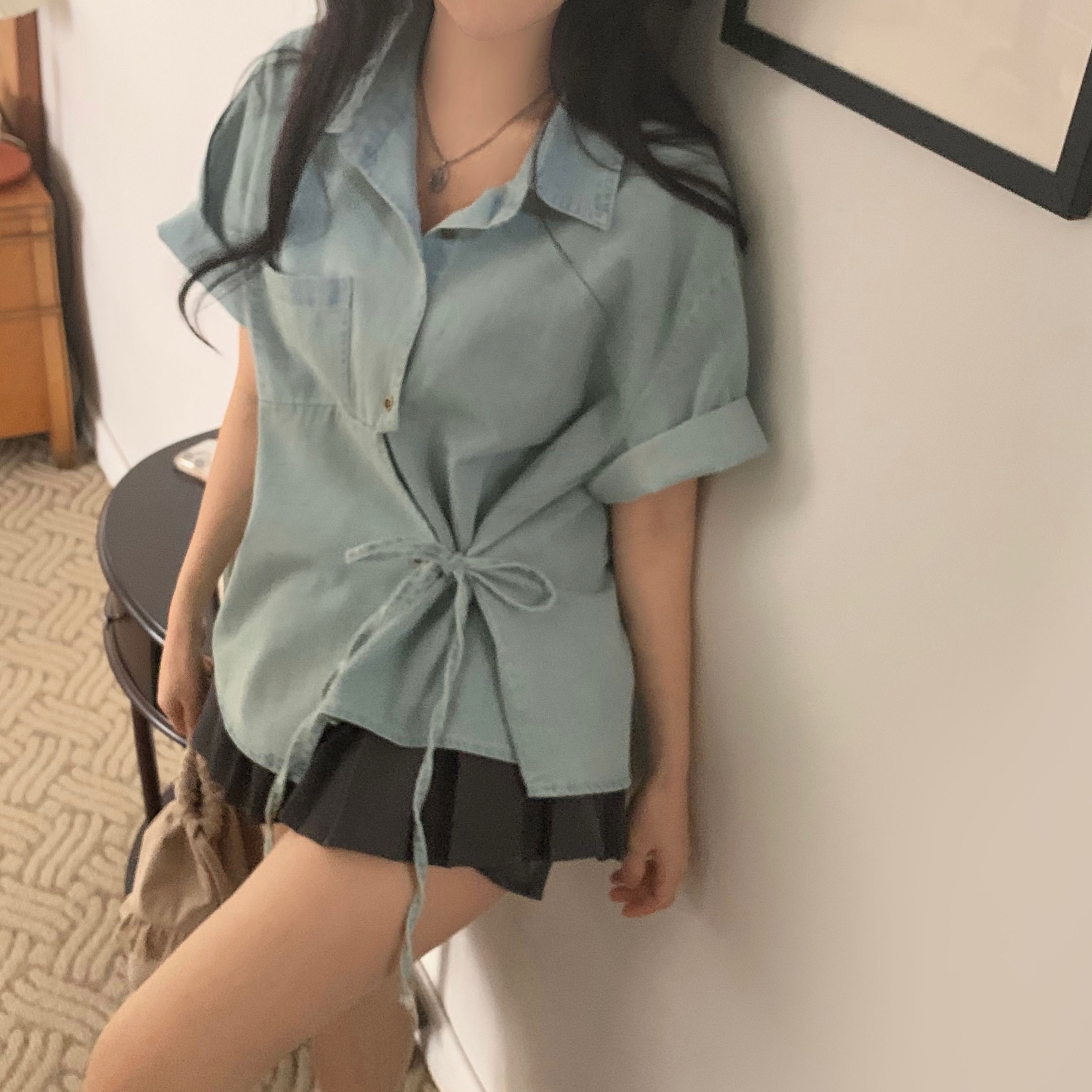 [original]サイドリボンポイントルーズフィットデニムシャツ