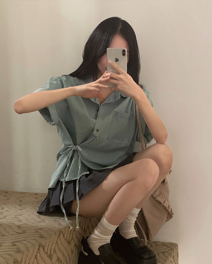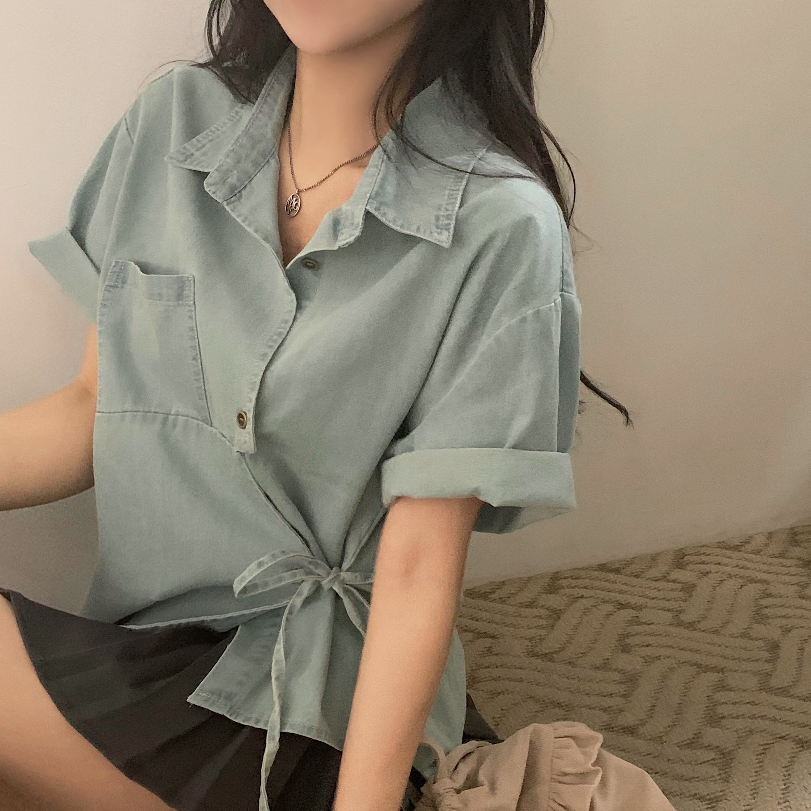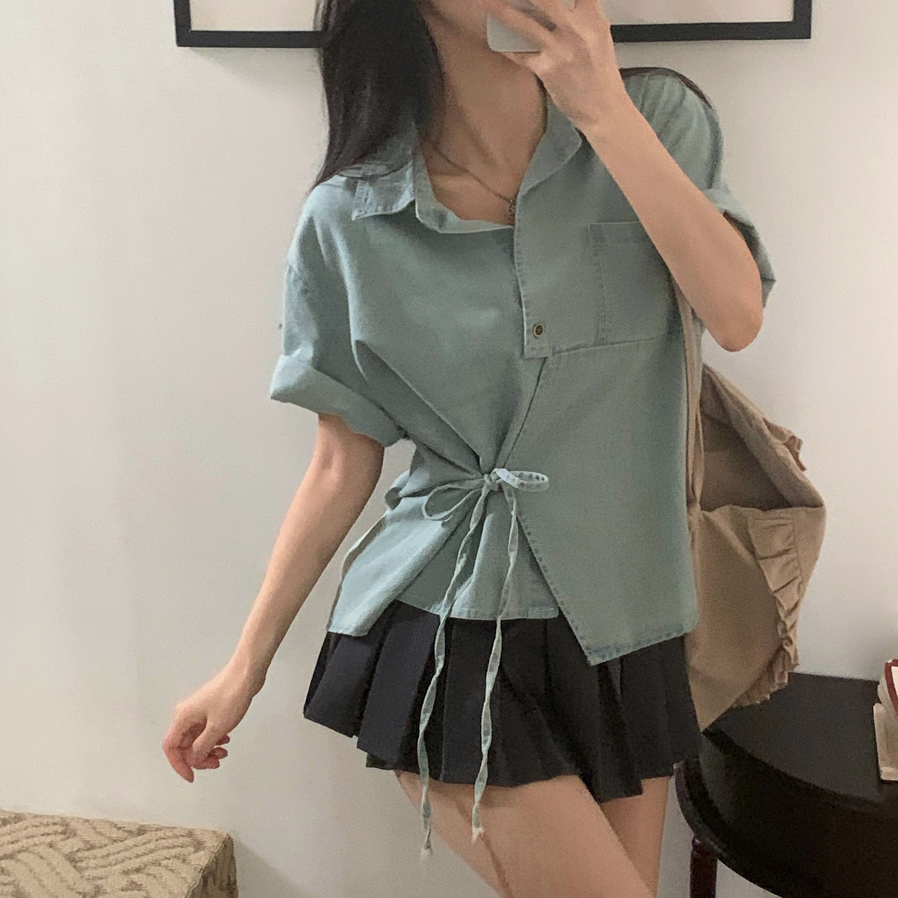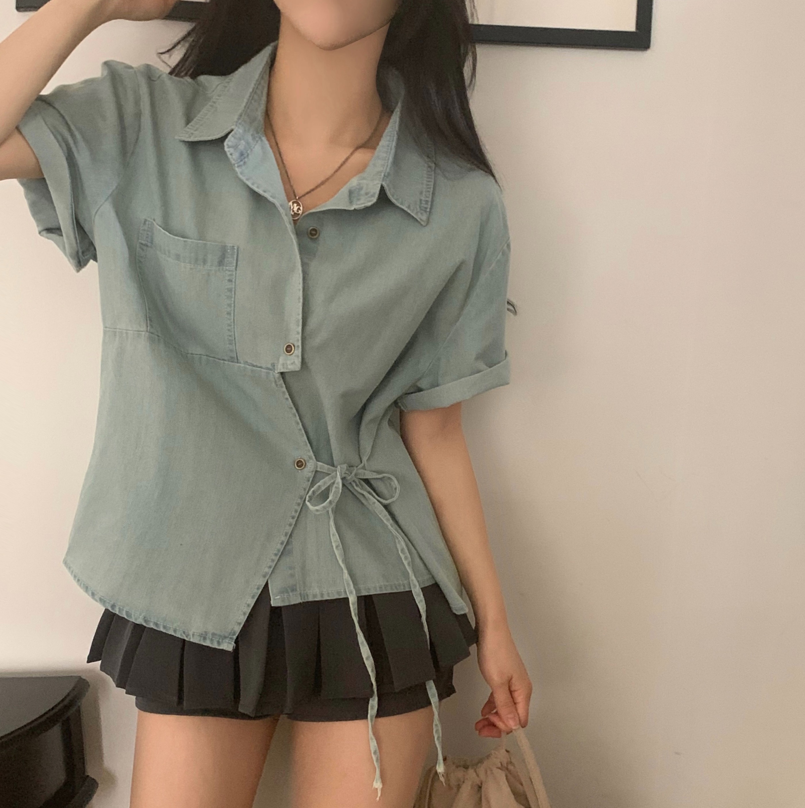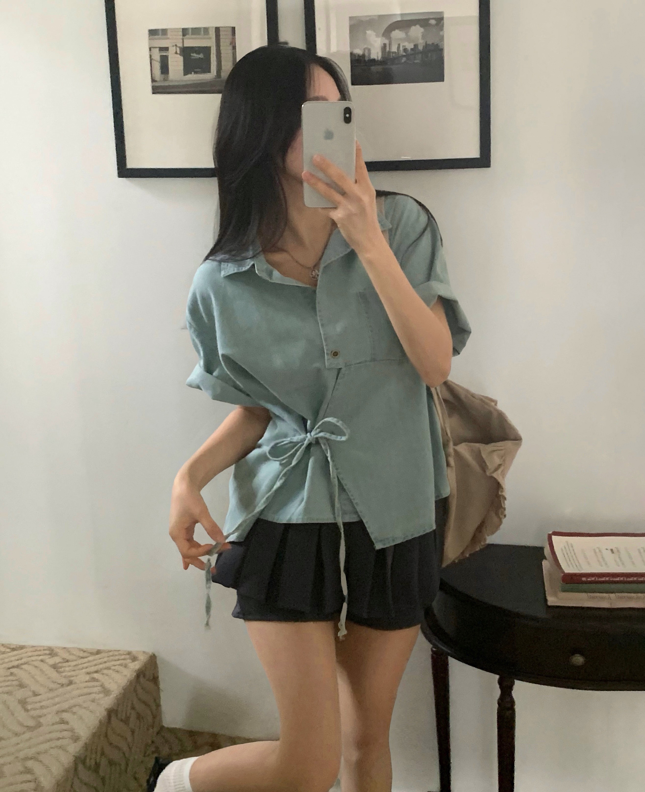 [original]サイドリボンポイントルーズフィットデニムシャツ