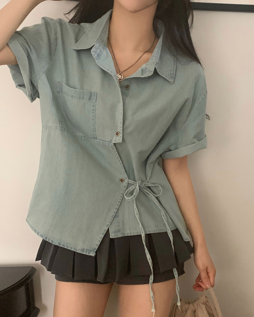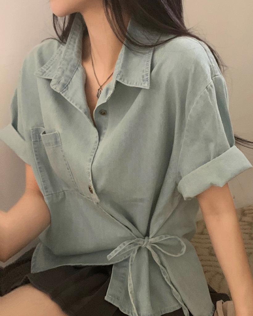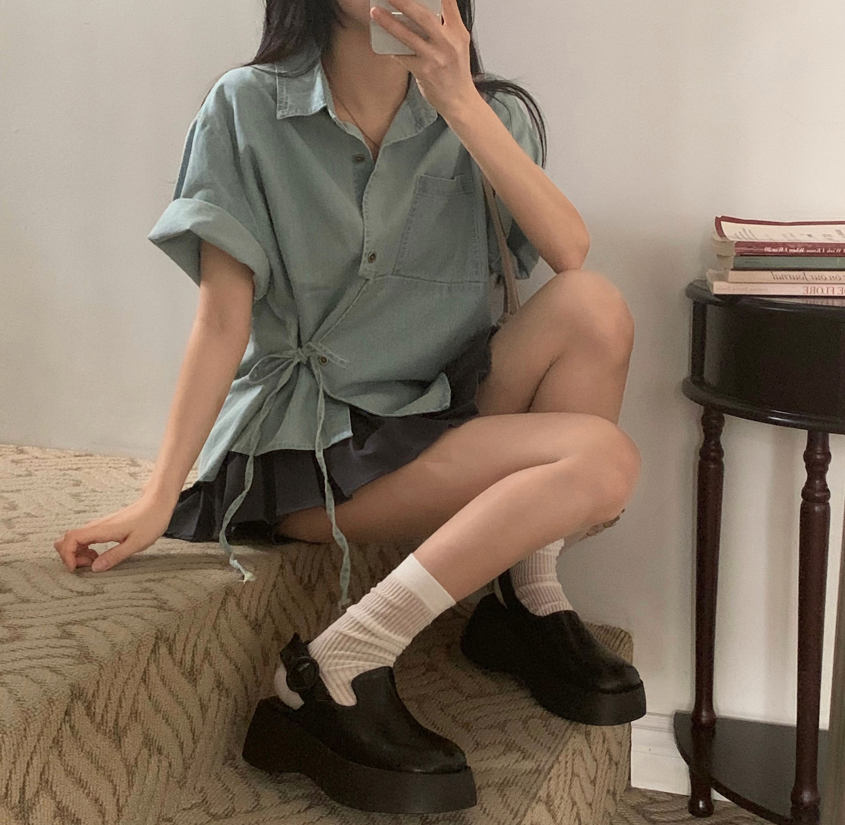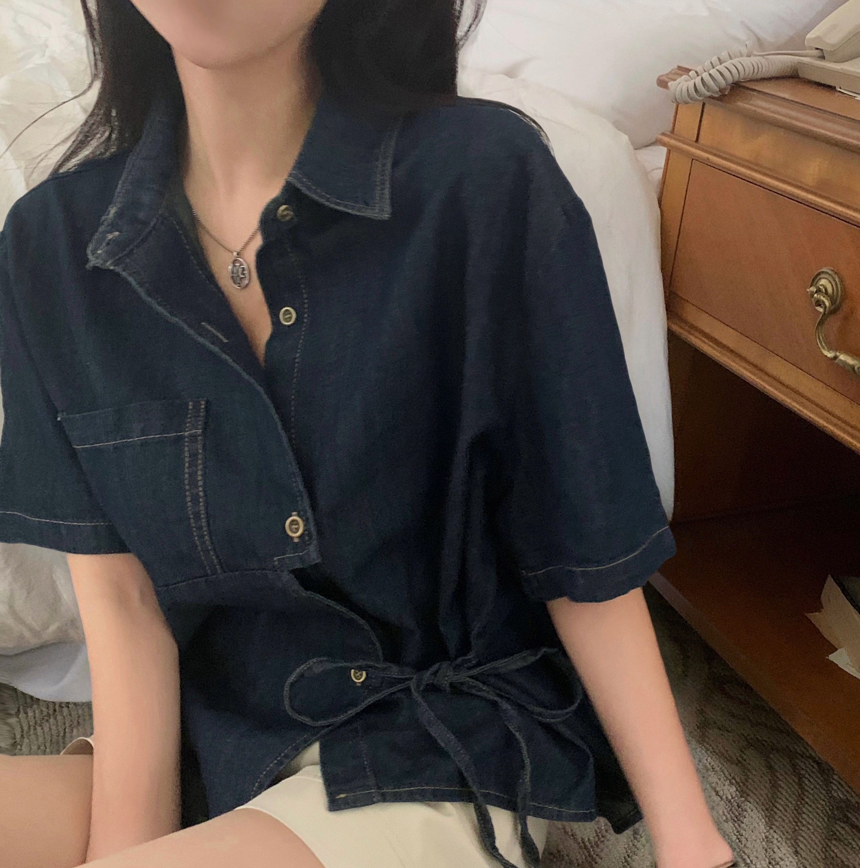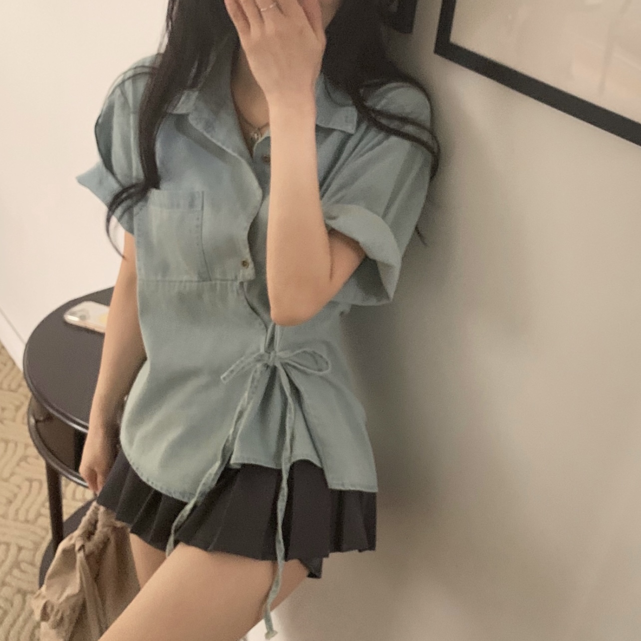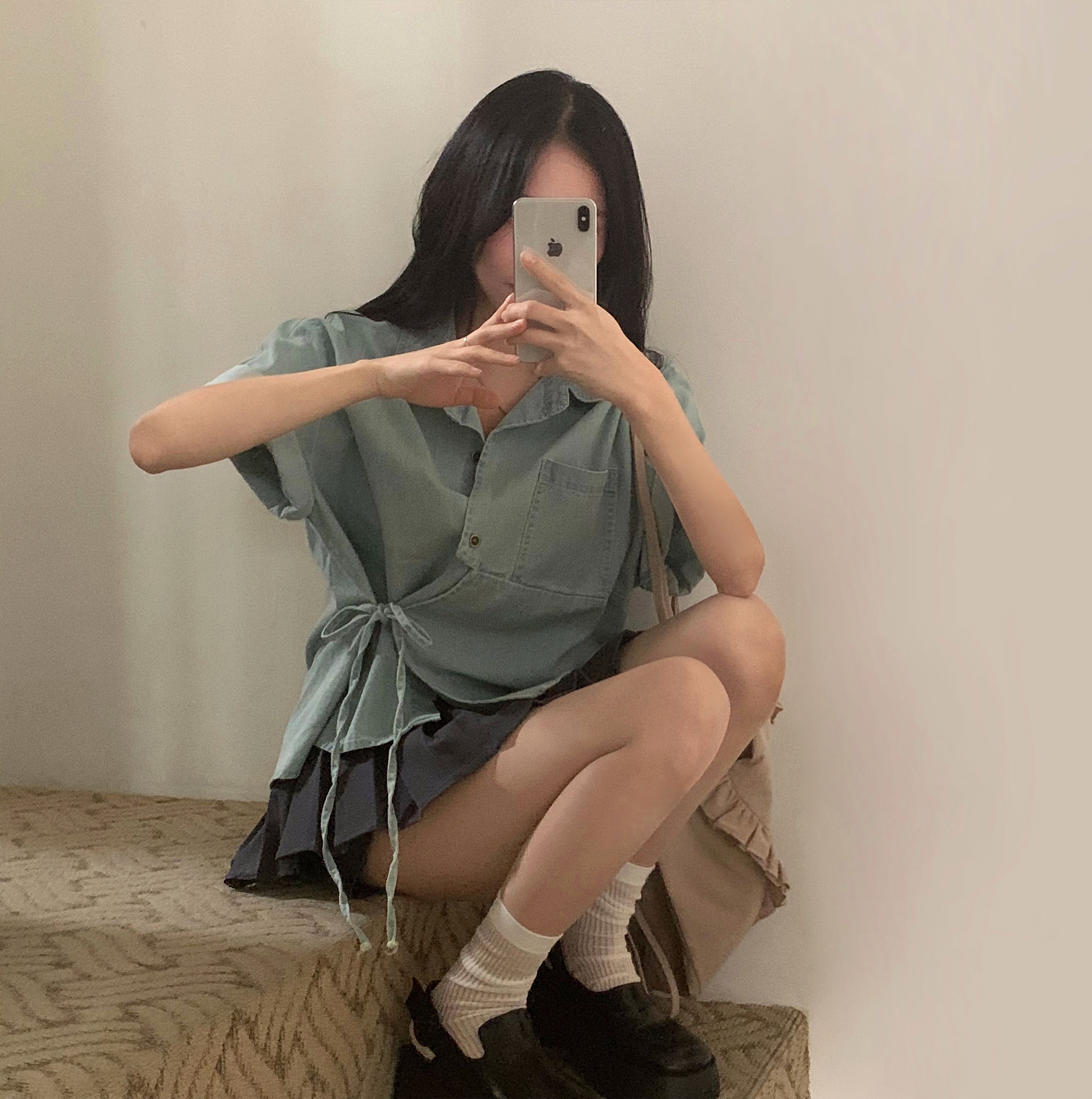 [original]サイドリボンポイントルーズフィットデニムシャツ