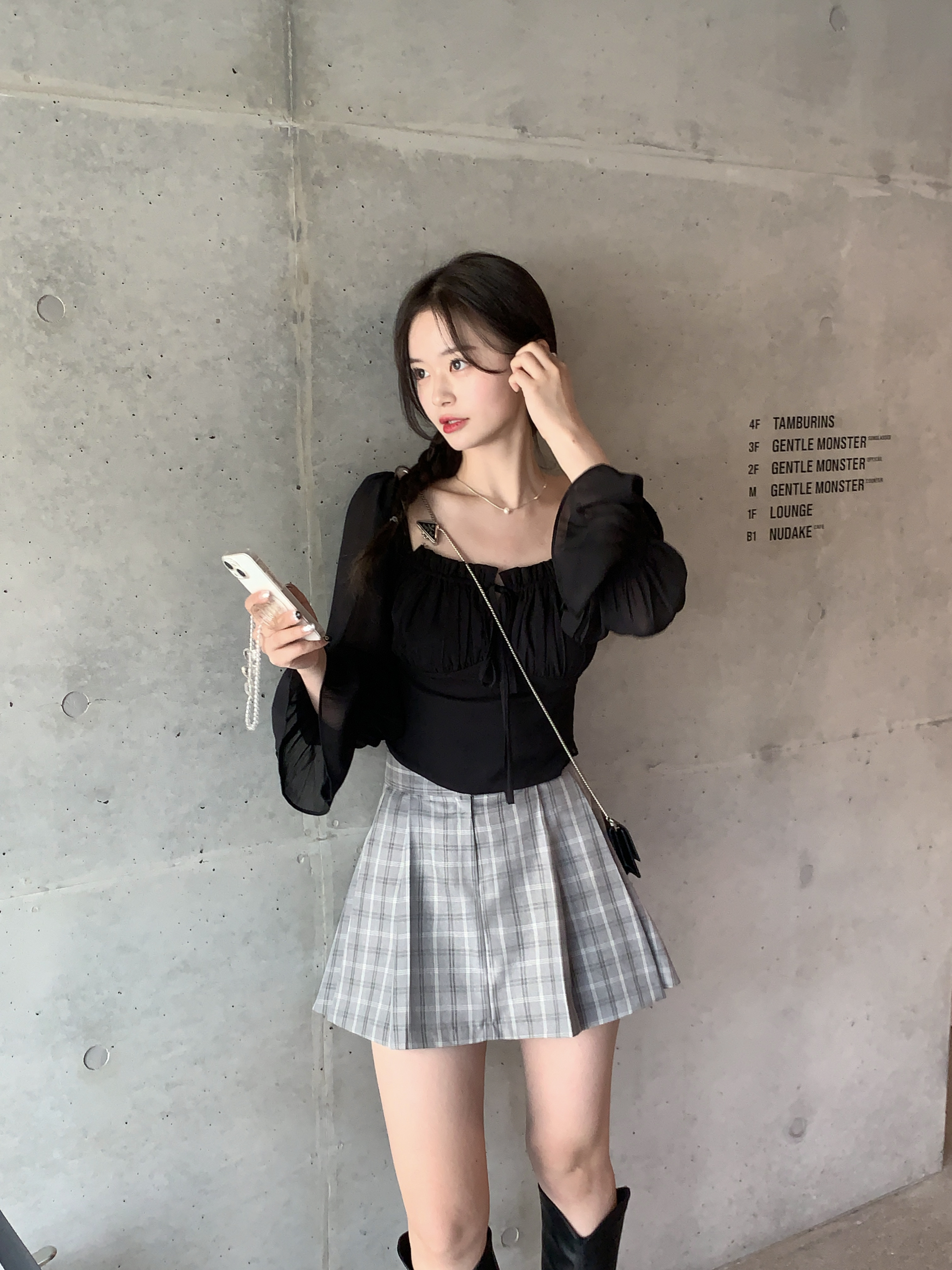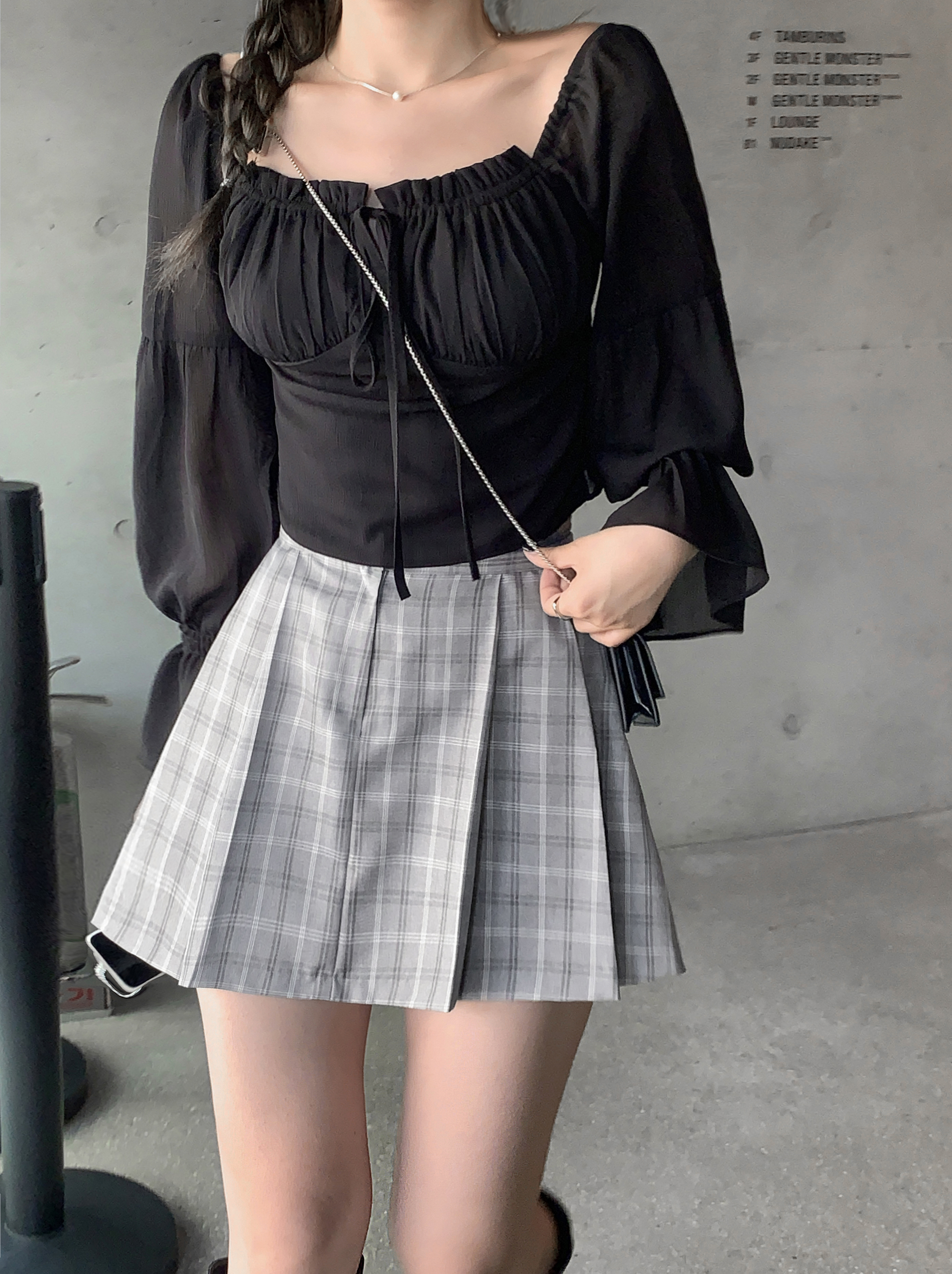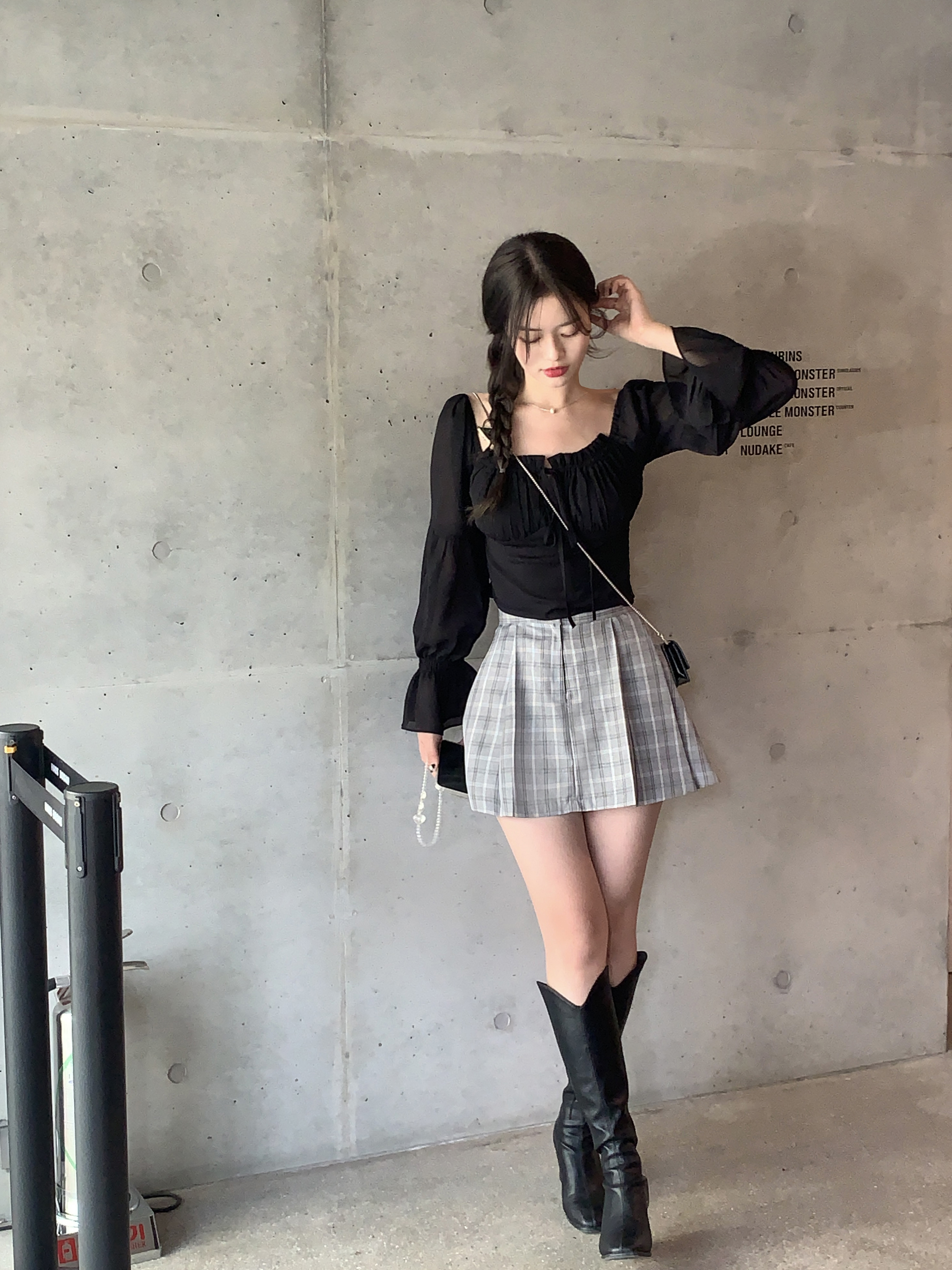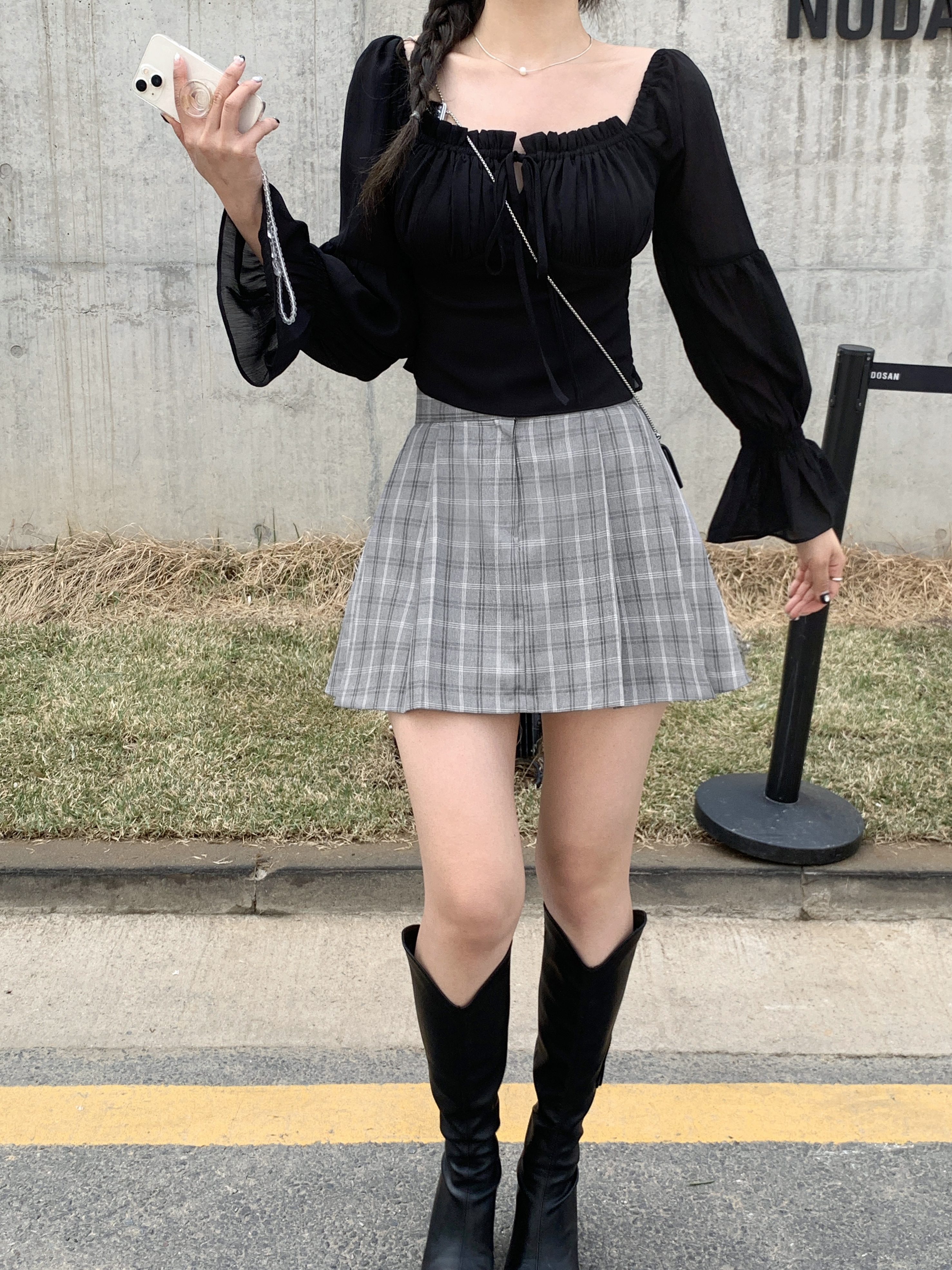 [パンツ型裏地付き] チェックプリーツスカート (3color)