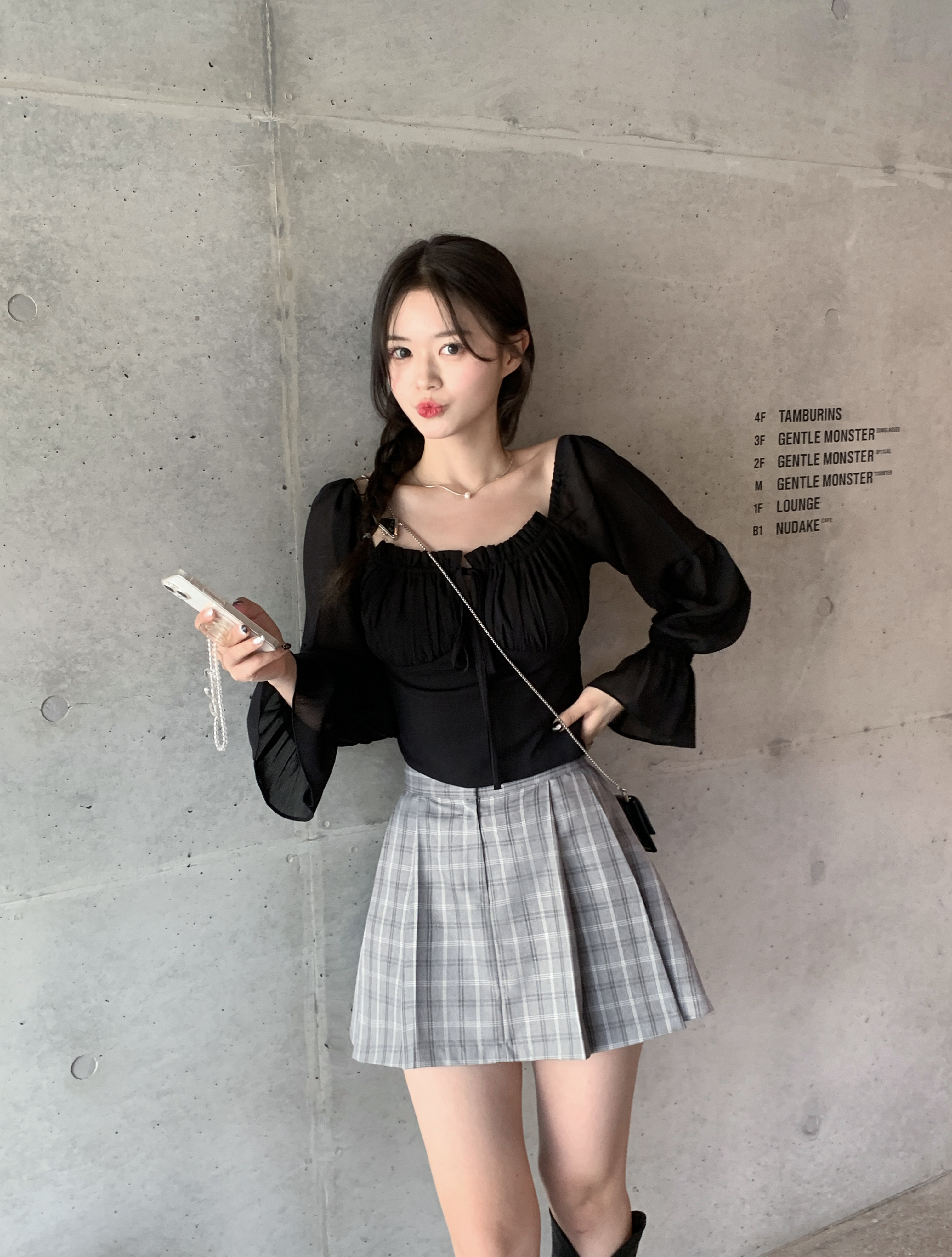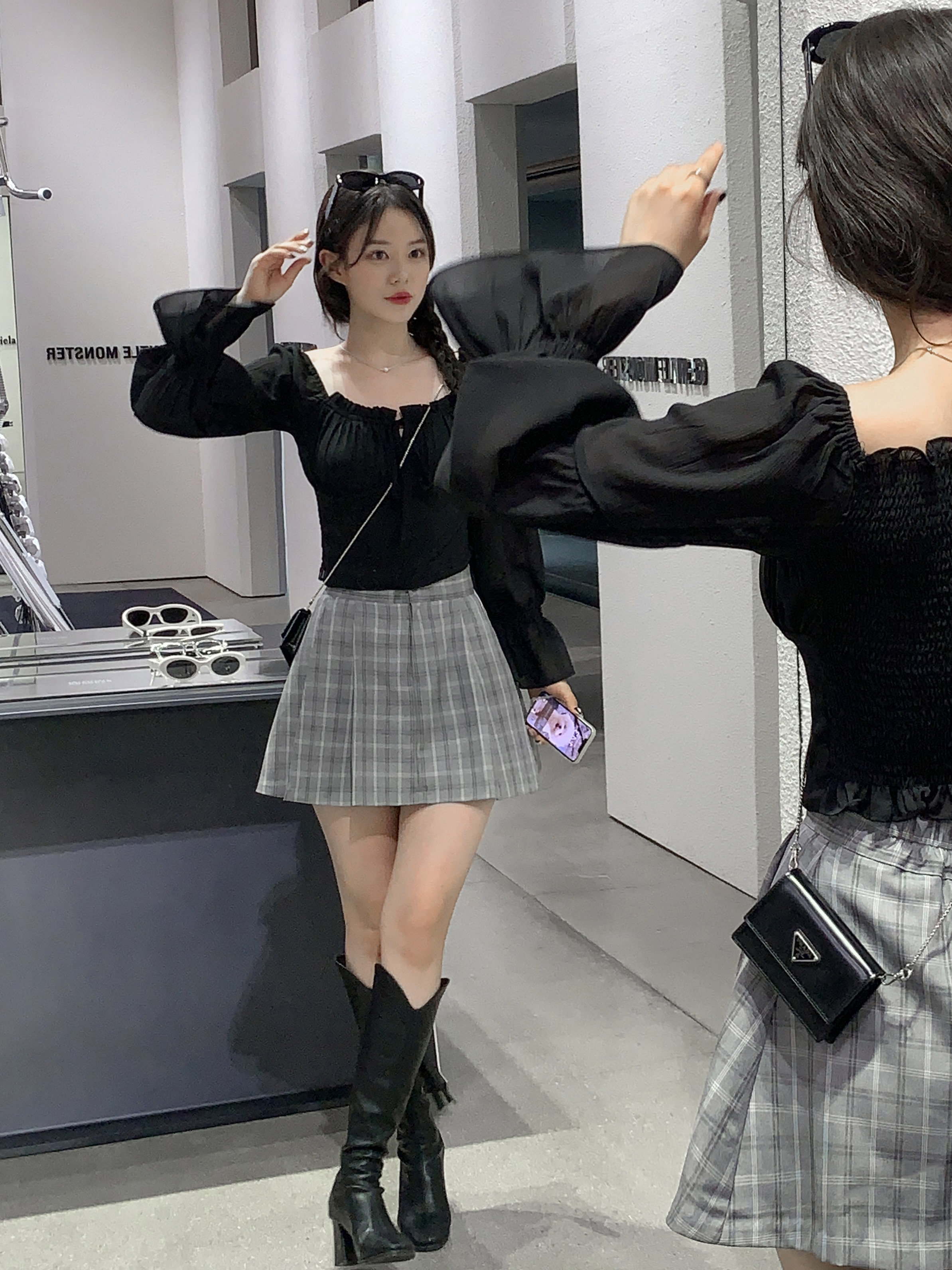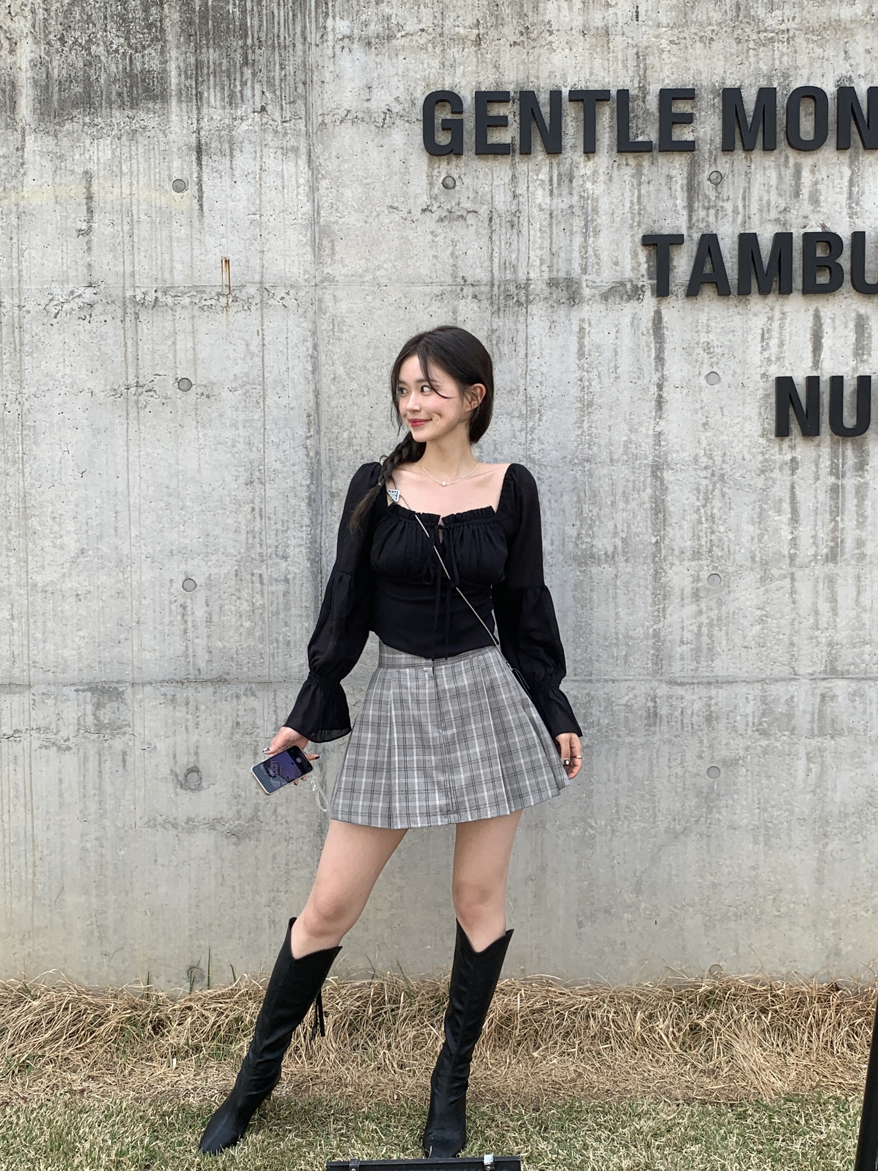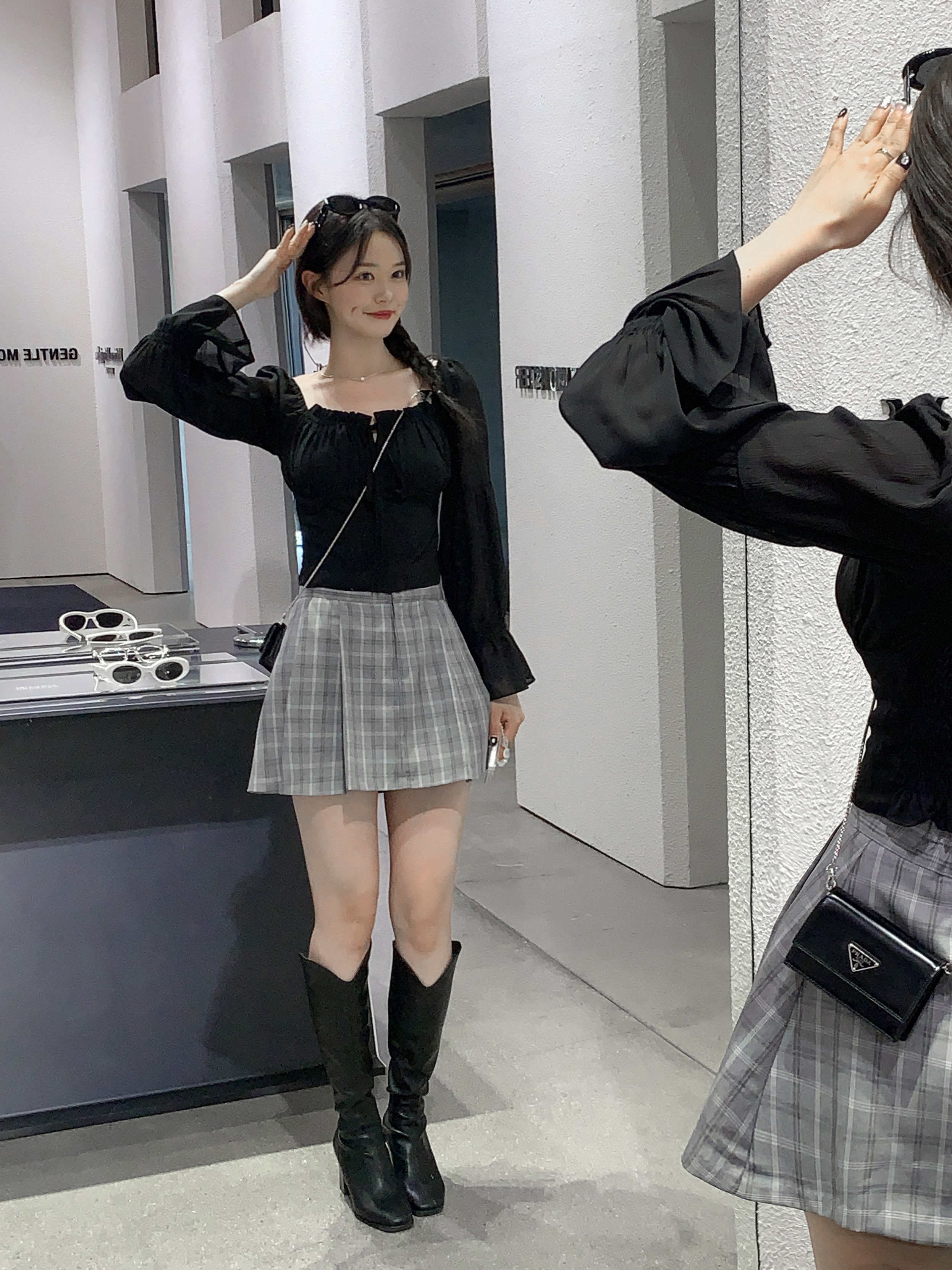 [パンツ型裏地付き] チェックプリーツスカート (3color)