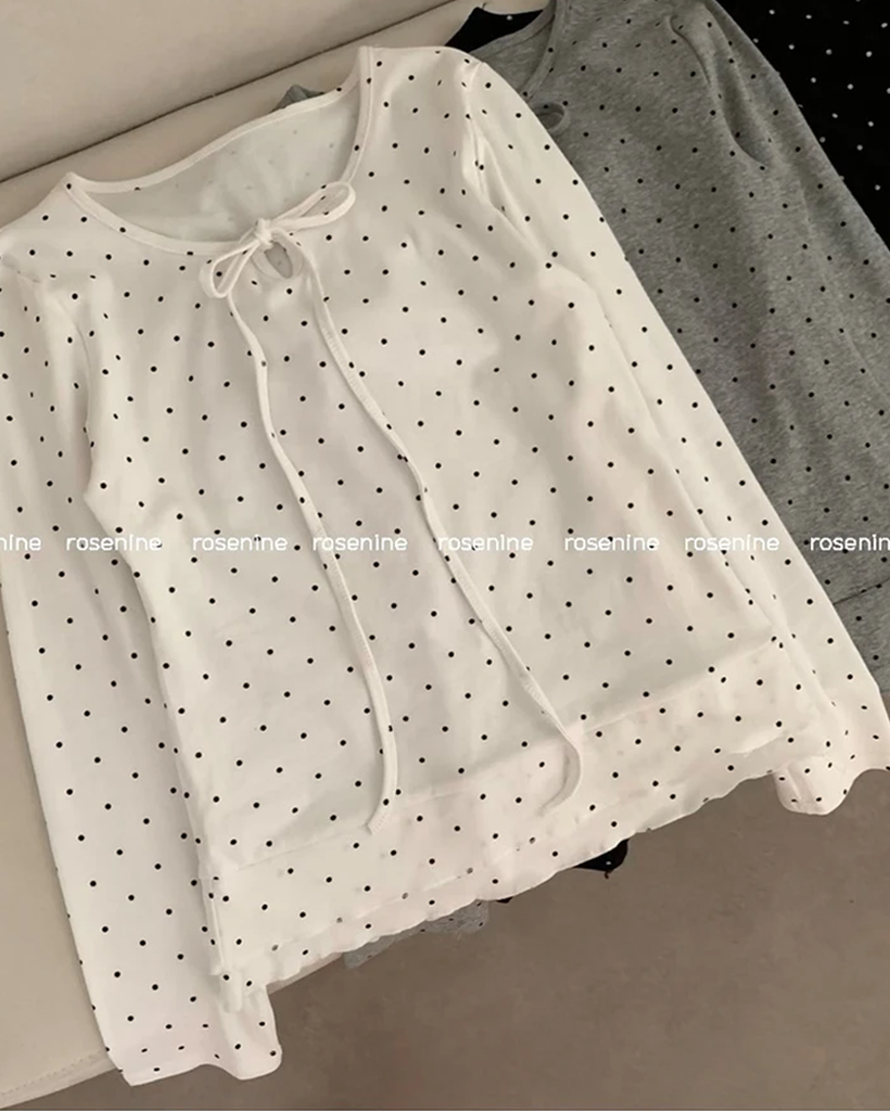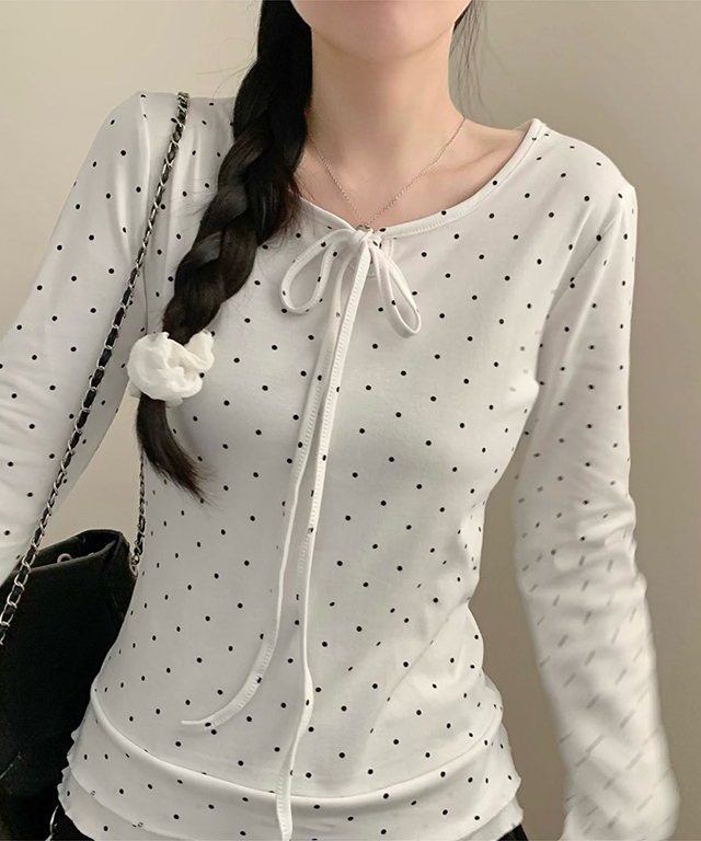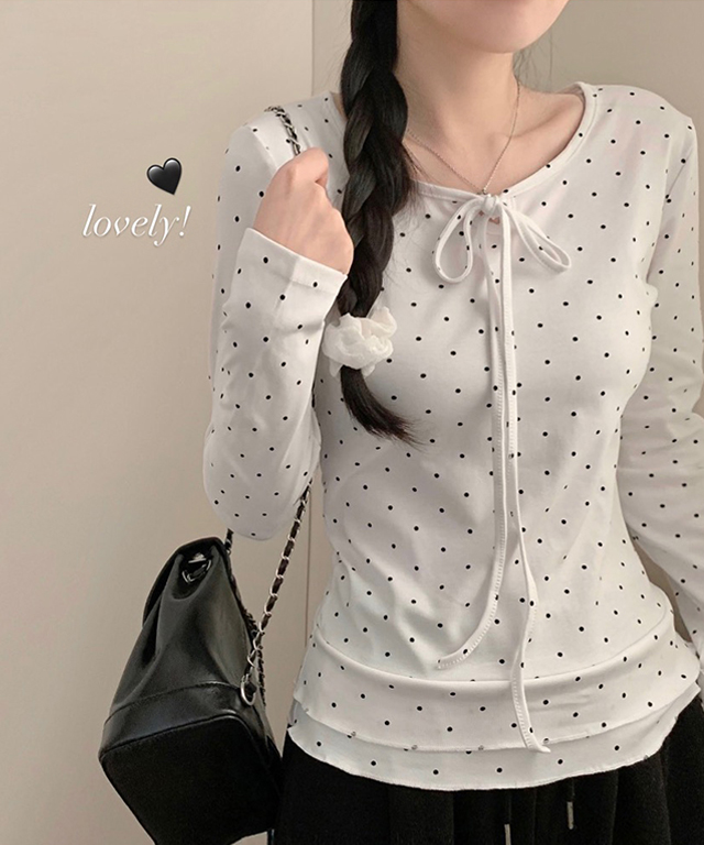 (3color) ドット ティアード クルーネック Tシャツ トップス