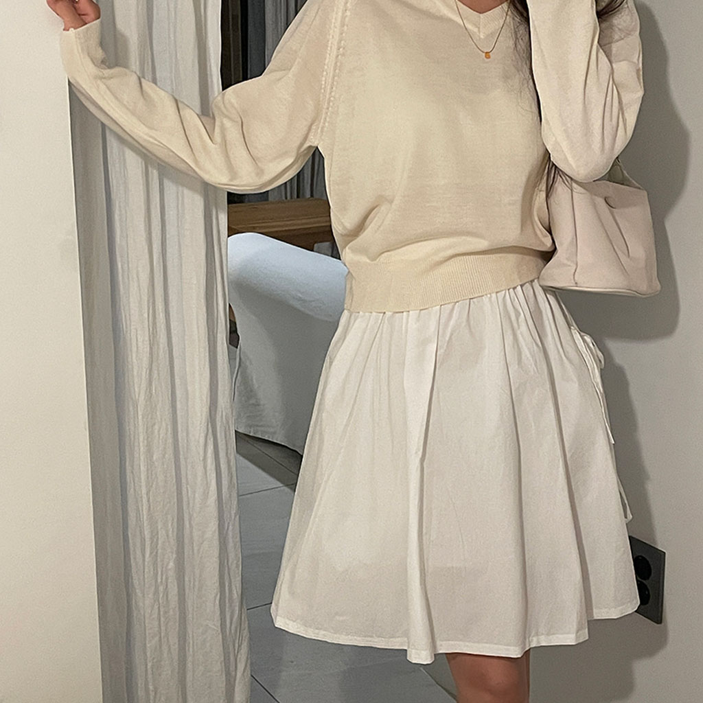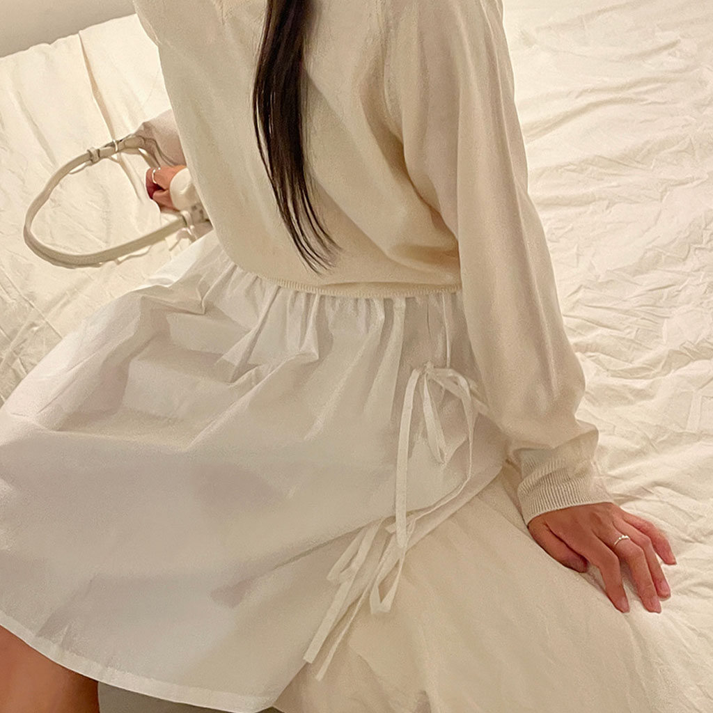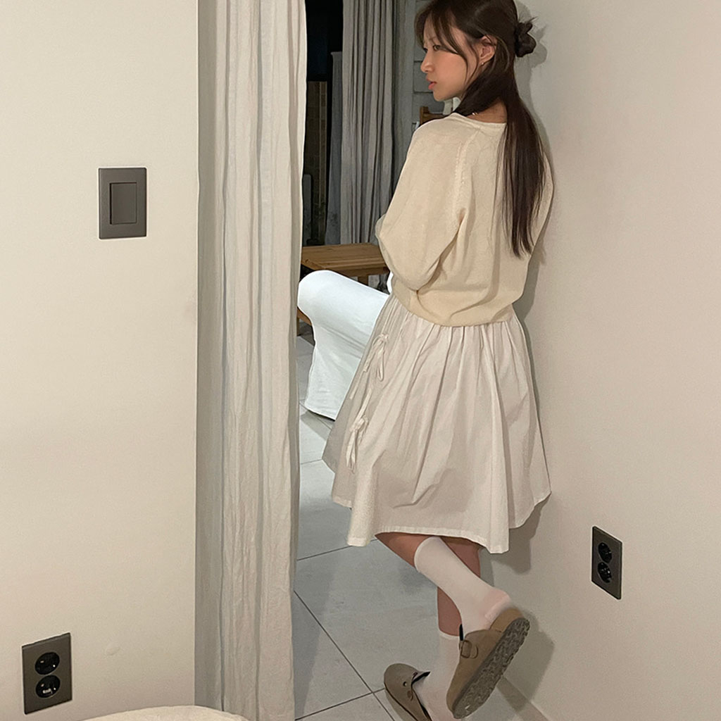 [2color]リボンゴムミドル丈スカート