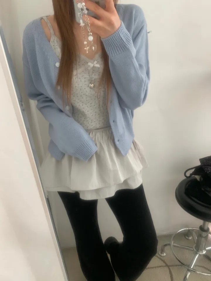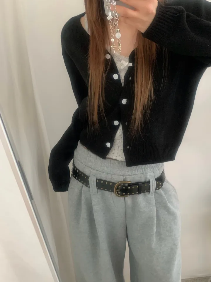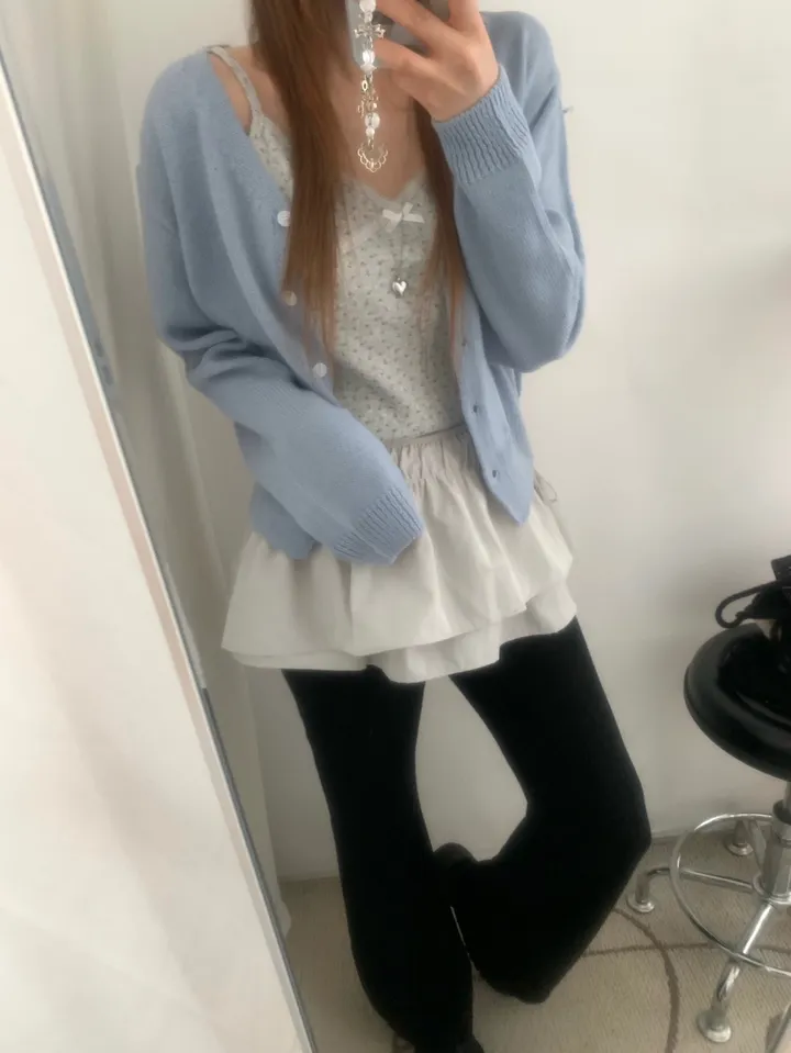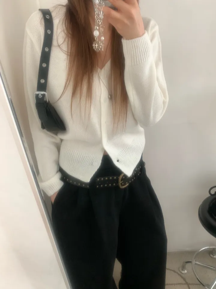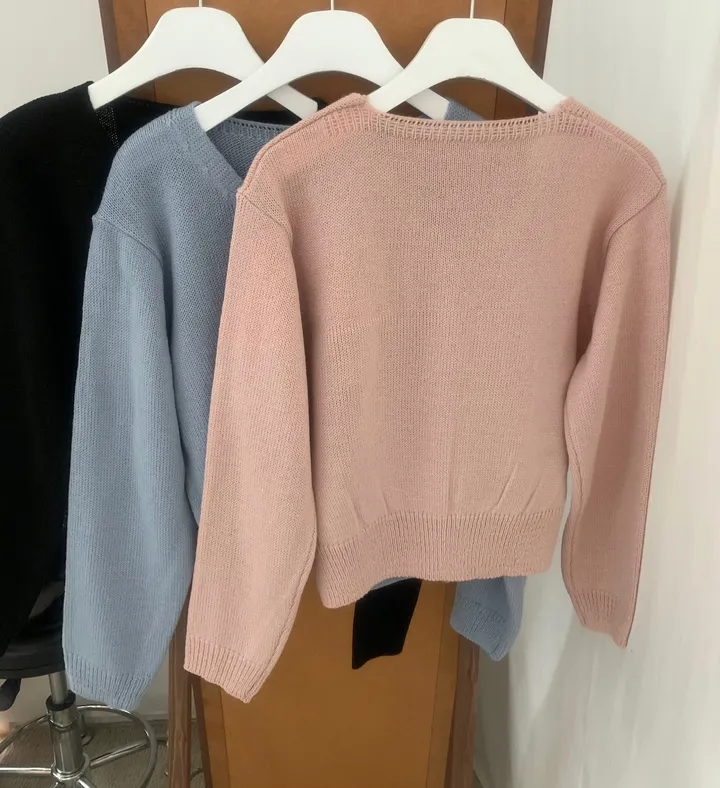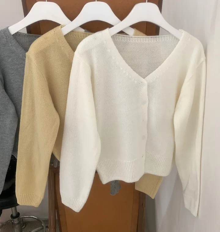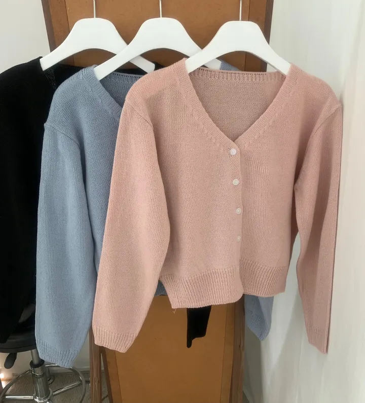 Vネックコージーデイリークロップドカーディガン