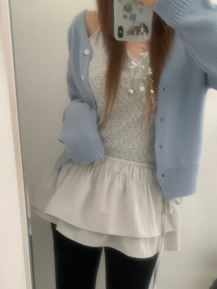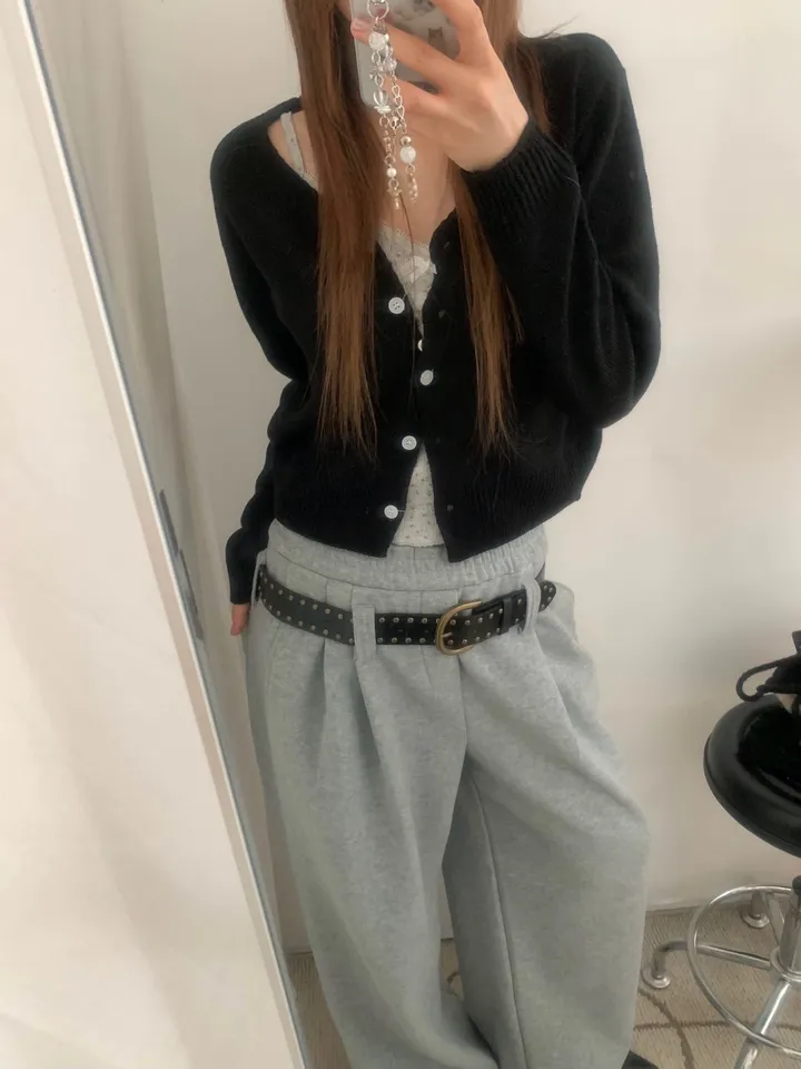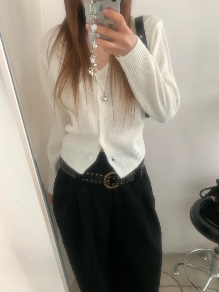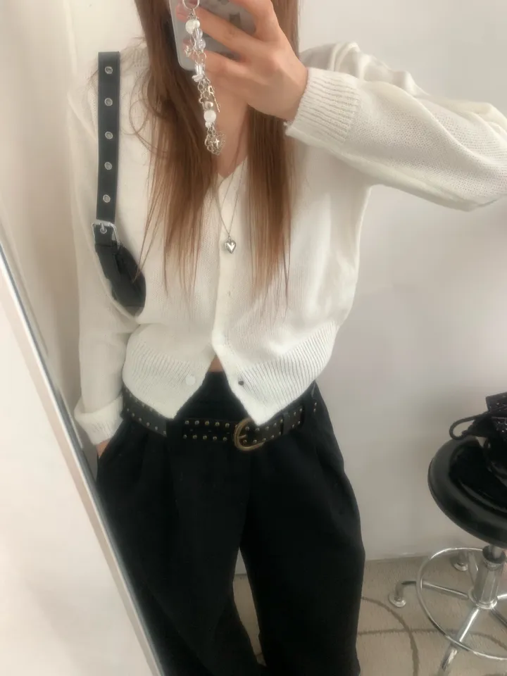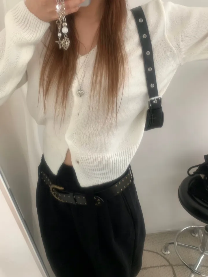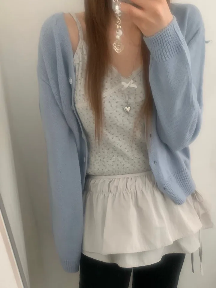 Vネックコージーデイリークロップドカーディガン