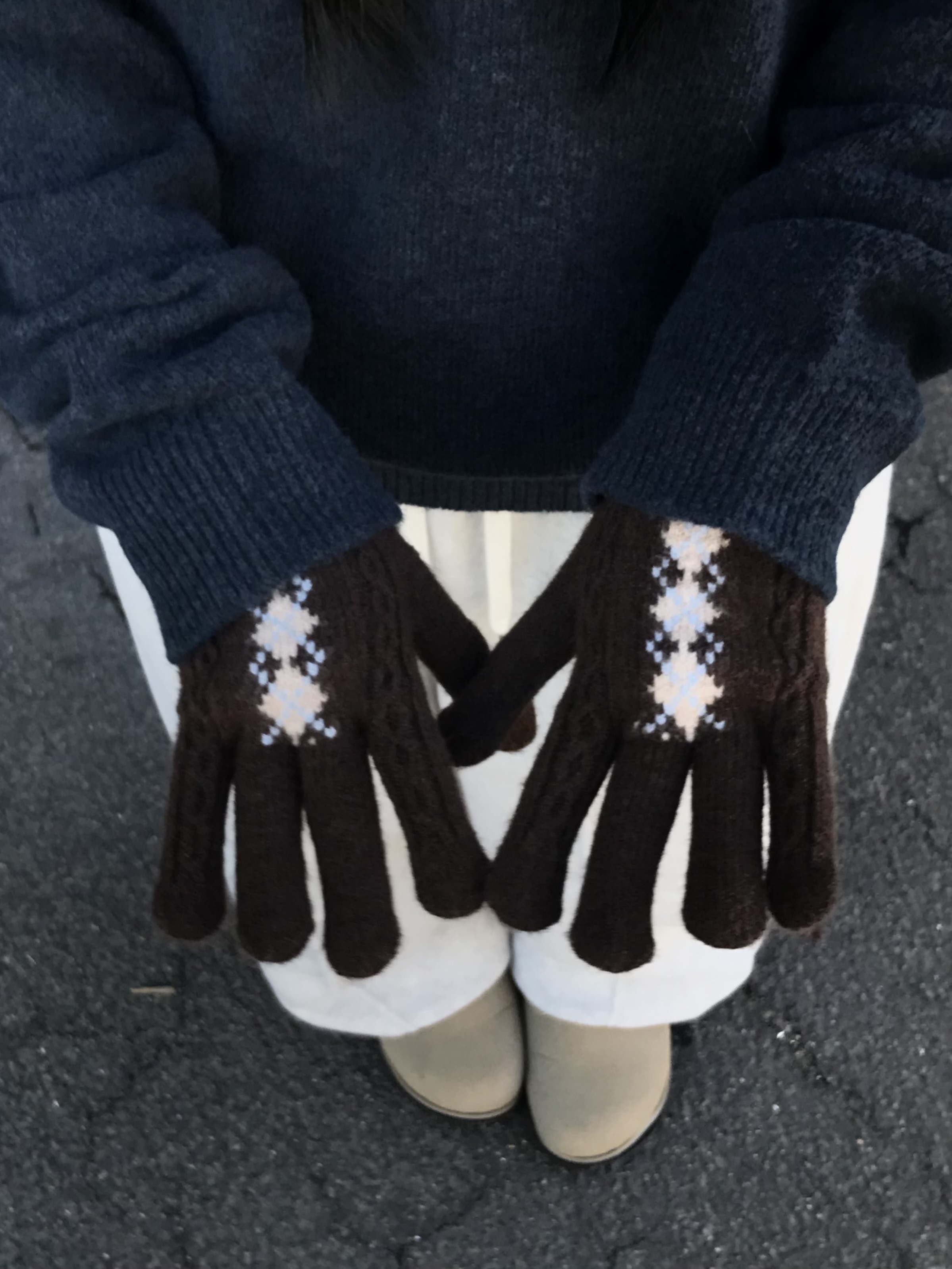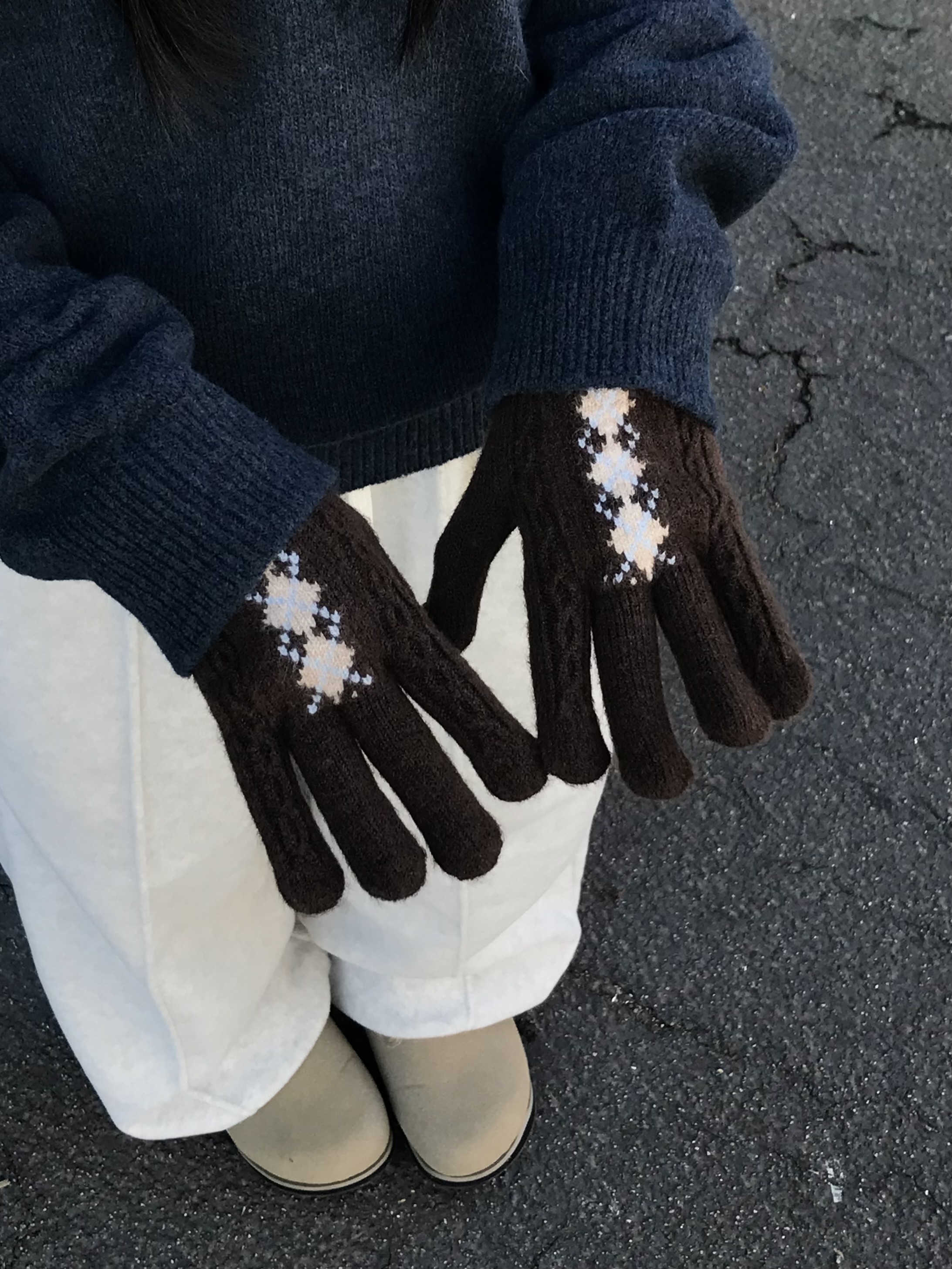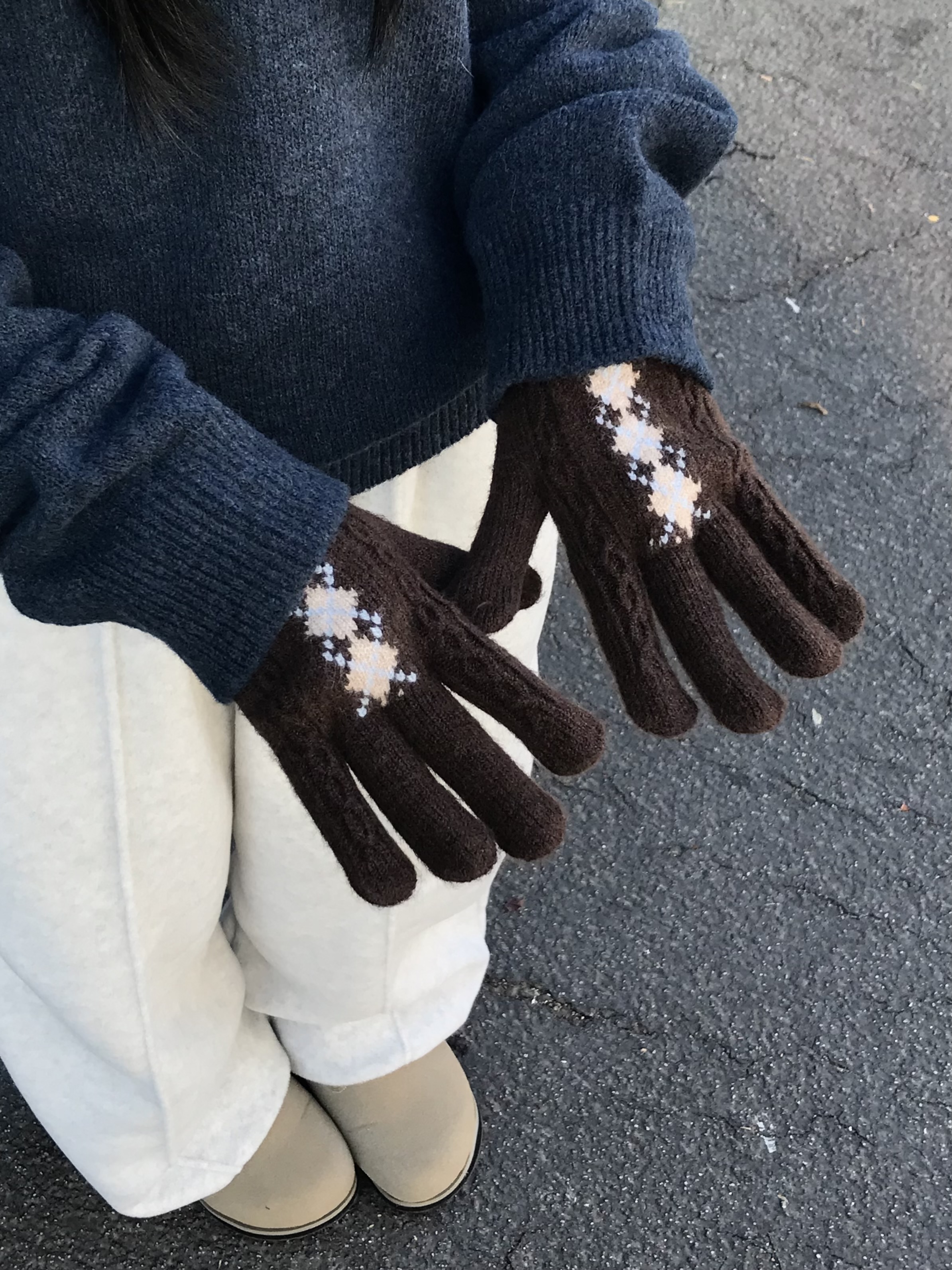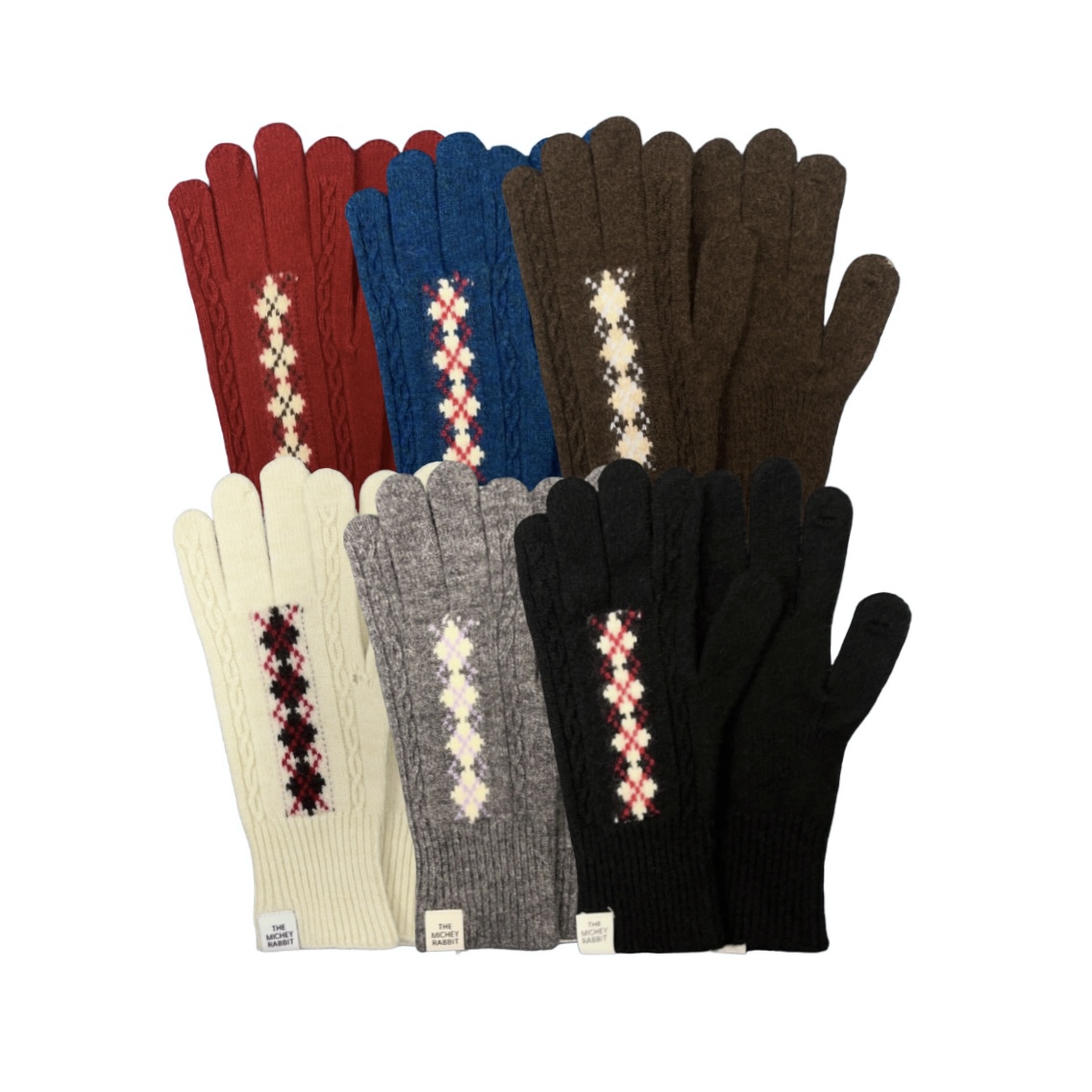 (6 color) アーガイル 指穴付き 手袋