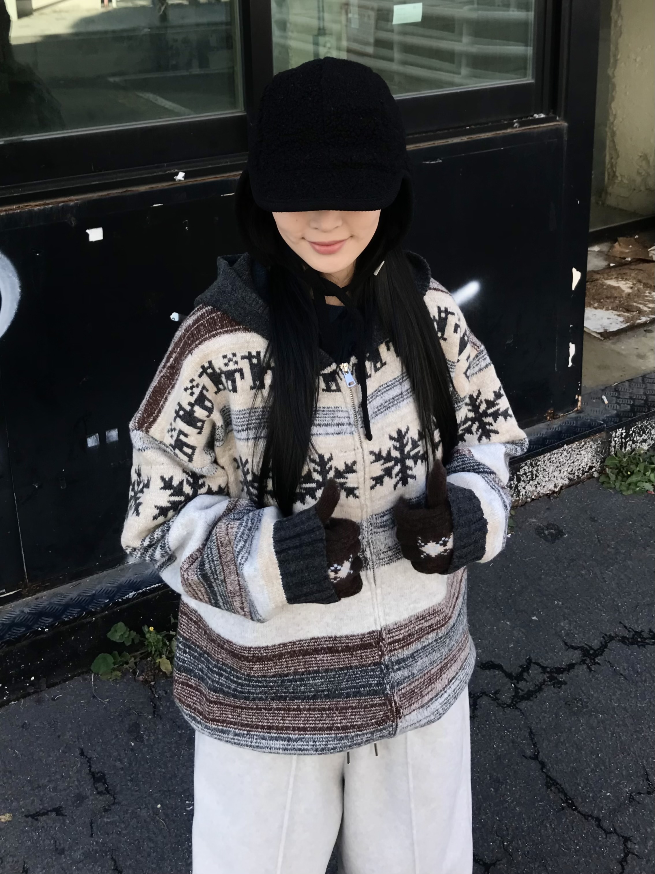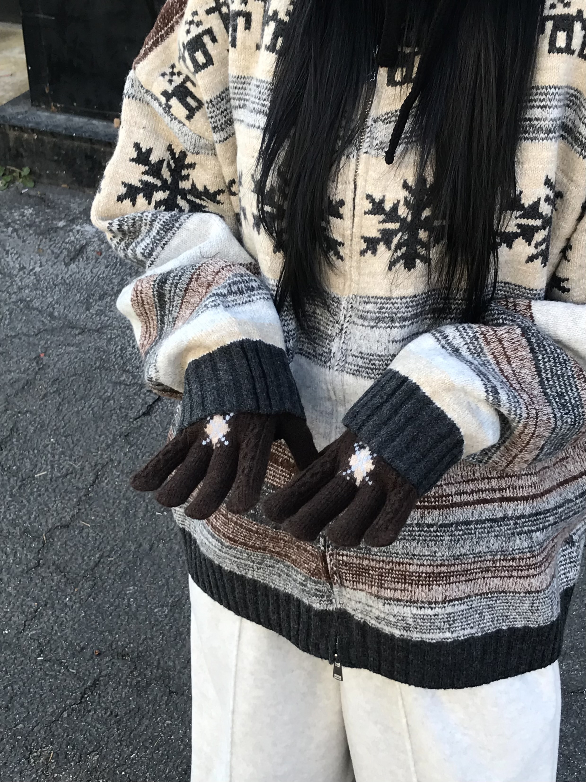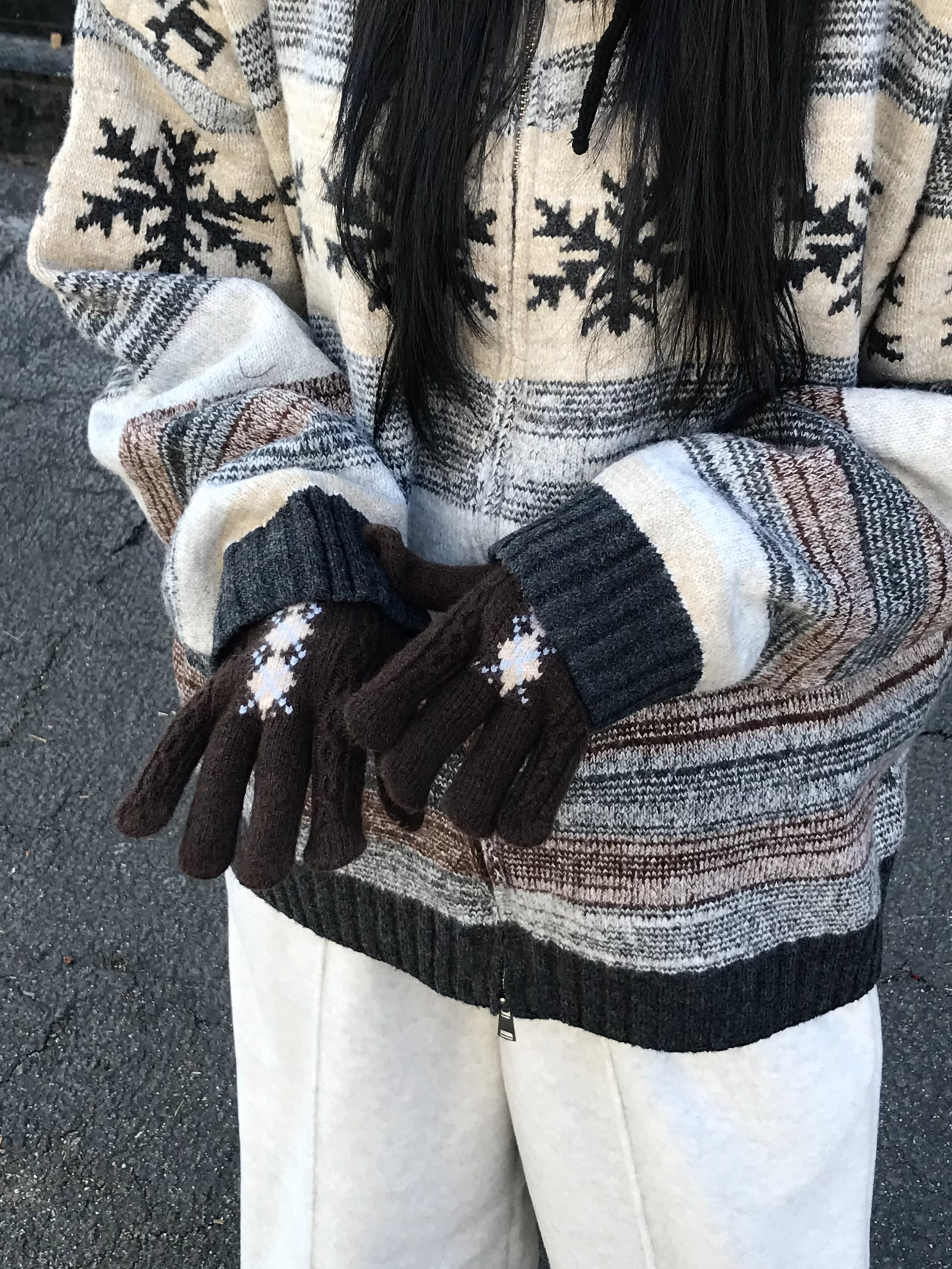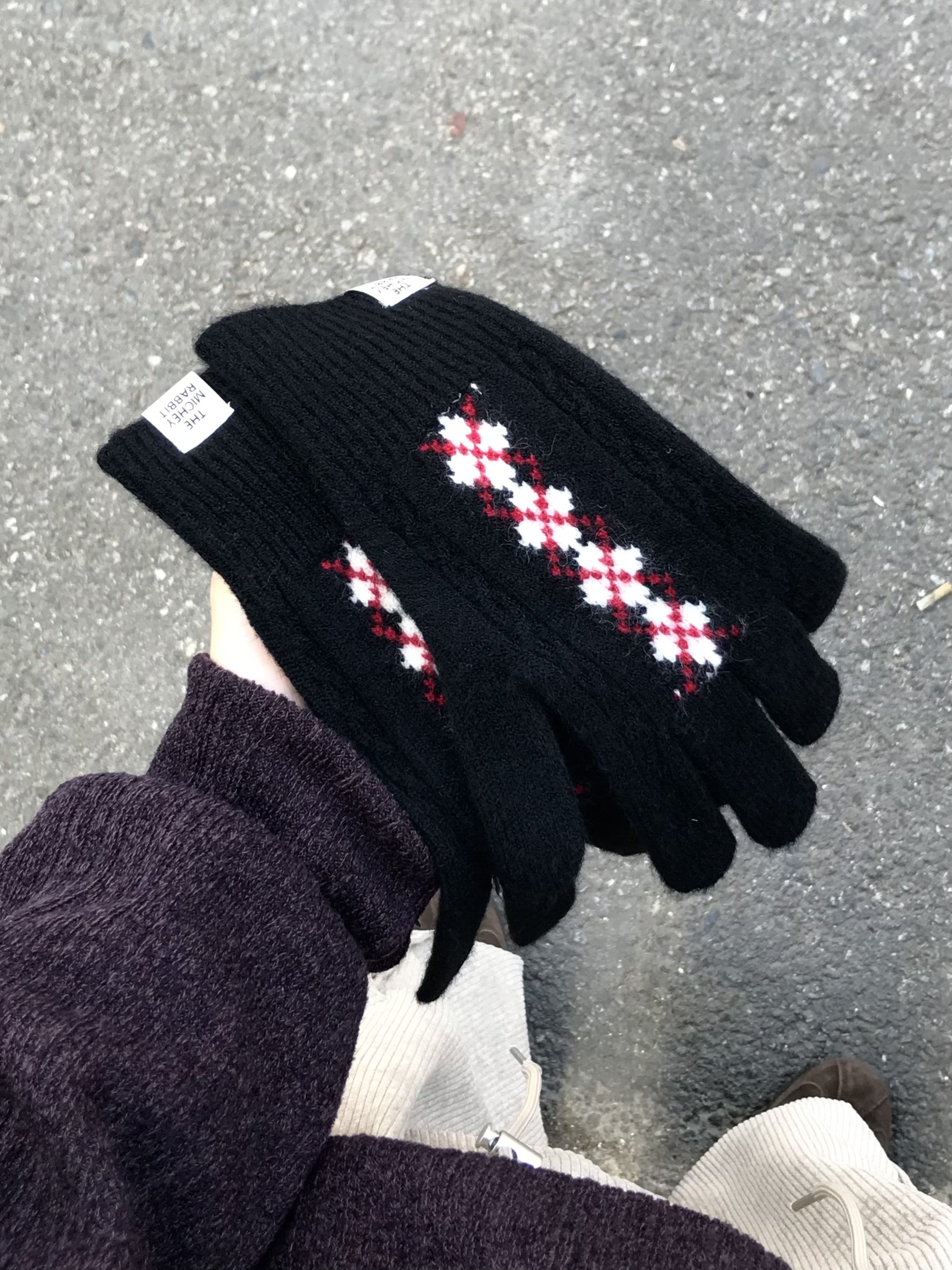 (6 color) アーガイル 指穴付き 手袋