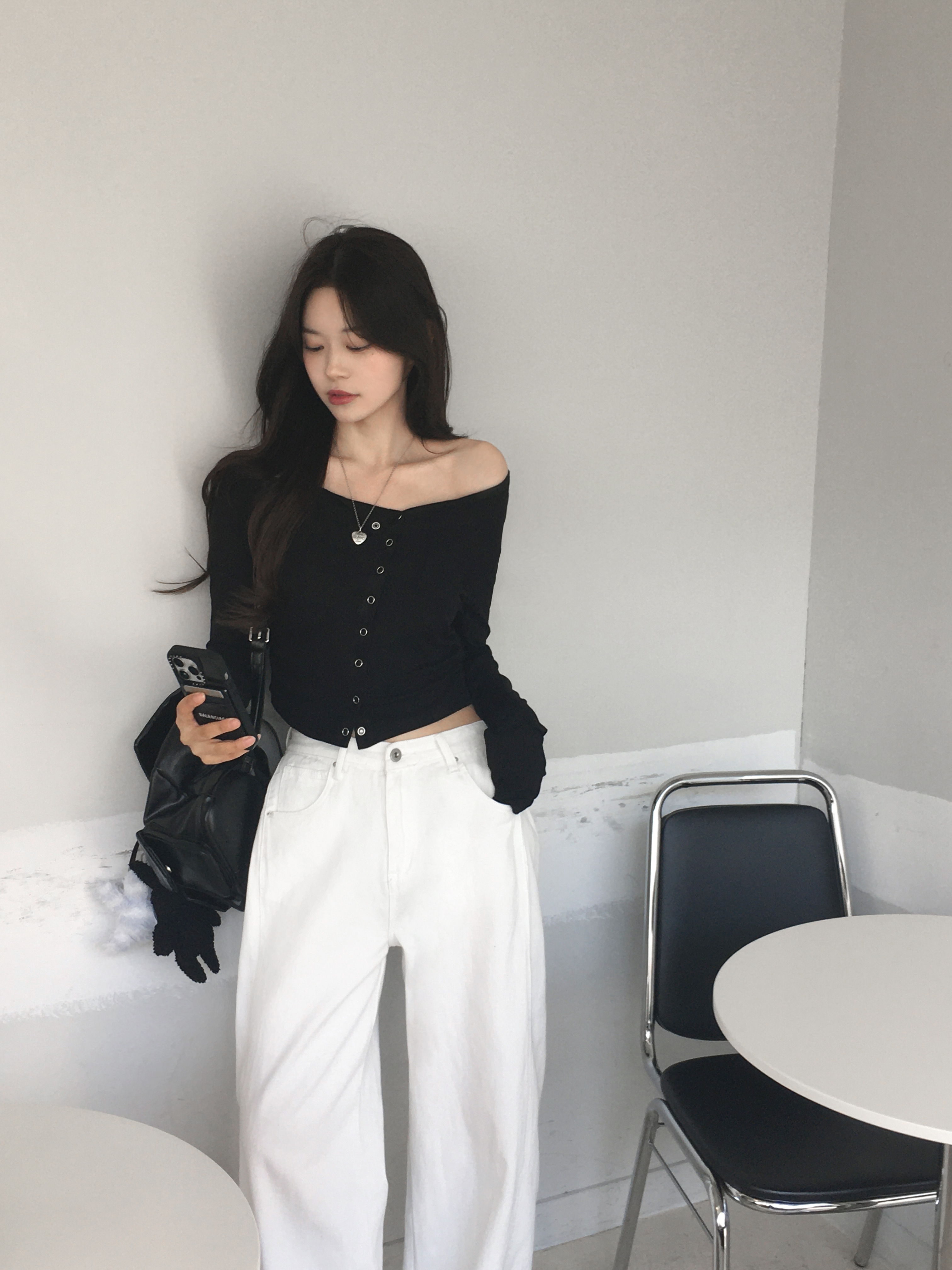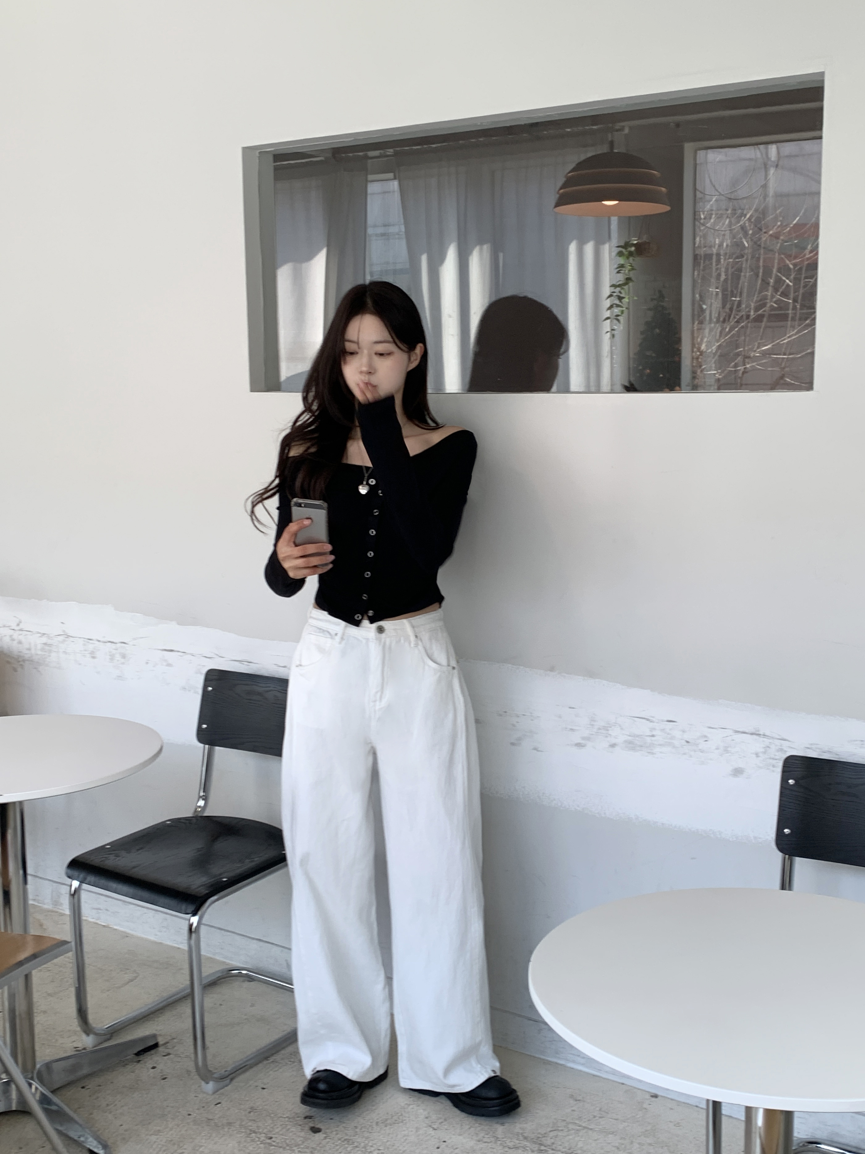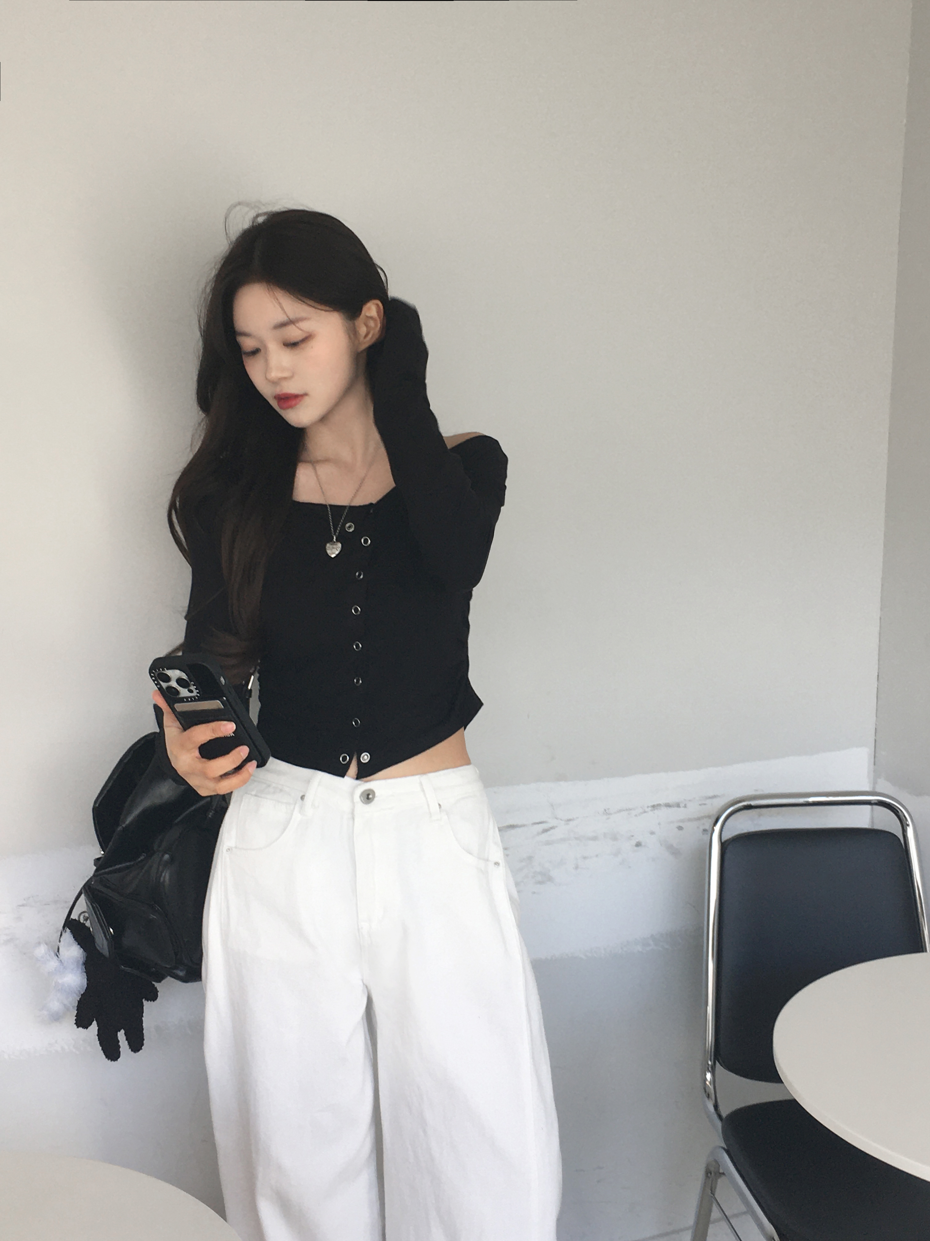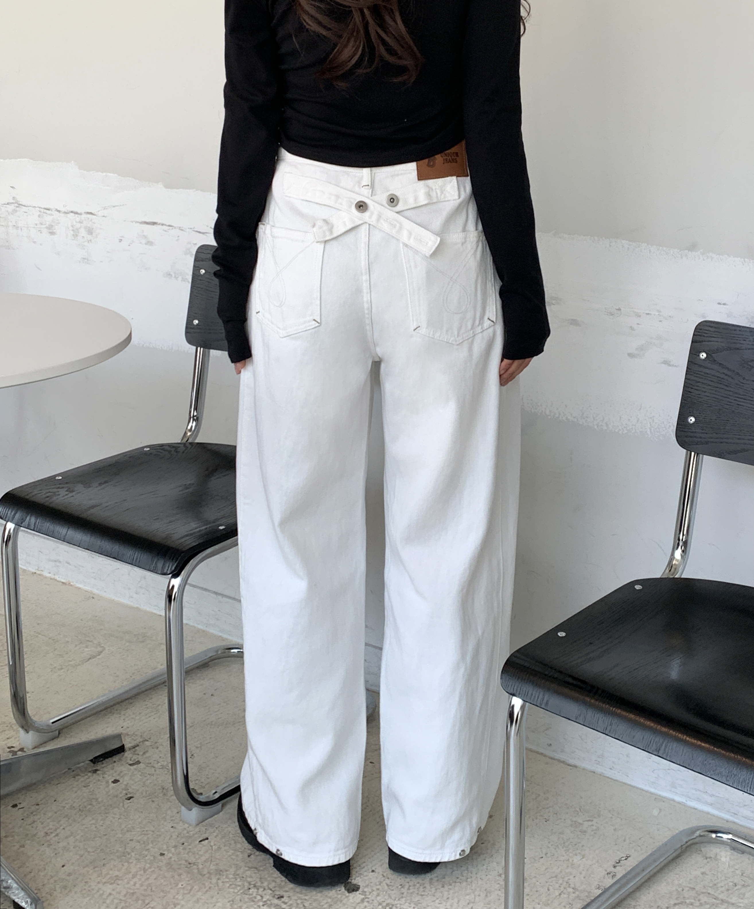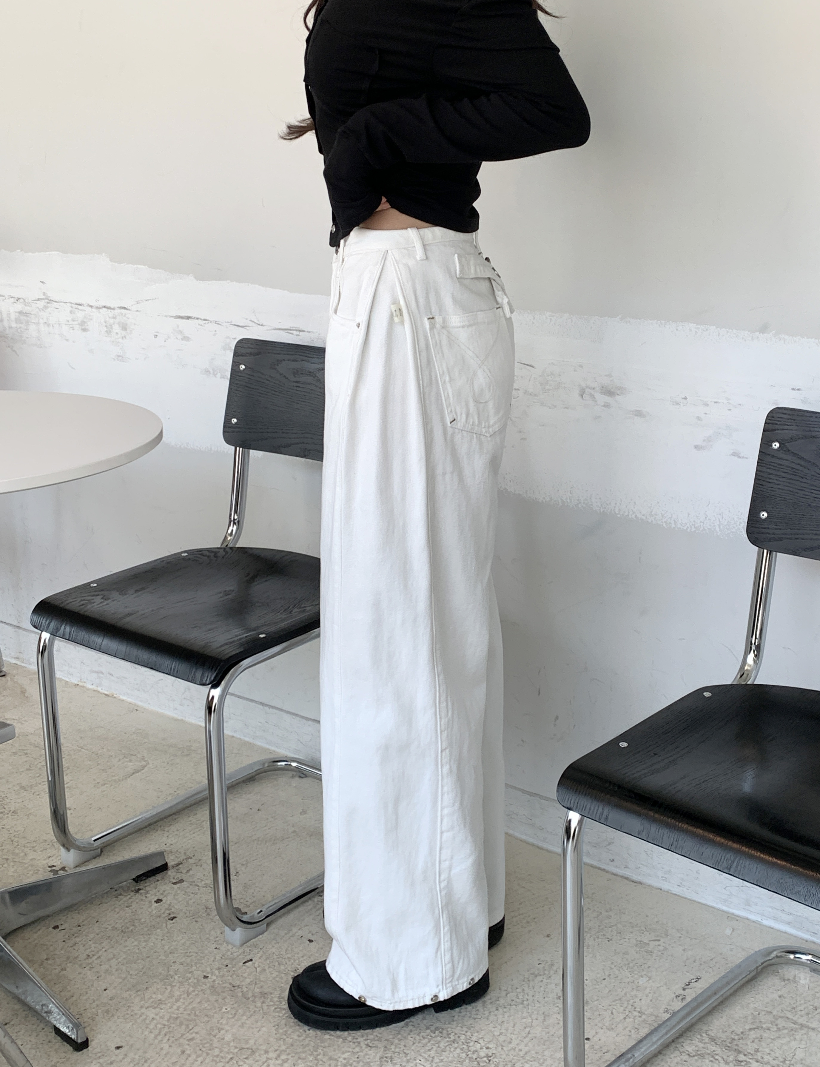 サイドバックルステッチワイドチノパンツ
