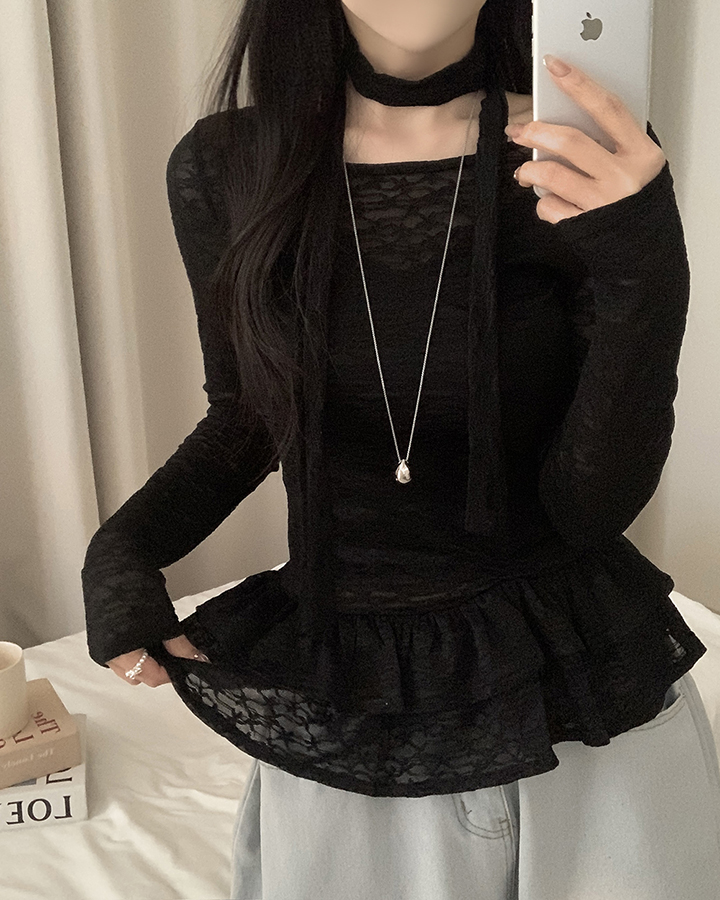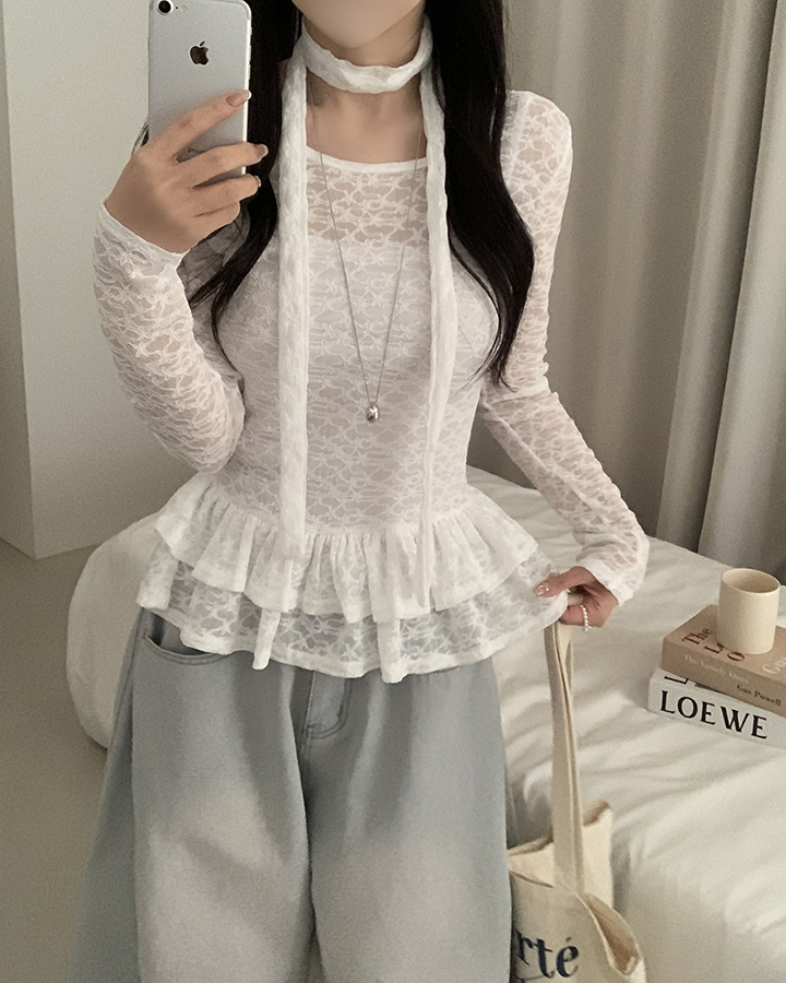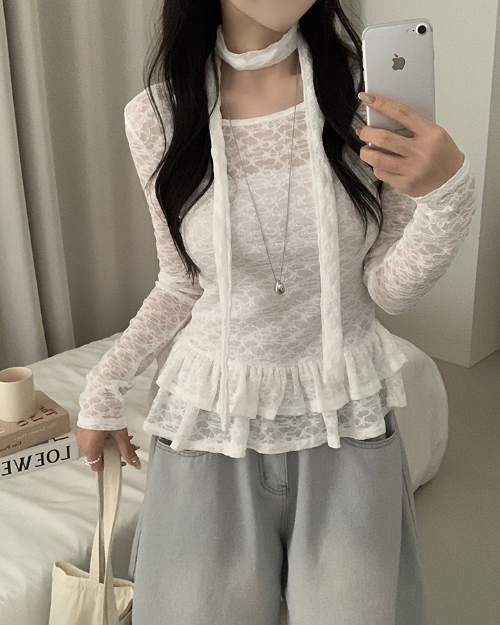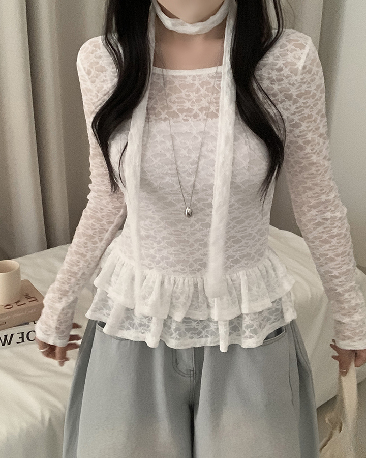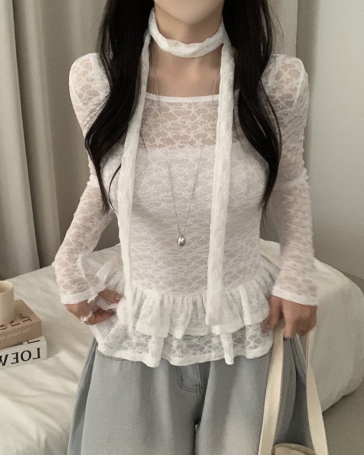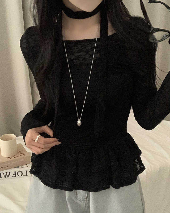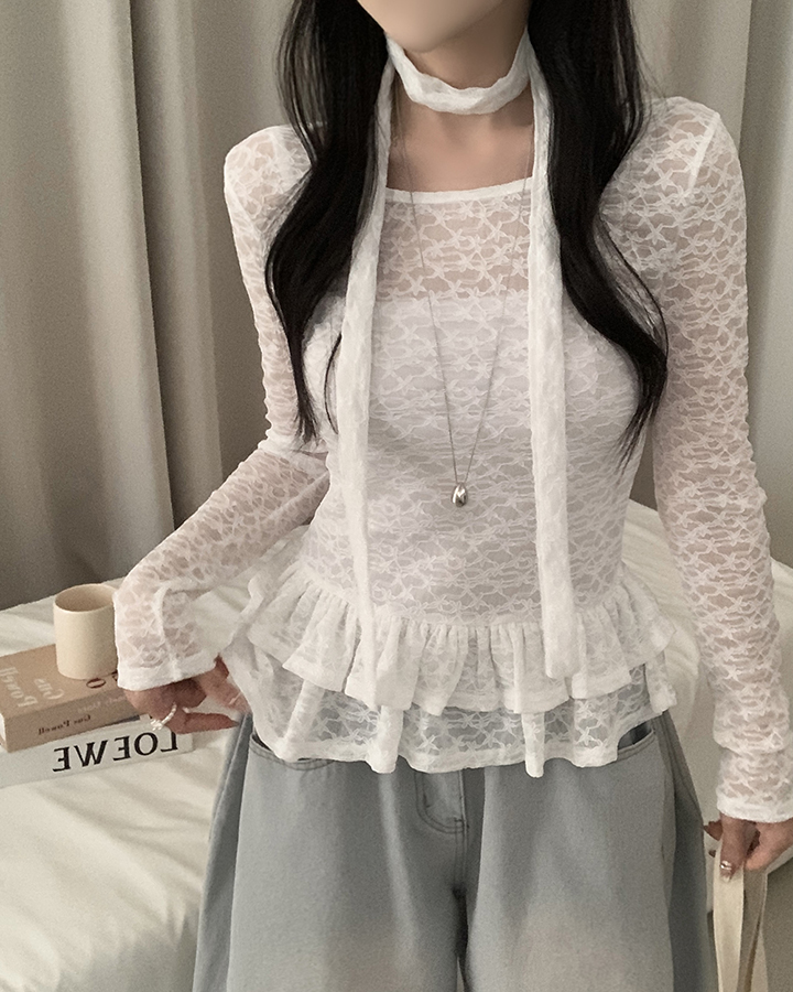 (set)(2color)チョーカーティアードレースブラウス