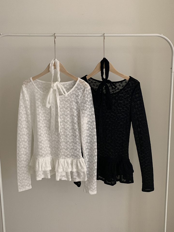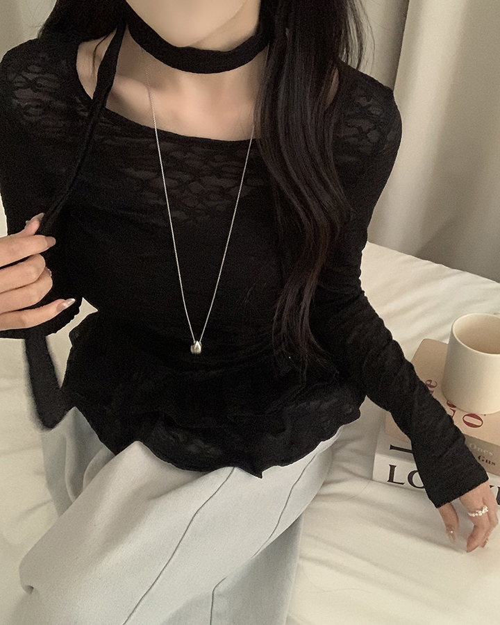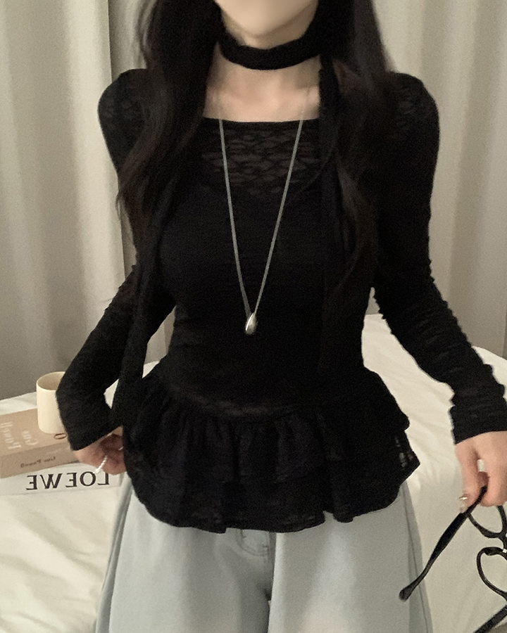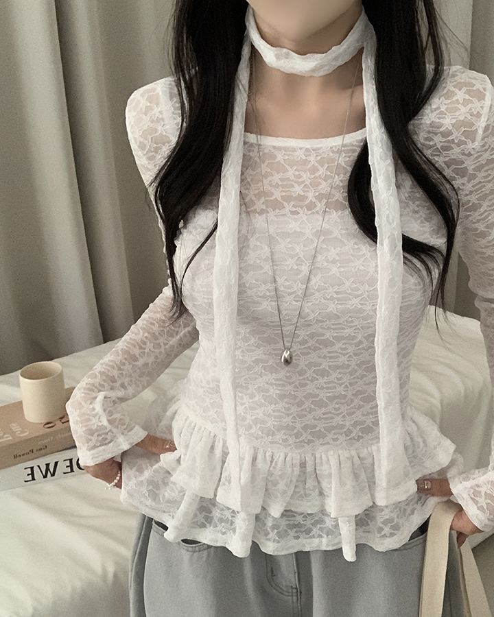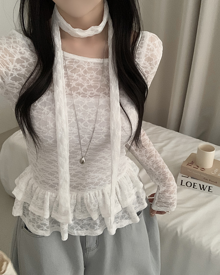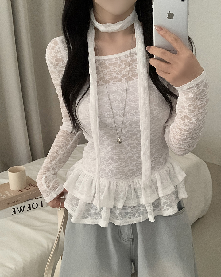 (set)(2color)チョーカーティアードレースブラウス
