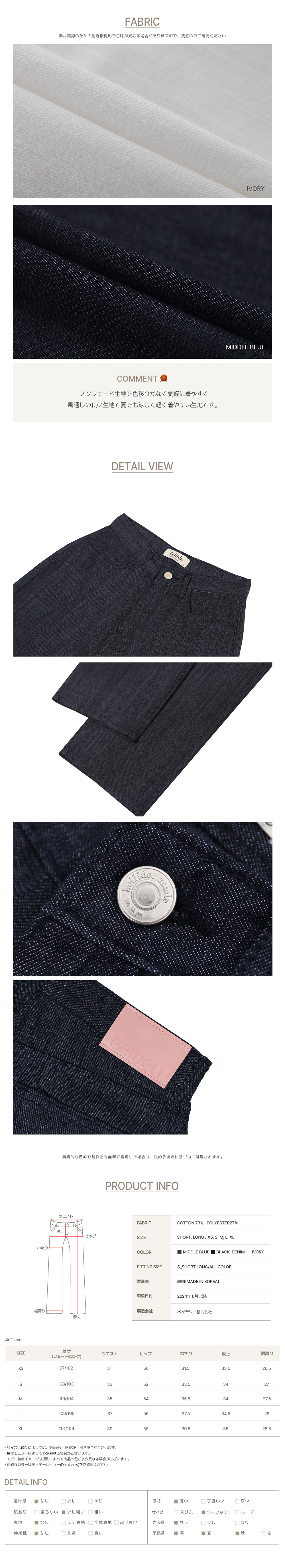 (ORIGINAL) サマーノンフェードワイドパンツ(夏デニム)