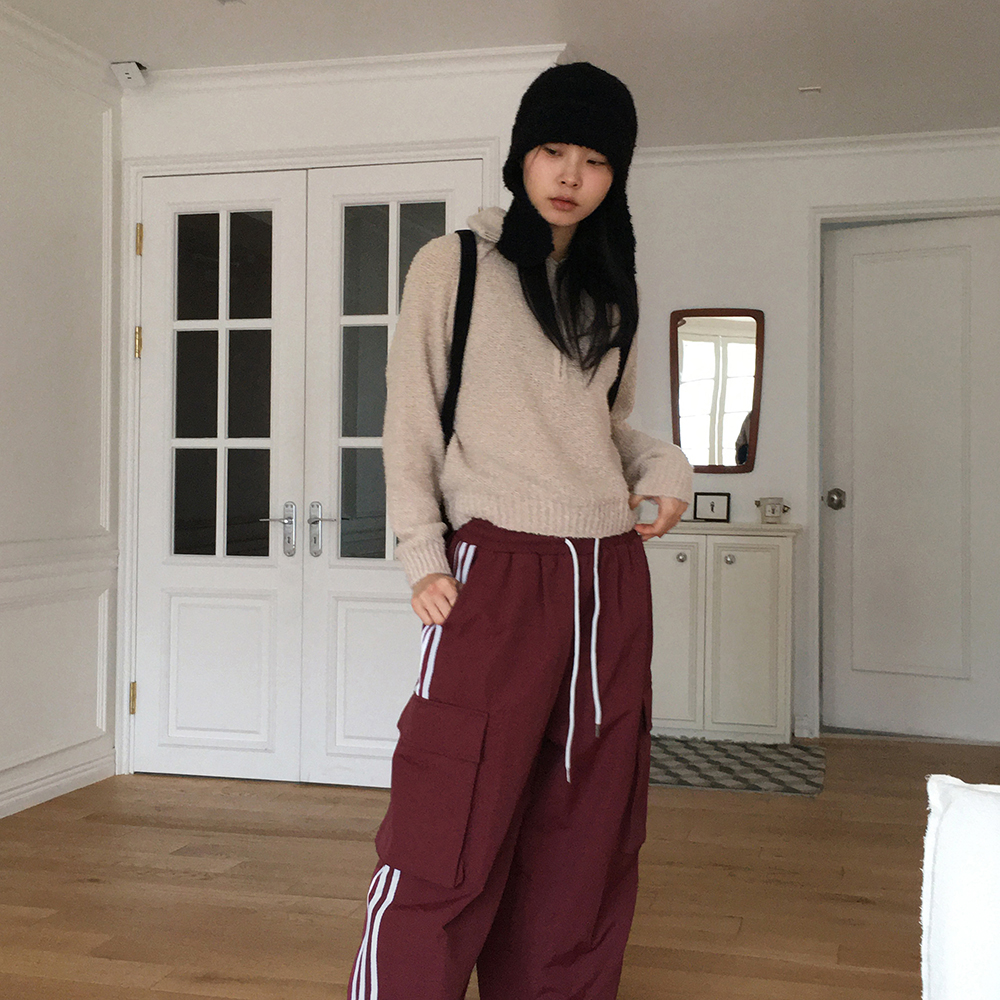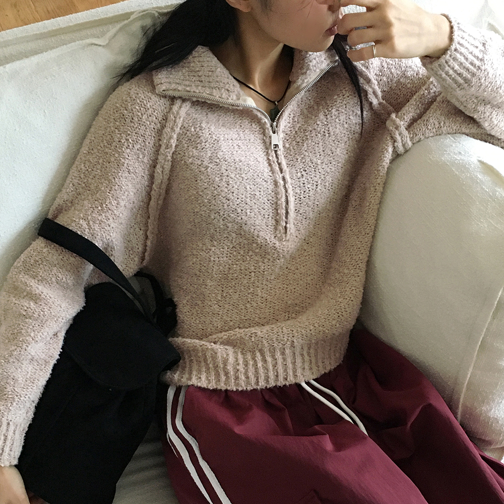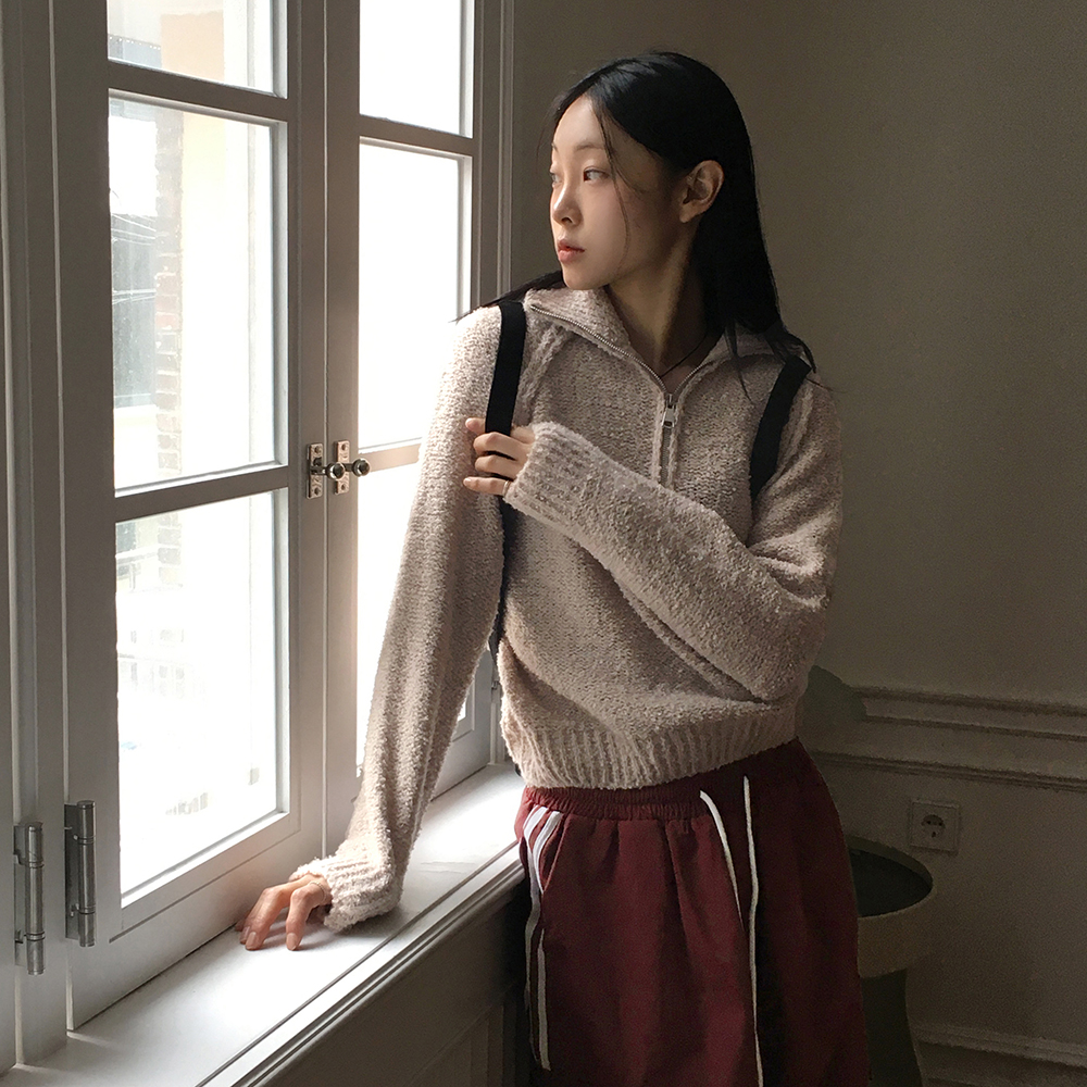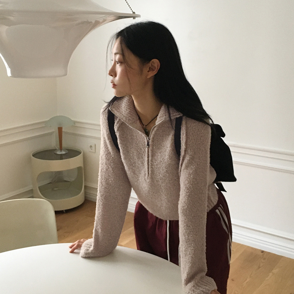 ブークレスリット長袖ハーフジップニット