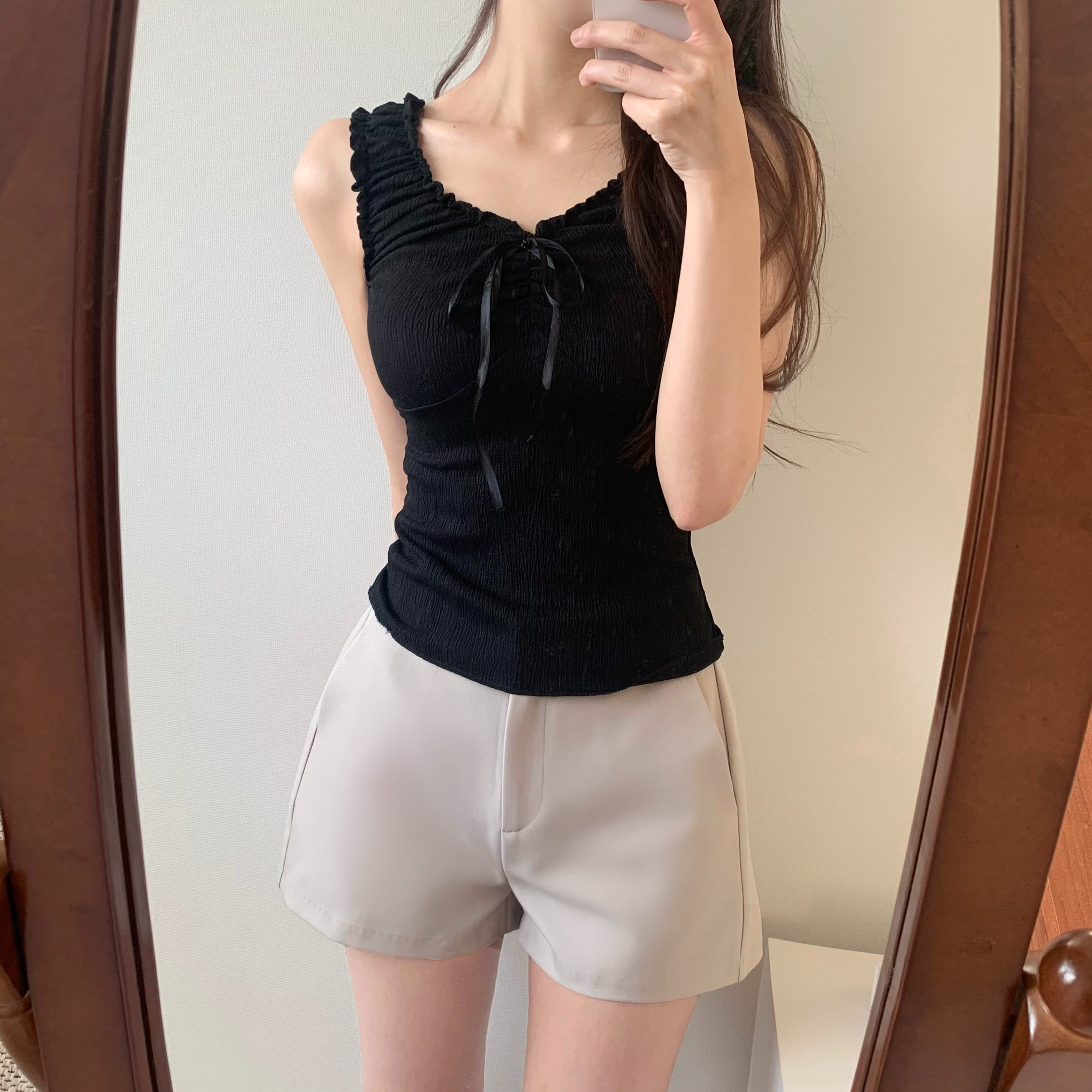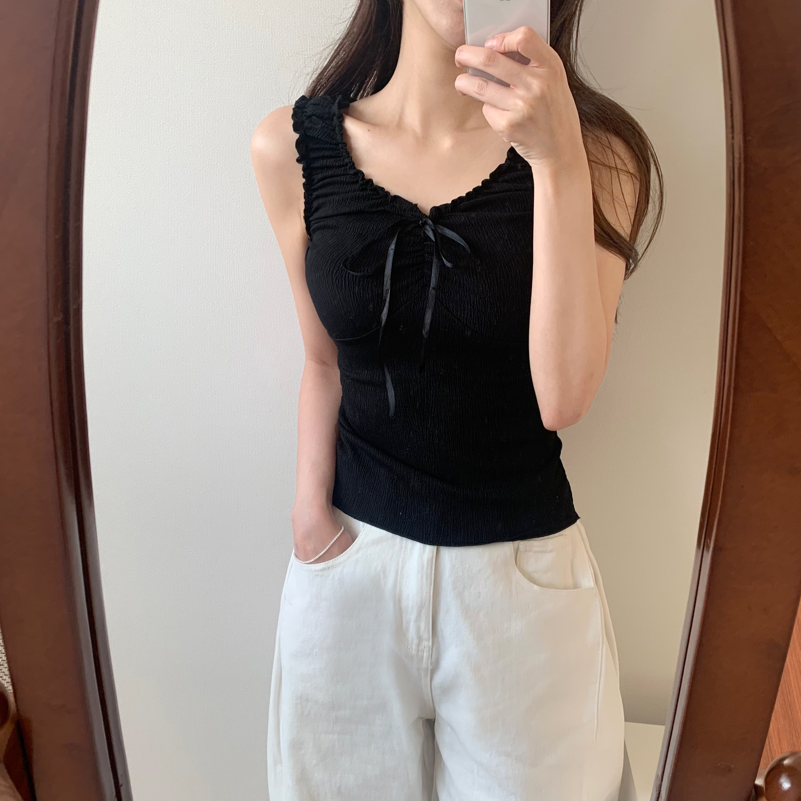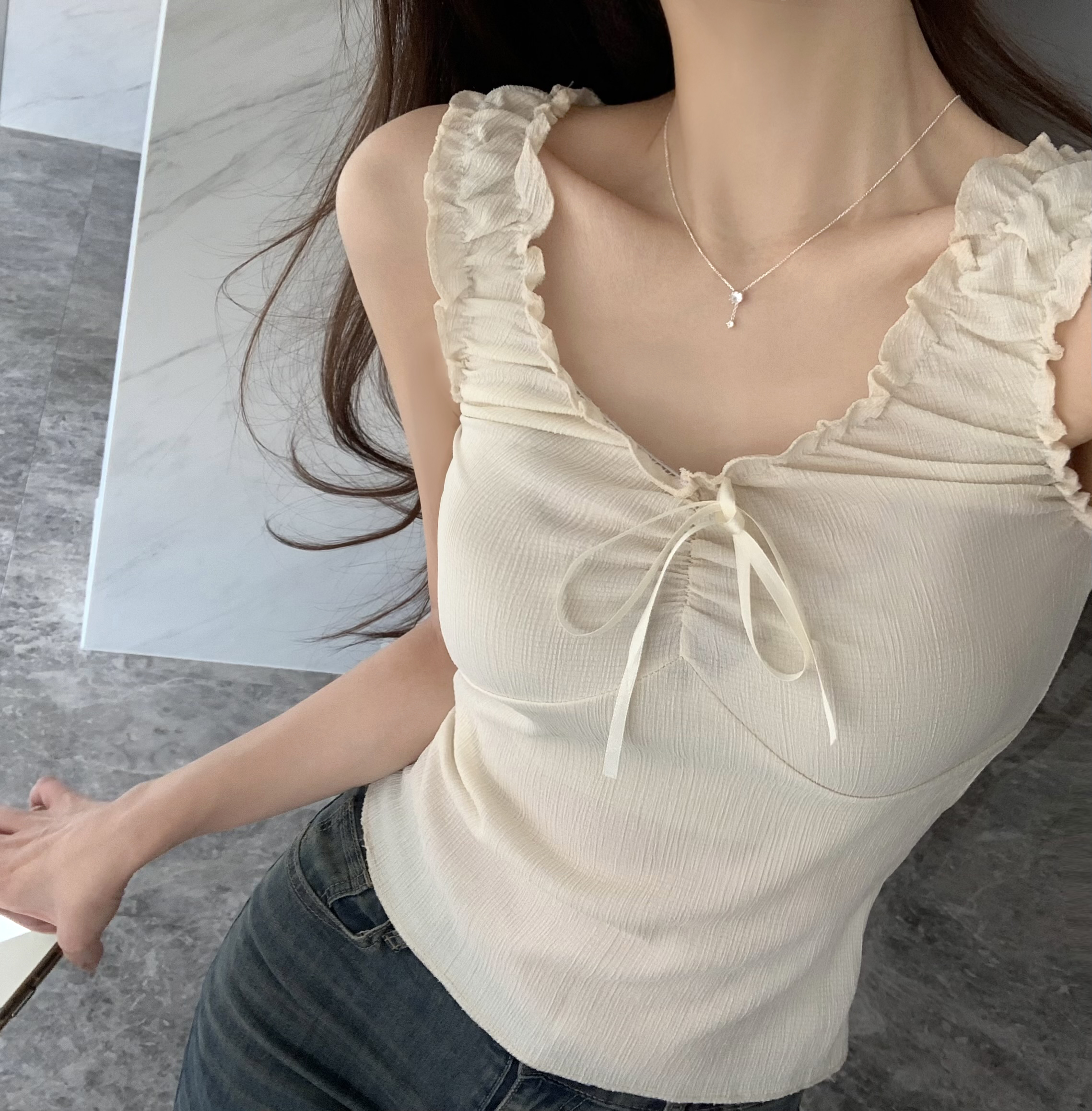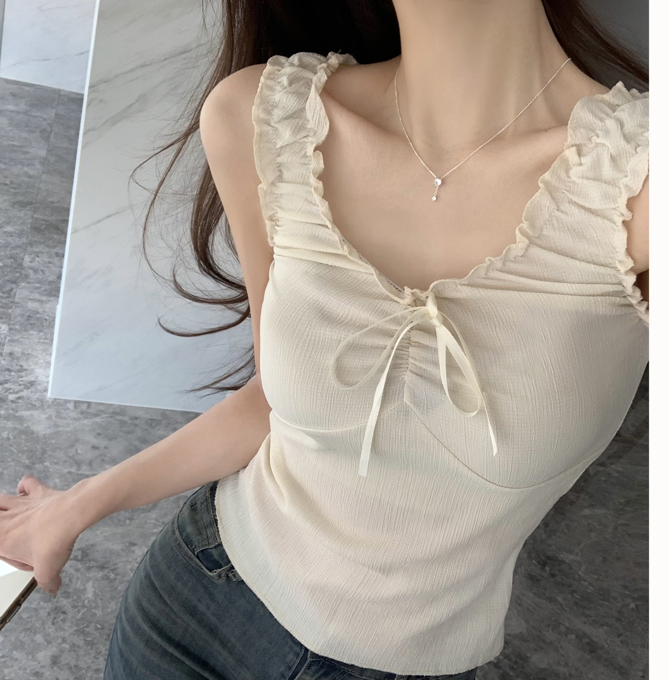 リボンベビーシャーリングフリルノースリーブ