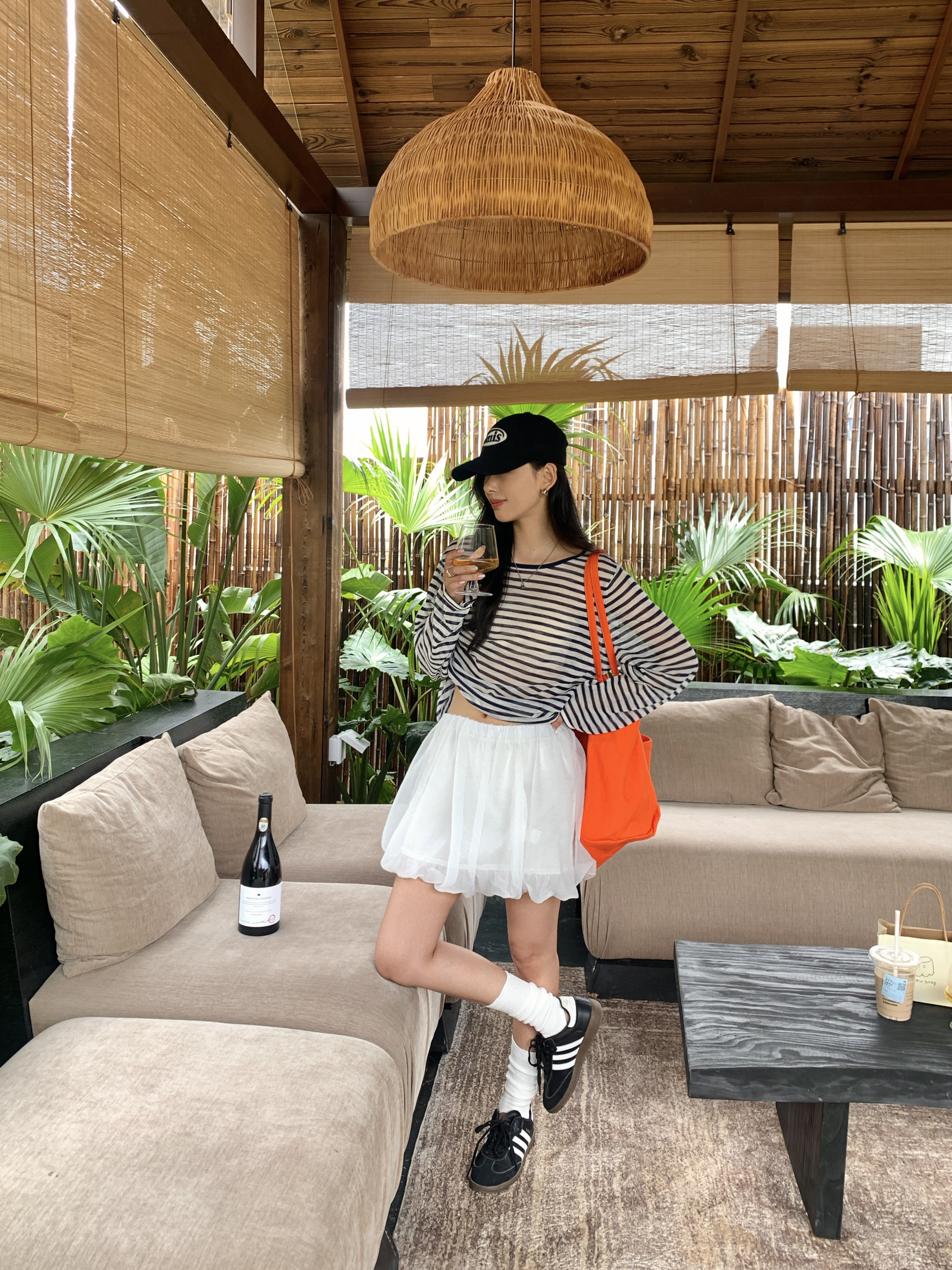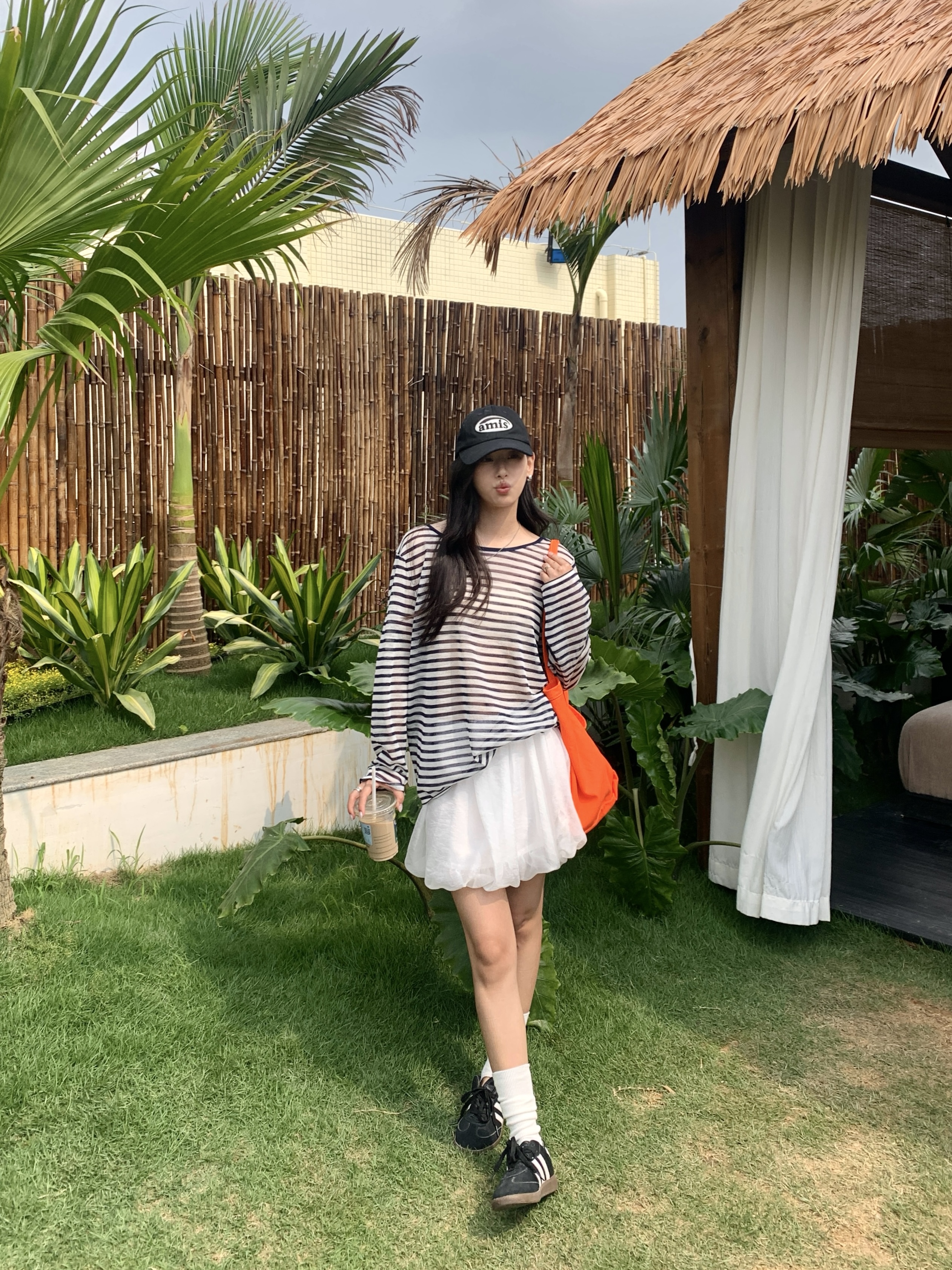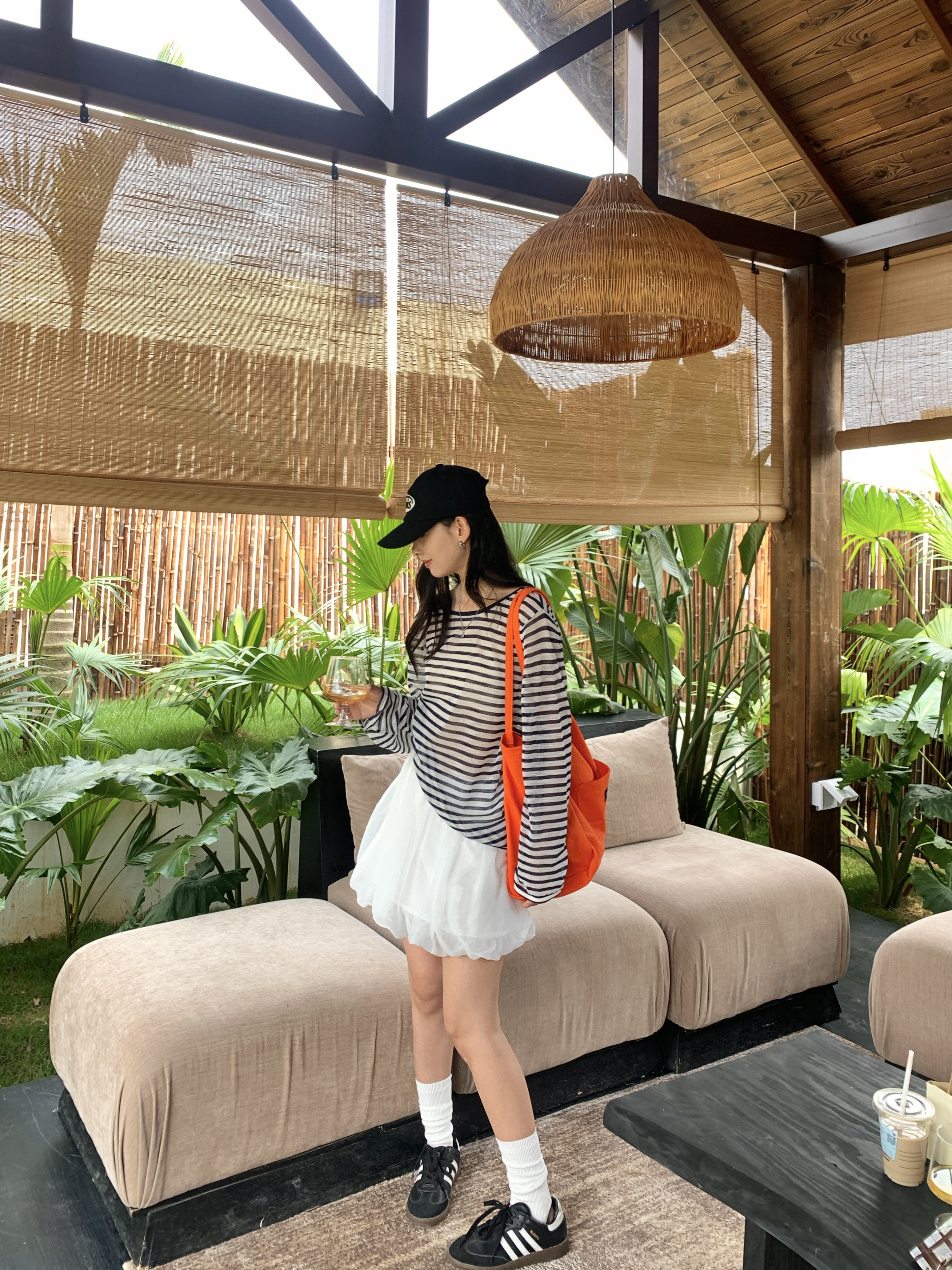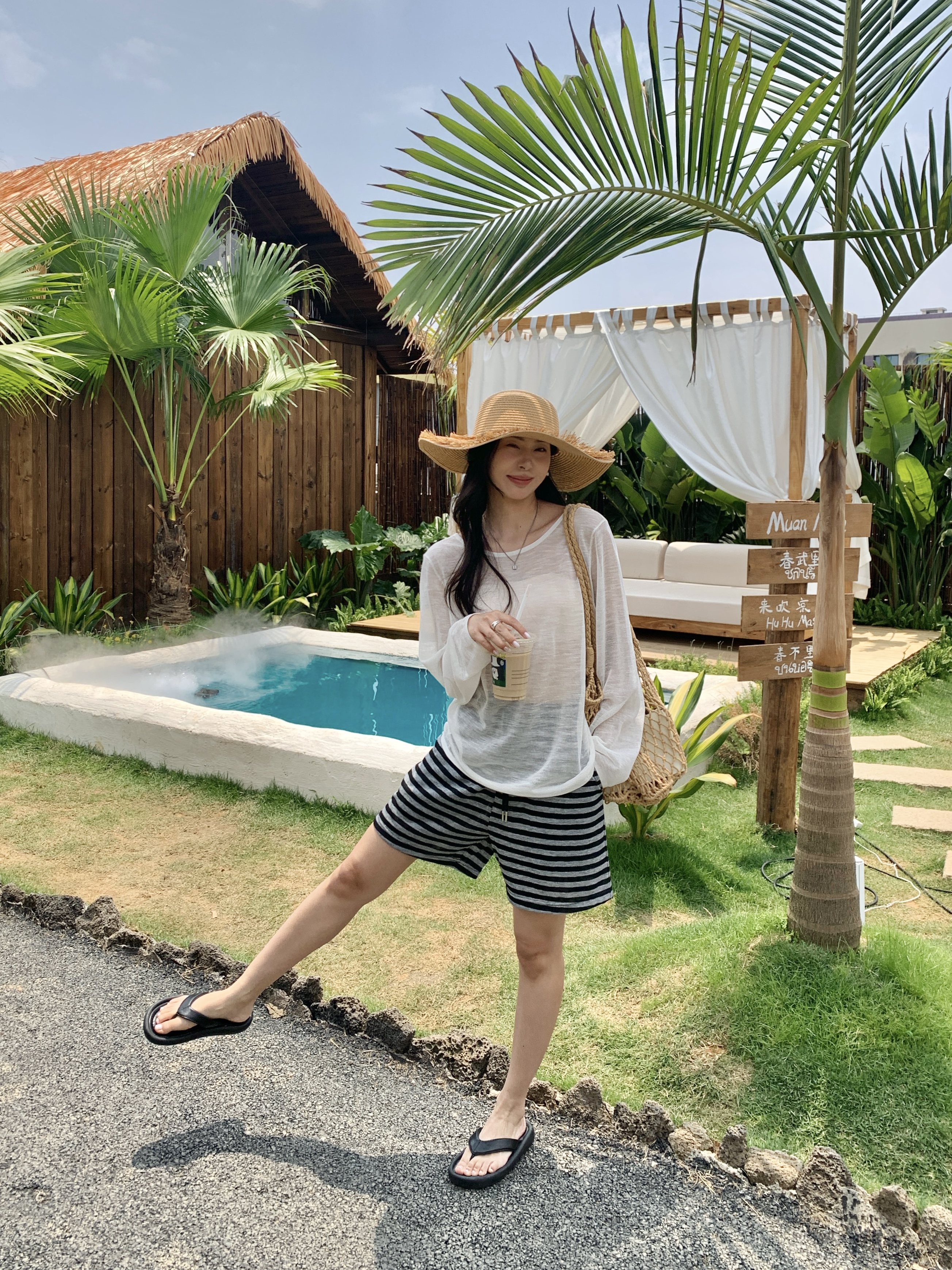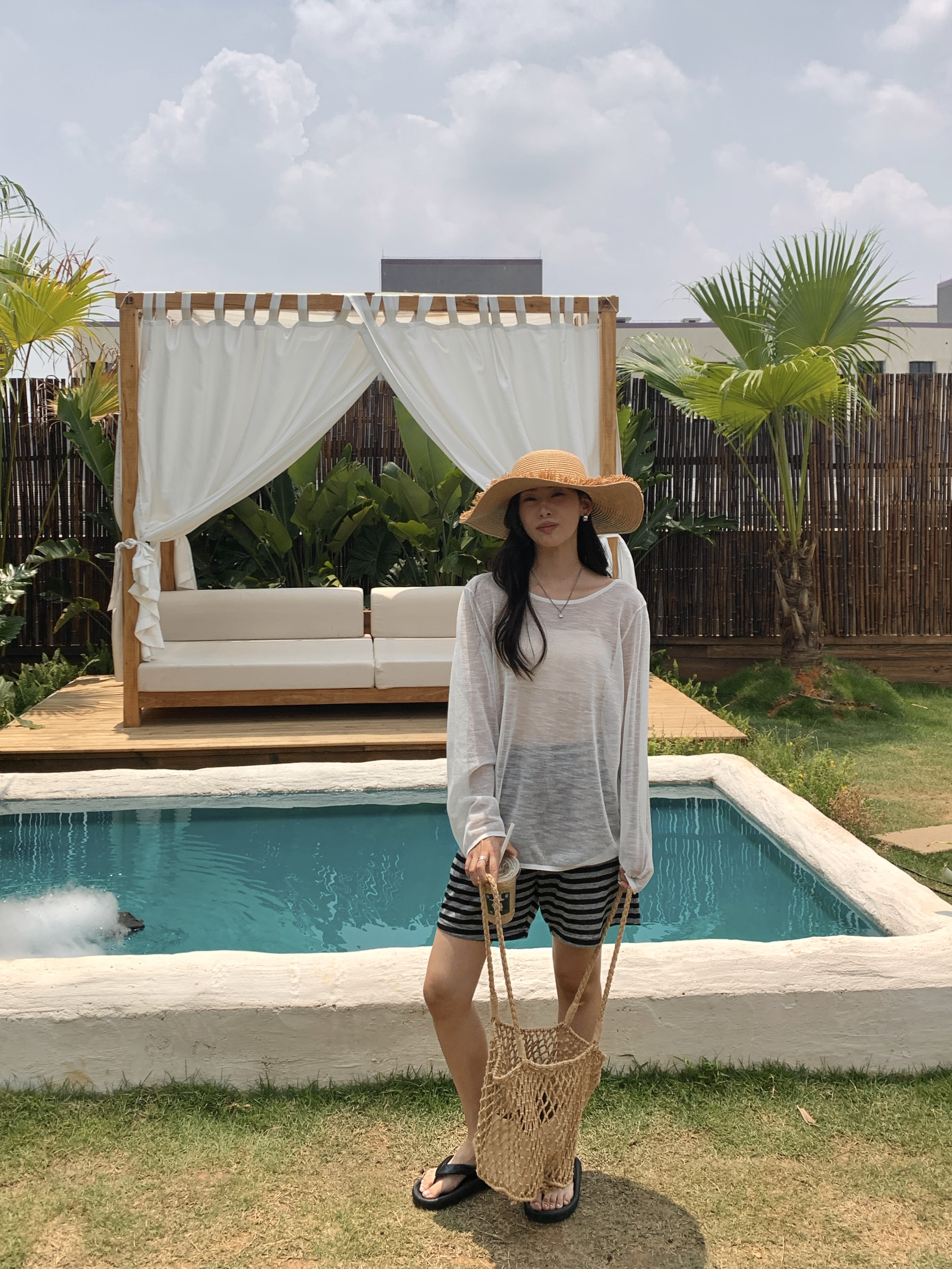 [サマールック]ビーチムードルーズフィットシアサッカーTシャツ