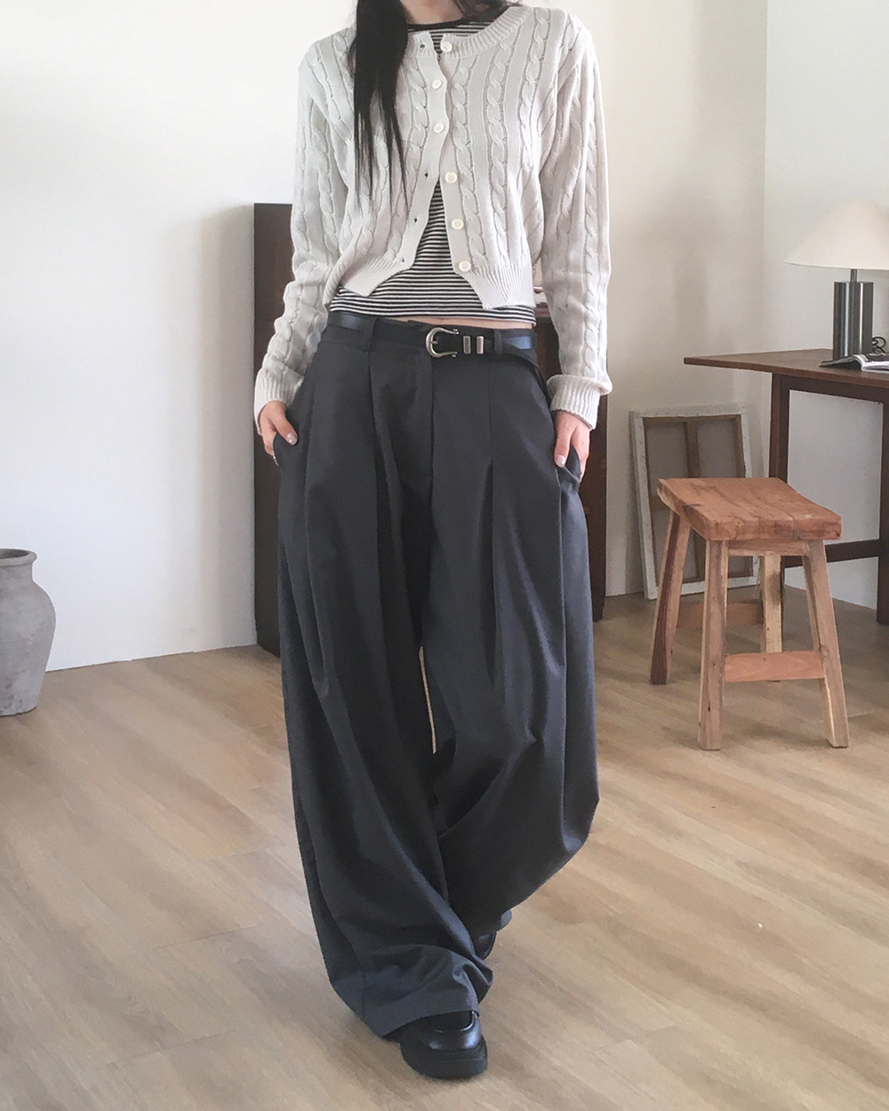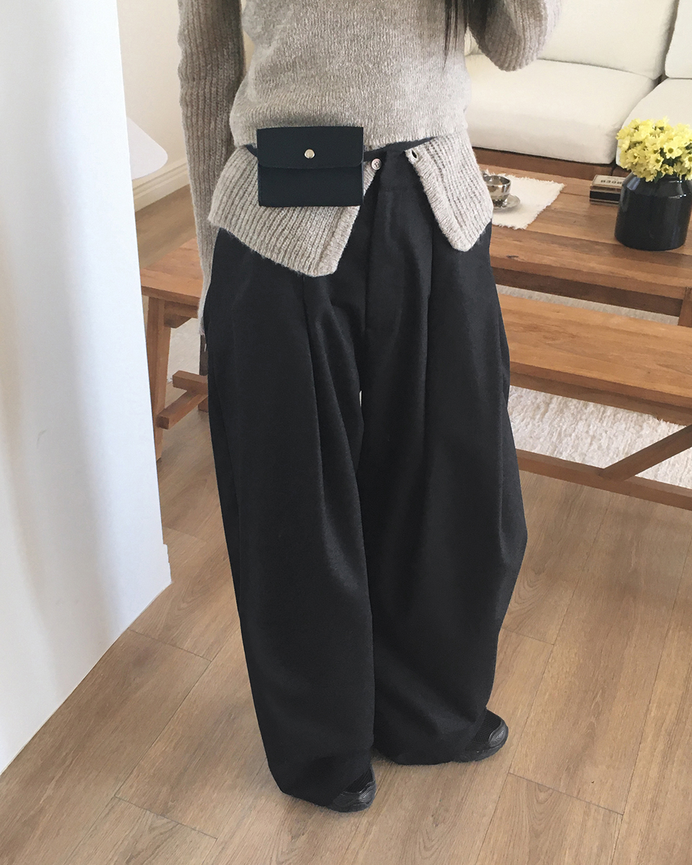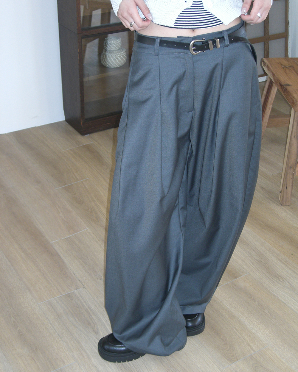 [original]ダブルタック入りワイドスラックス