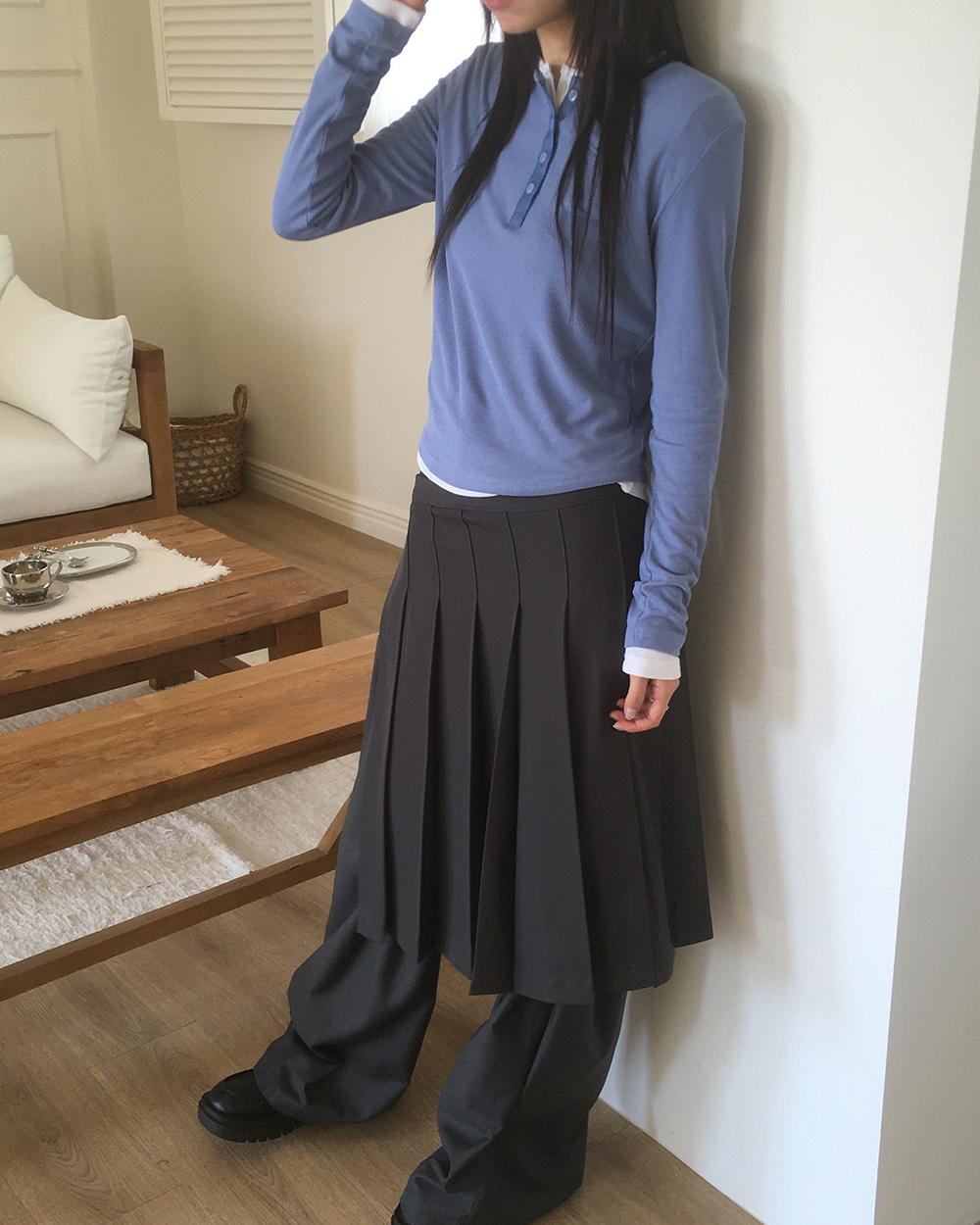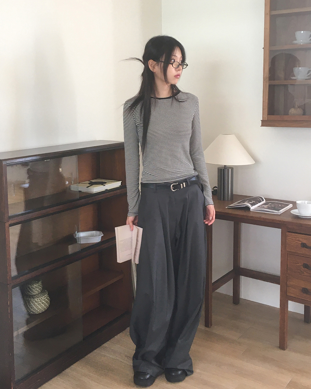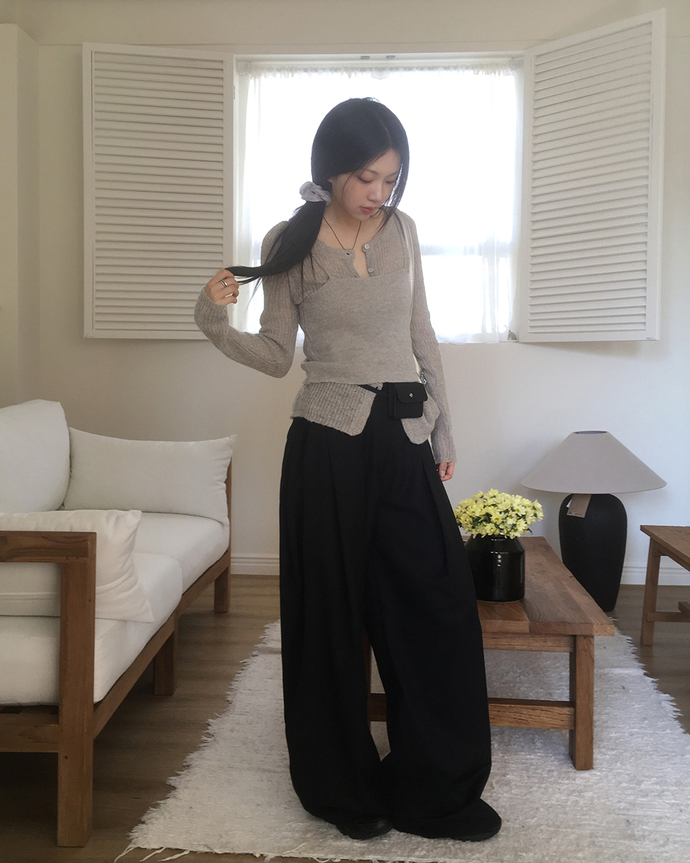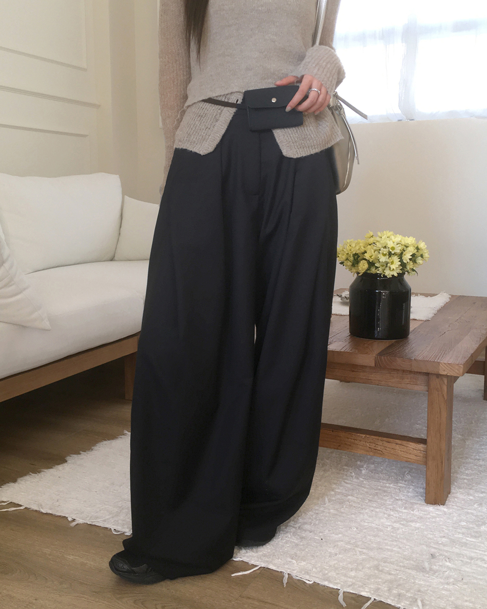 [original]ダブルタック入りワイドスラックス