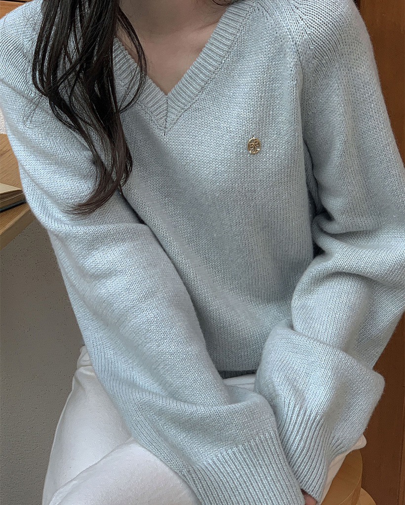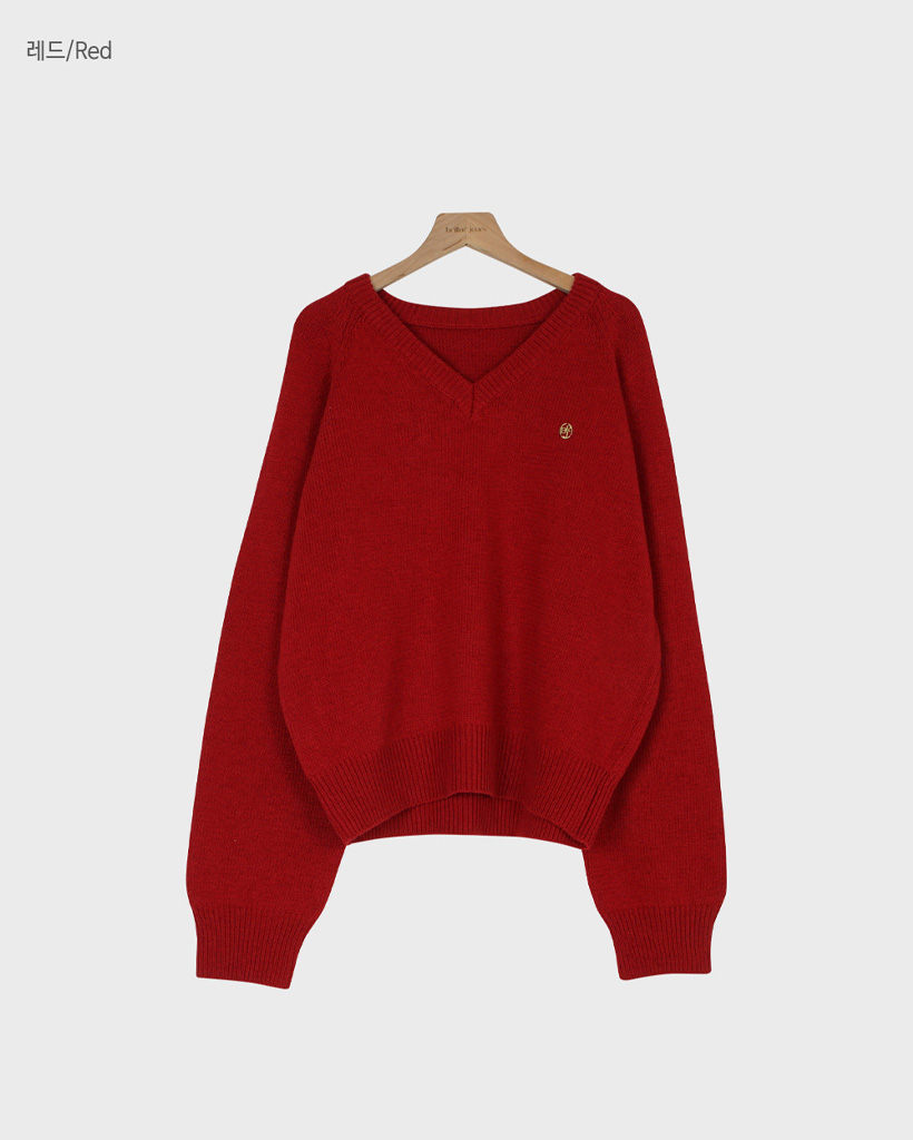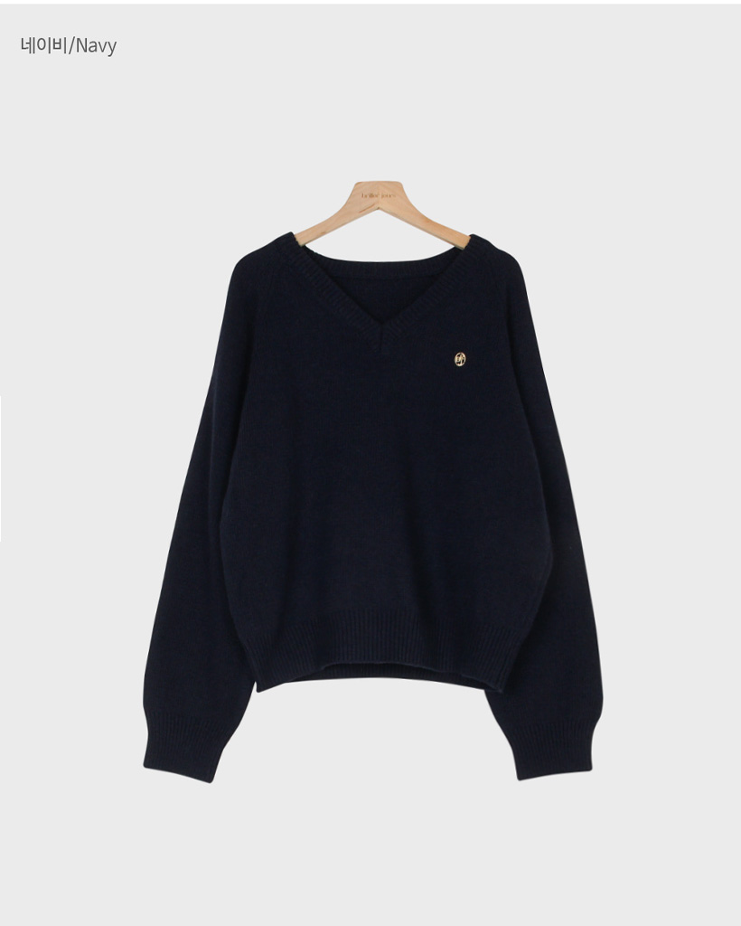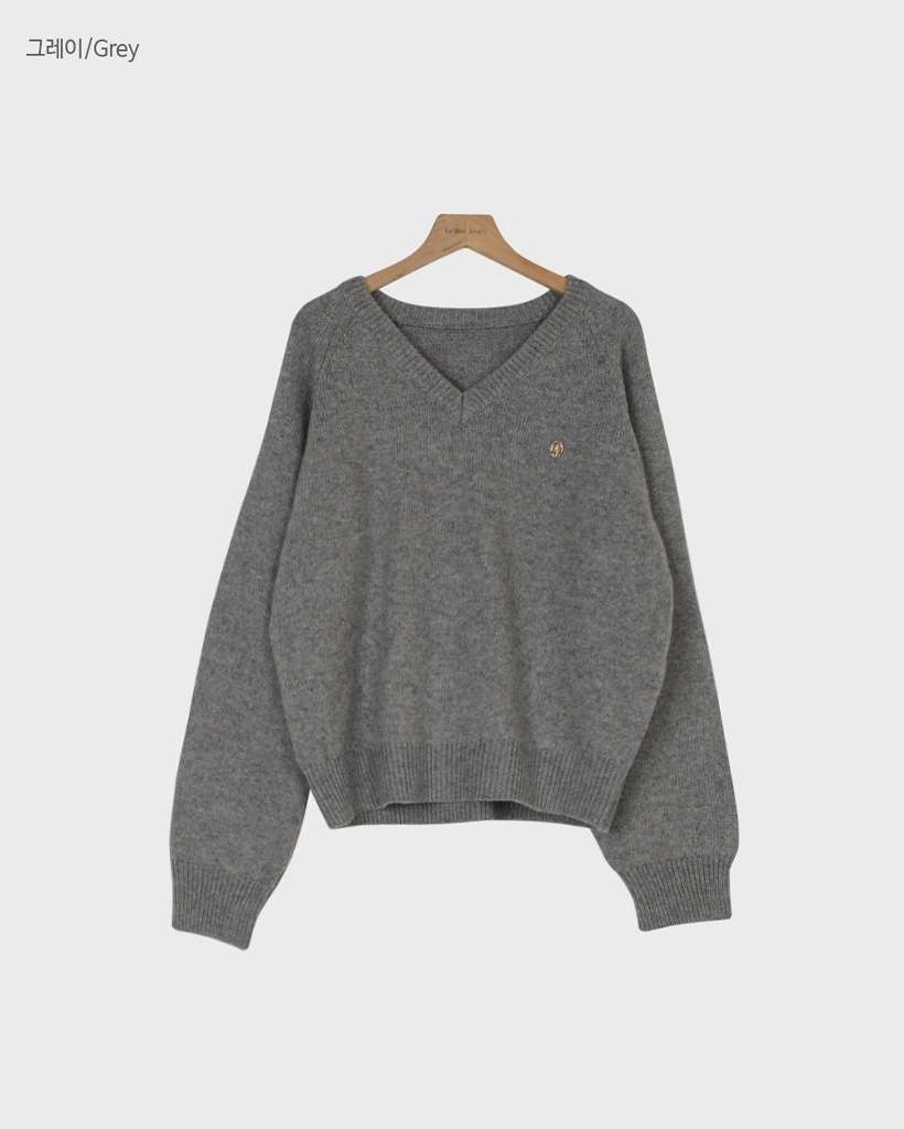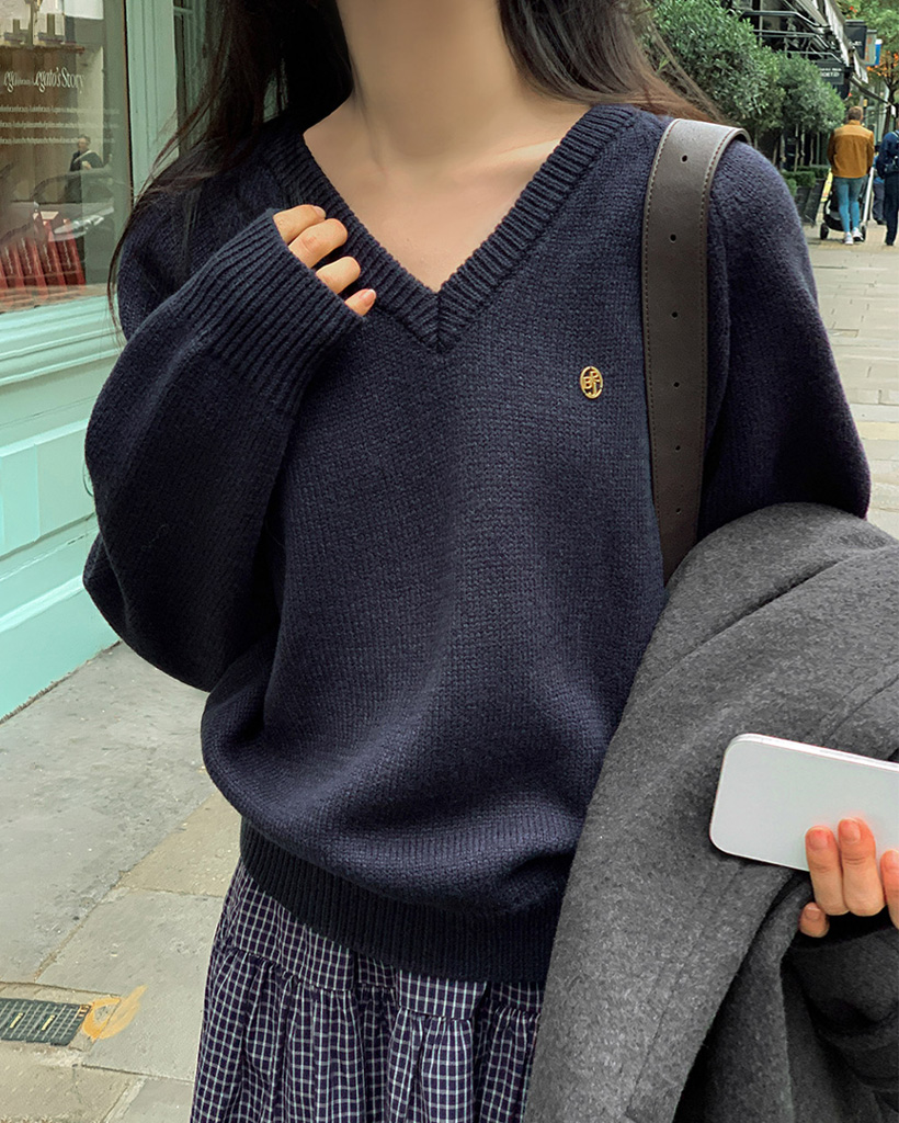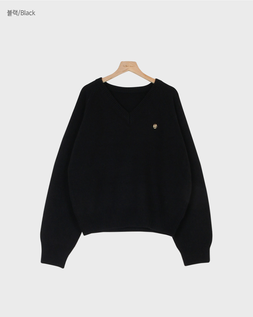 [original] プレミアムウールエンブレムVネックオーバーサイズニット(S-L)