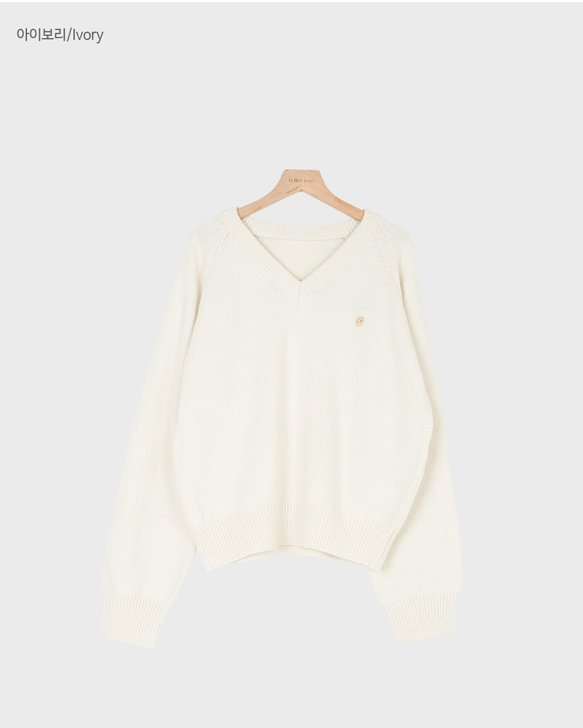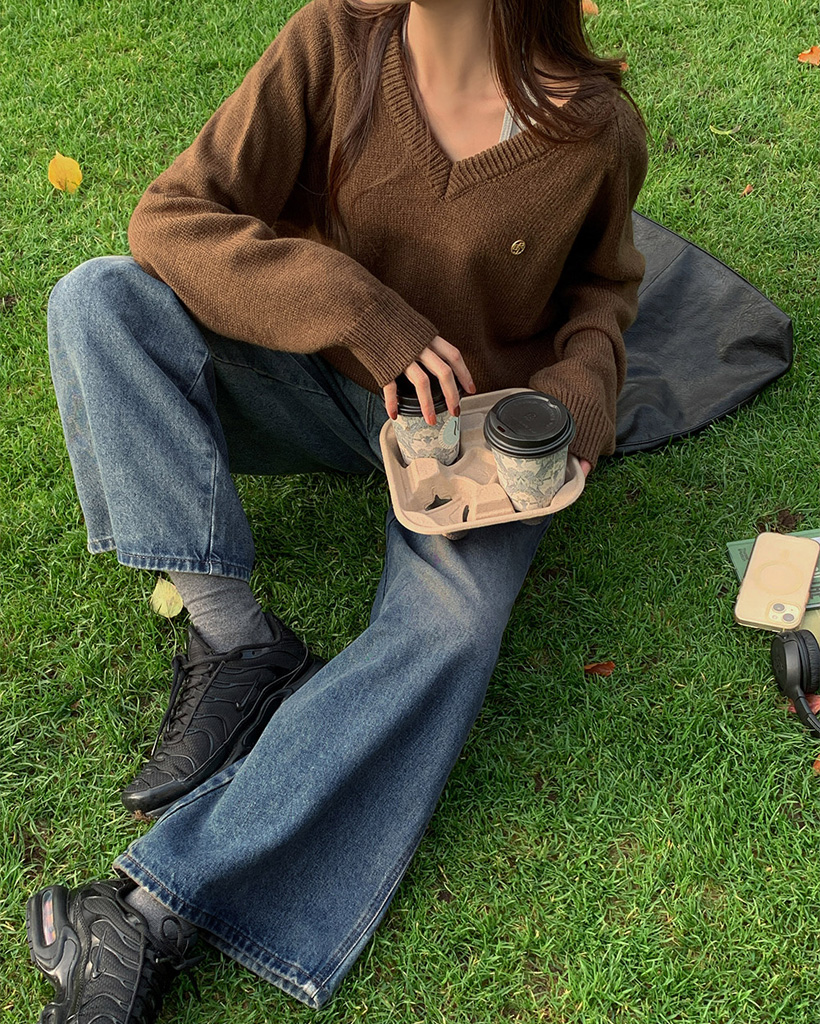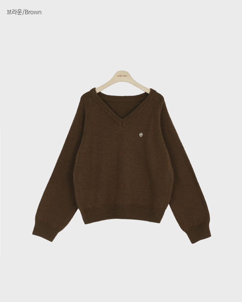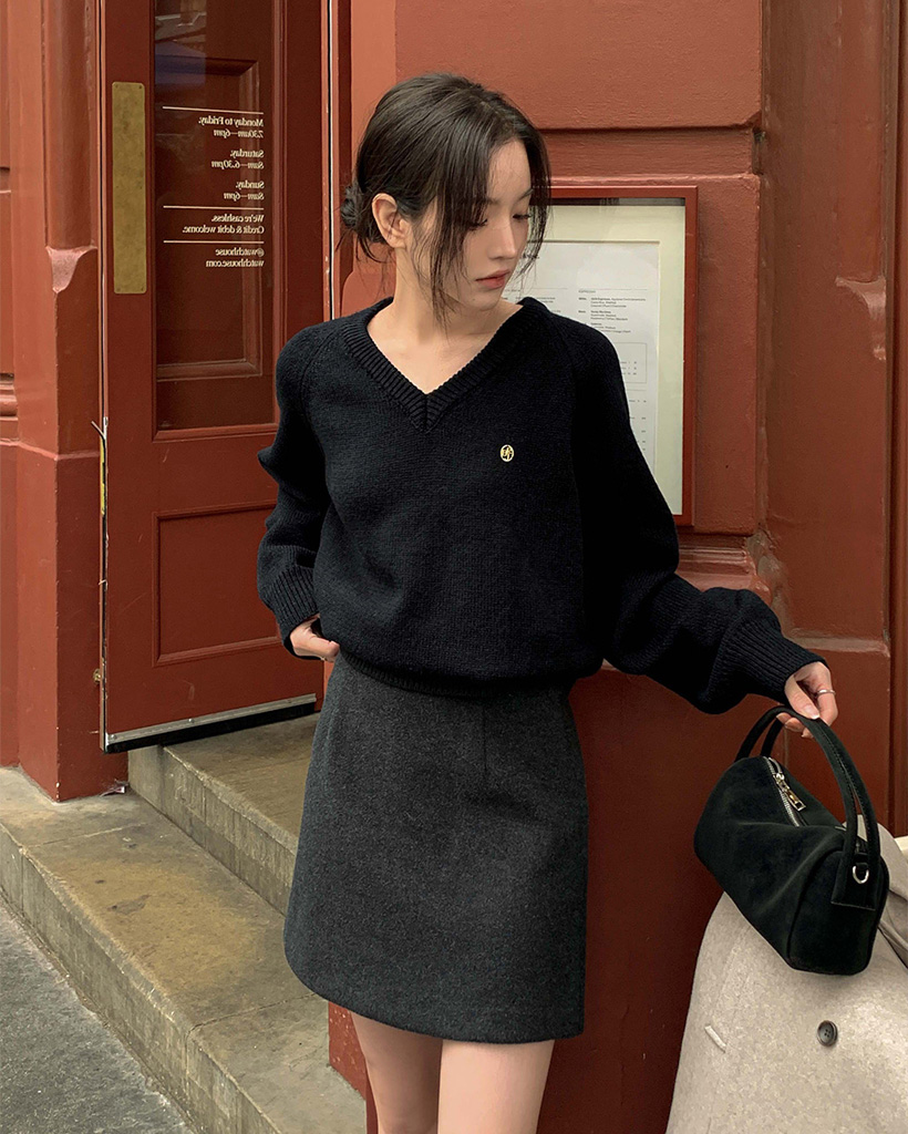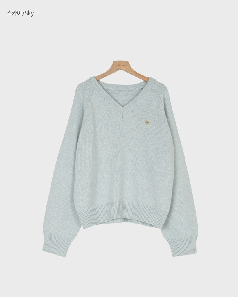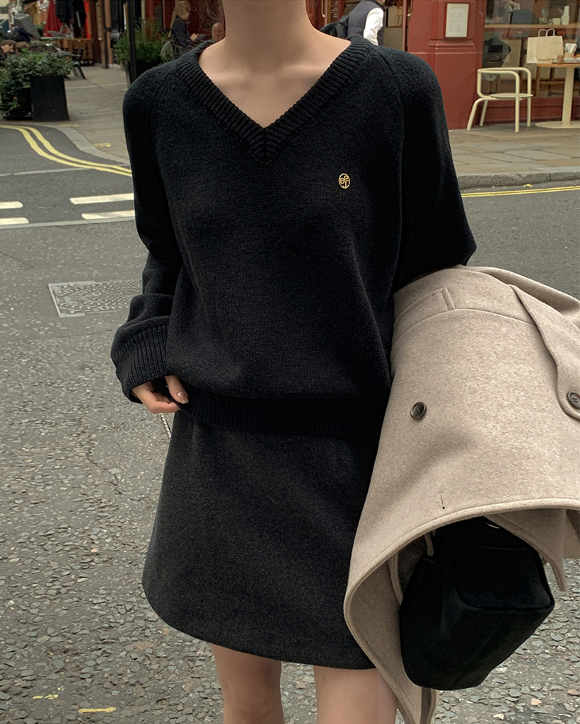 [original] プレミアムウールエンブレムVネックオーバーサイズニット(S-L)