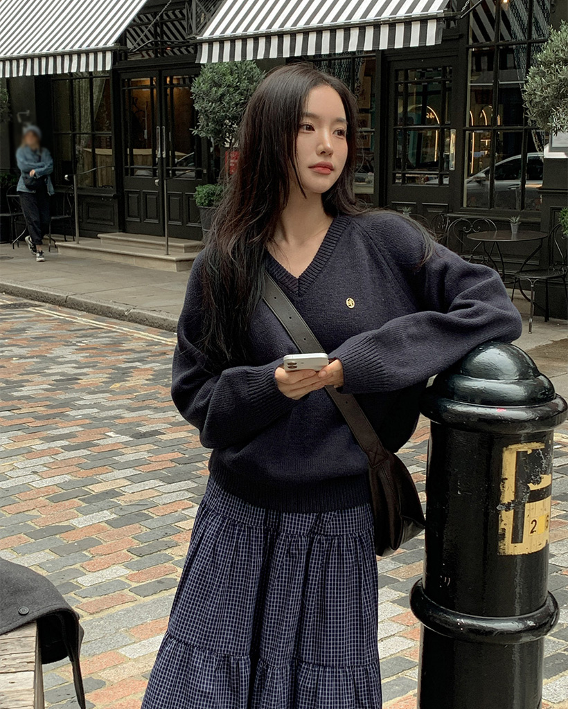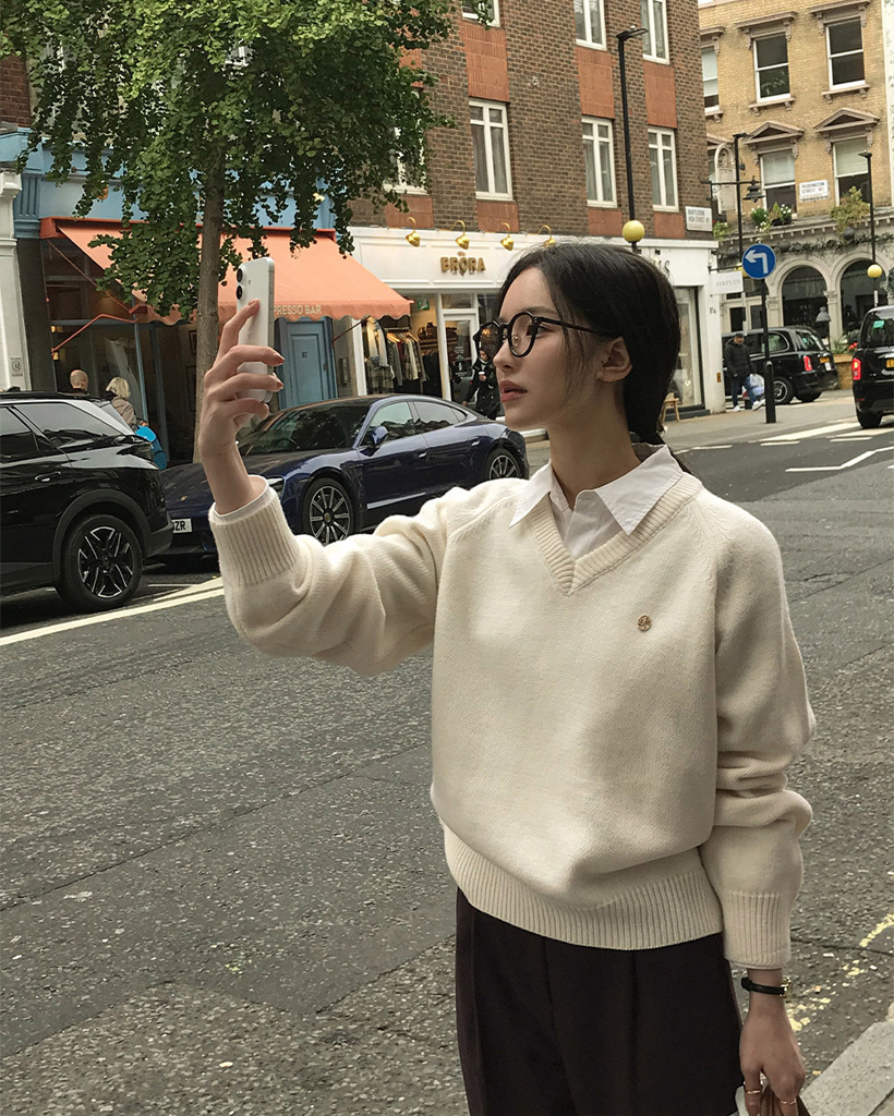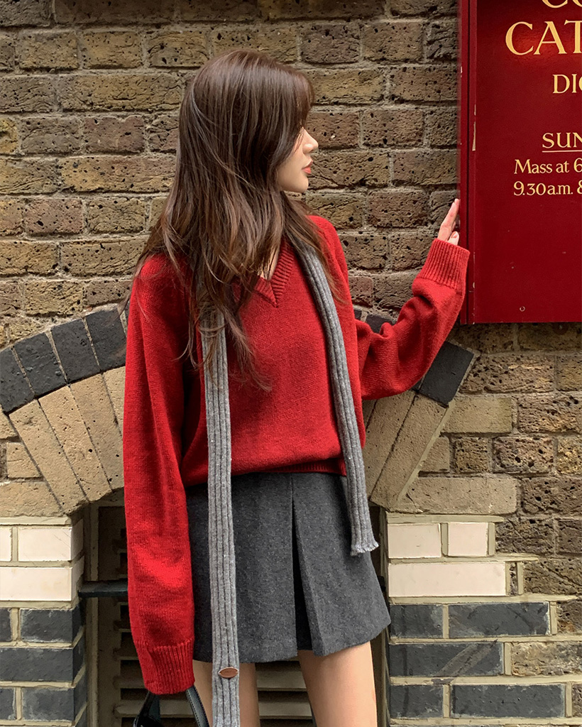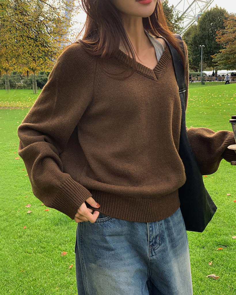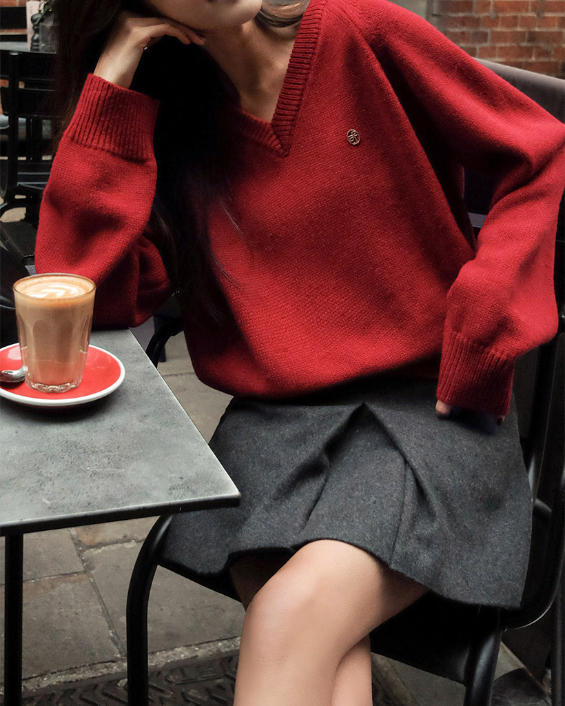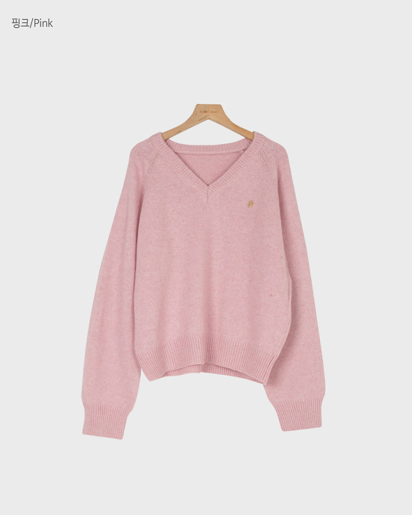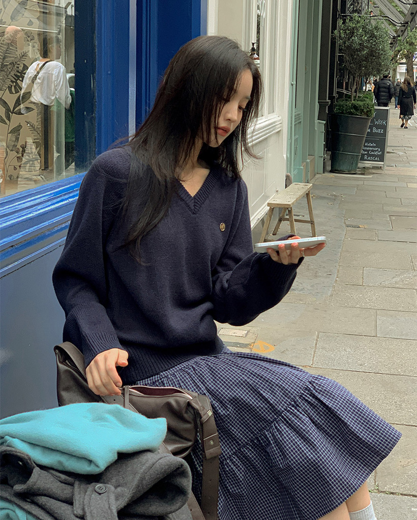 [original] プレミアムウールエンブレムVネックオーバーサイズニット(S-L)