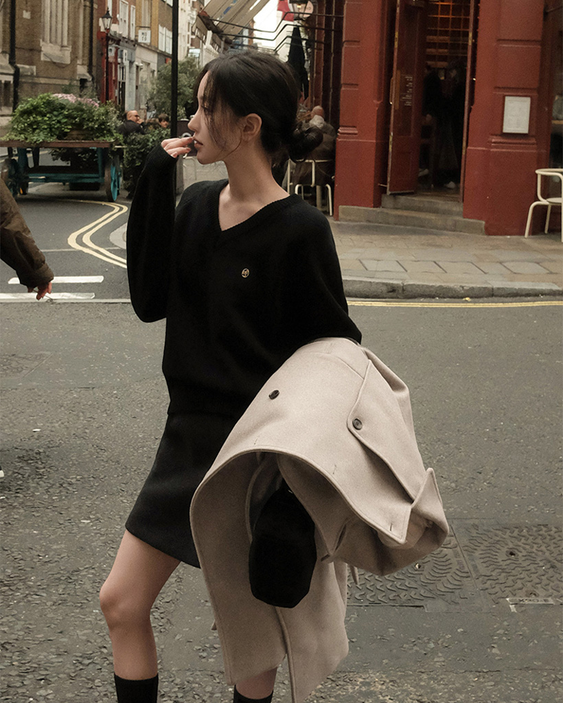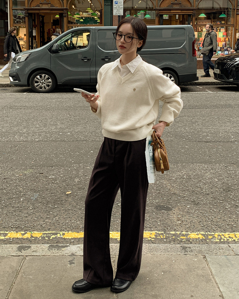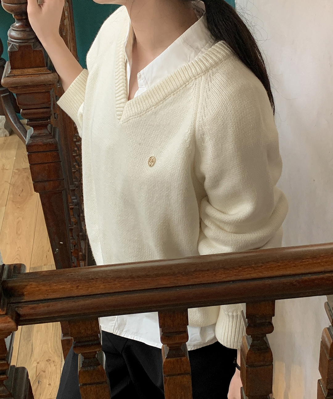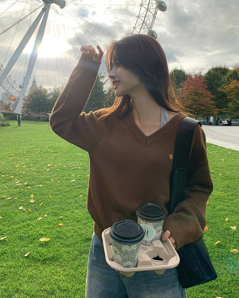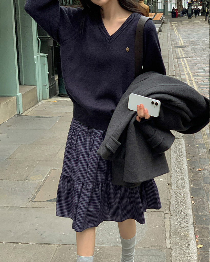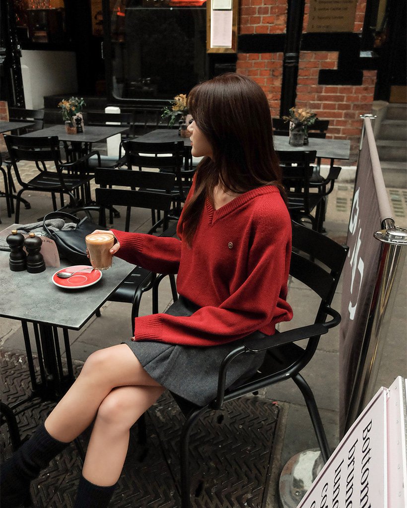 [original] プレミアムウールエンブレムVネックオーバーサイズニット(S-L)