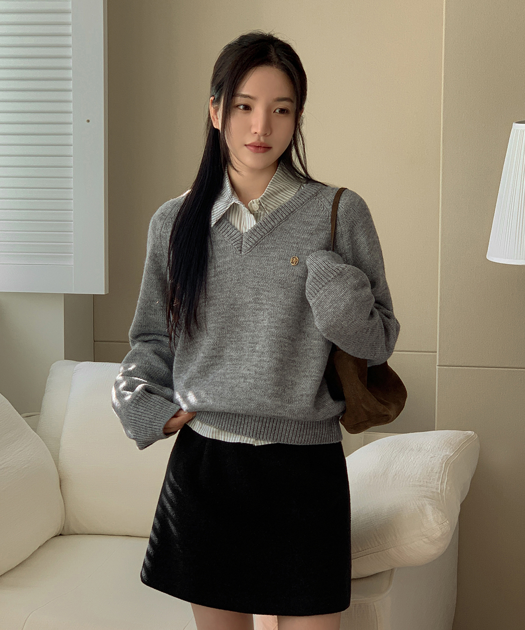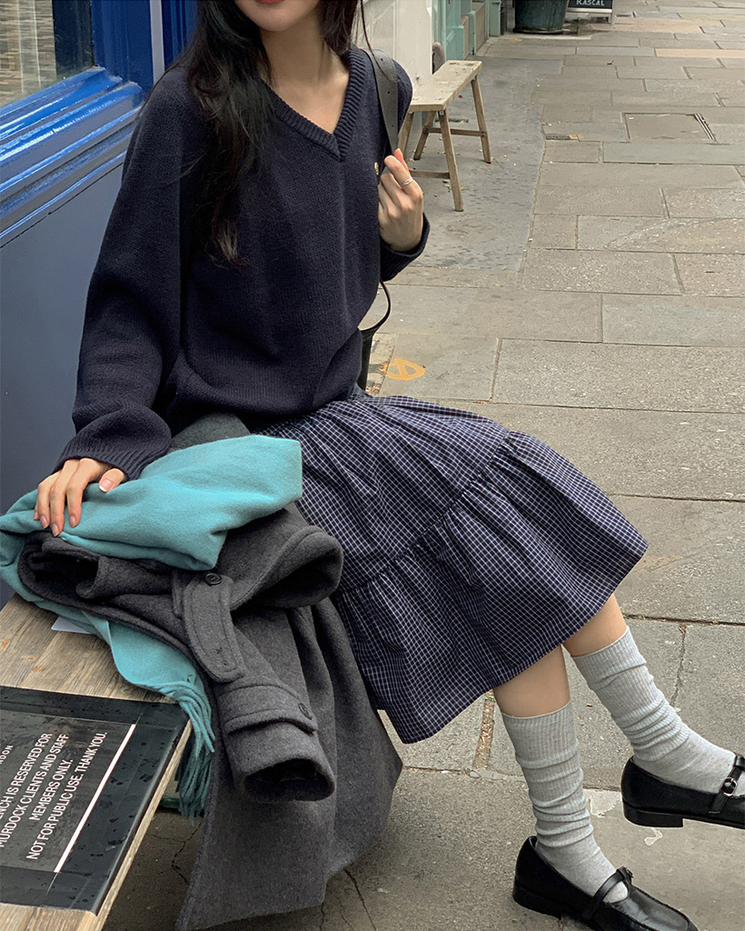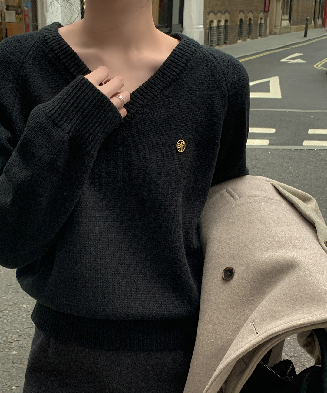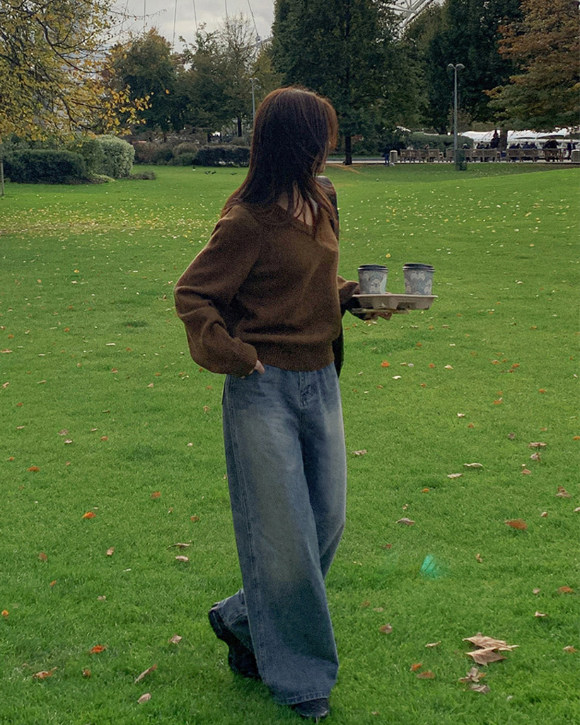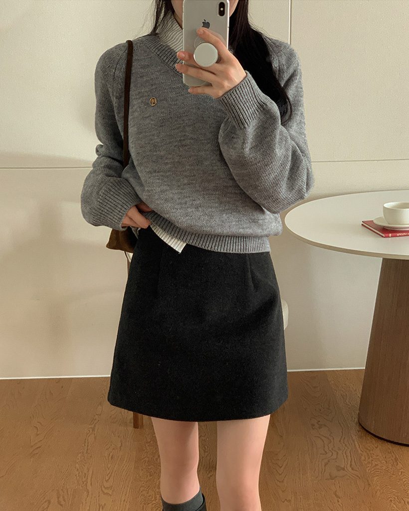 [original] プレミアムウールエンブレムVネックオーバーサイズニット(S-L)