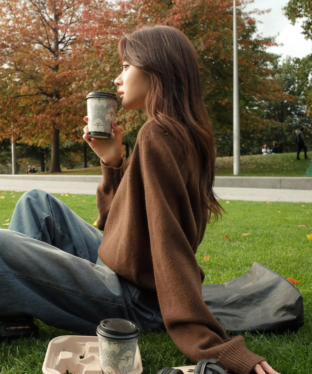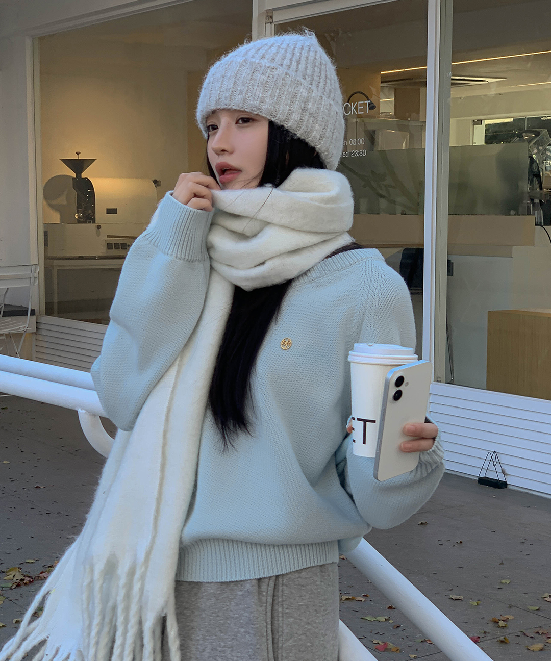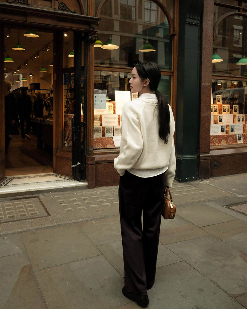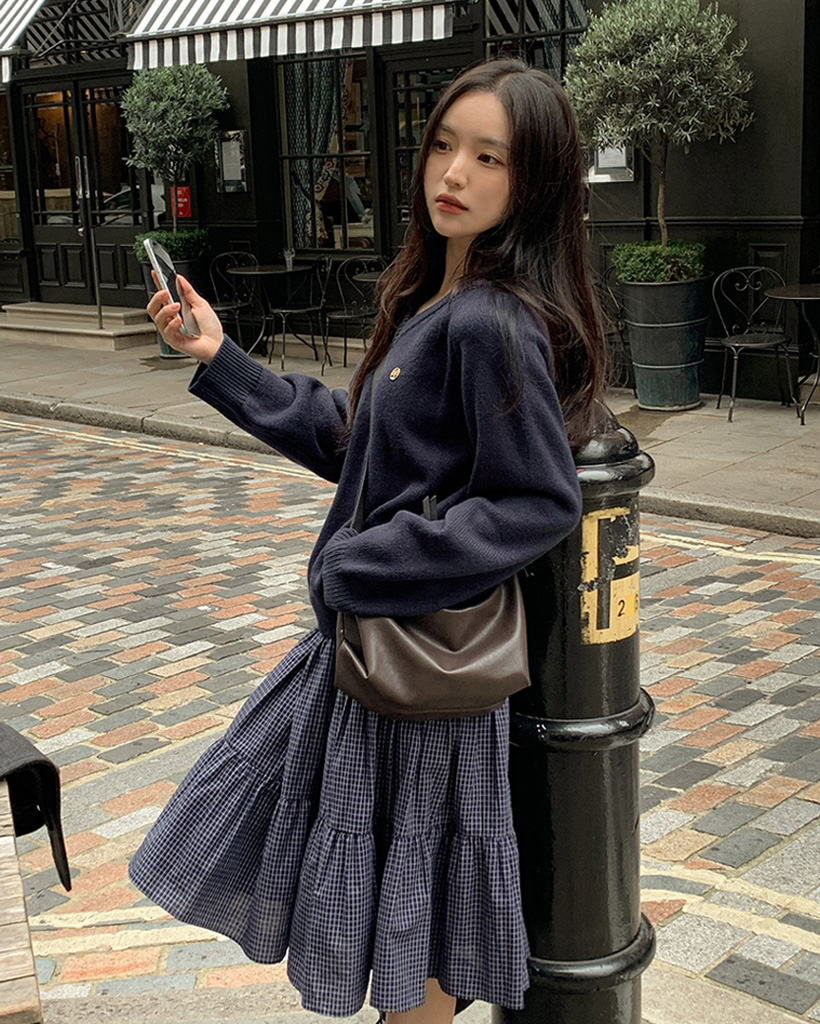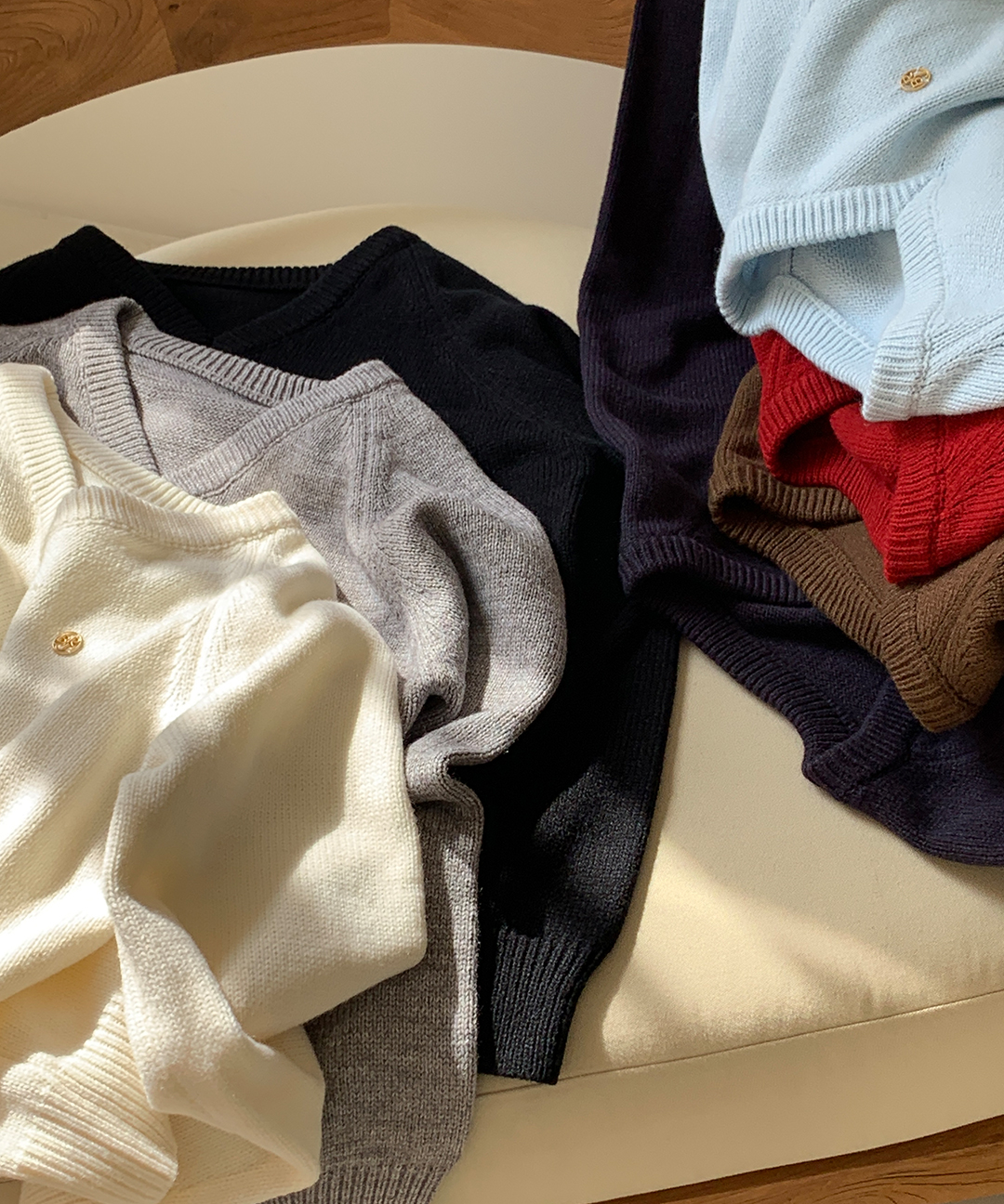 [original] プレミアムウールエンブレムVネックオーバーサイズニット(S-L)