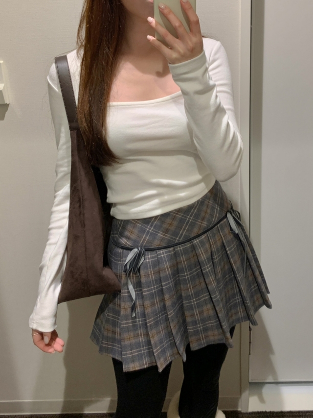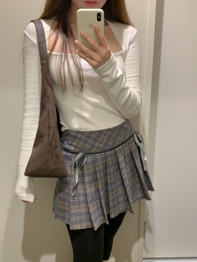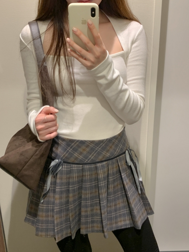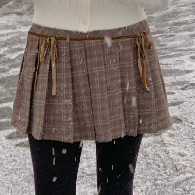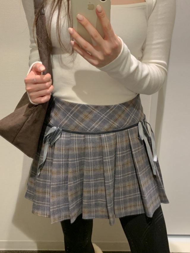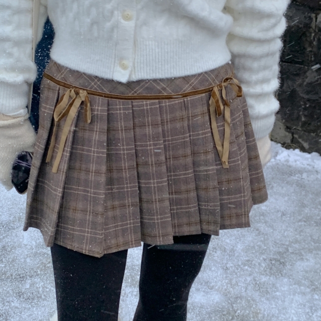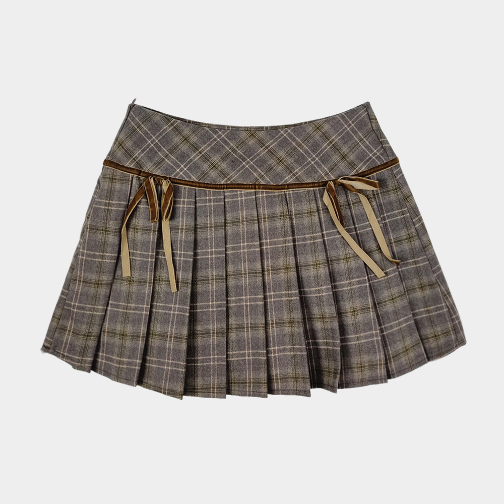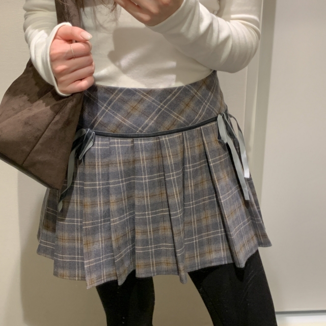 チェックリボンプリーツスカートミニスカート