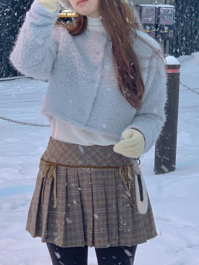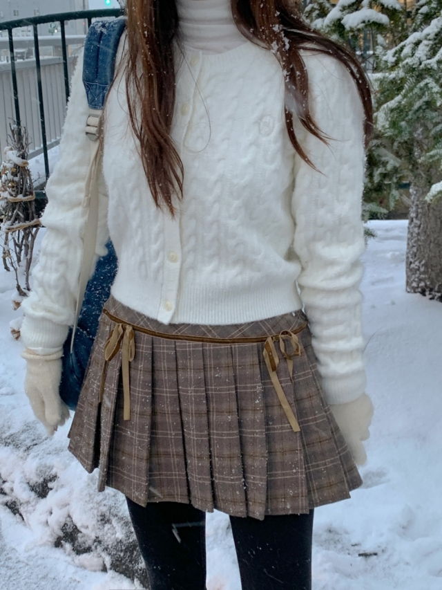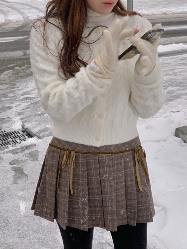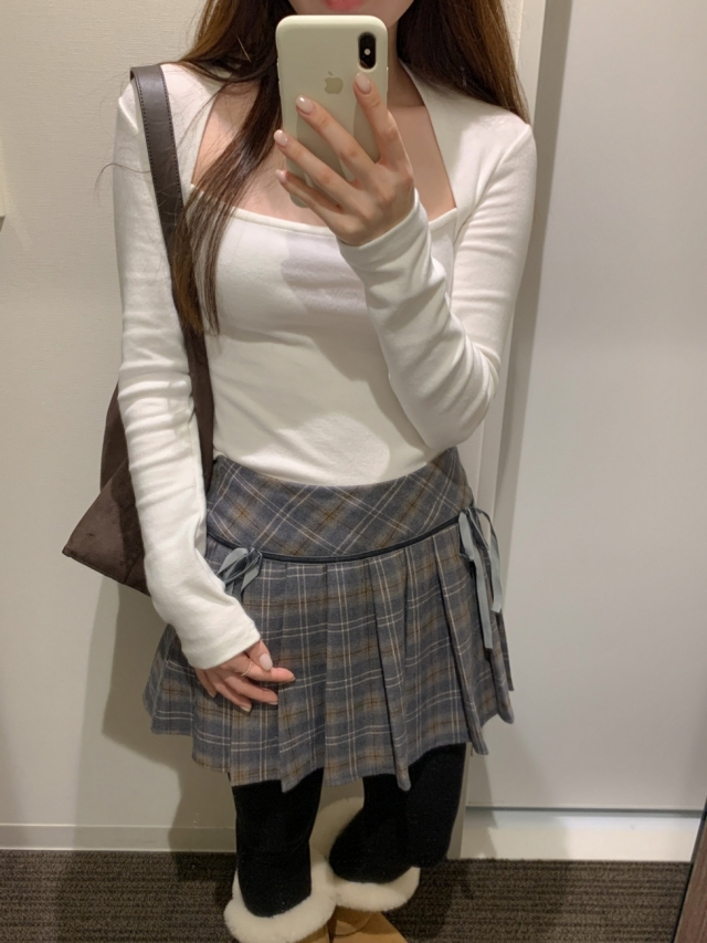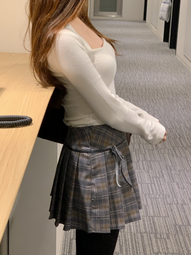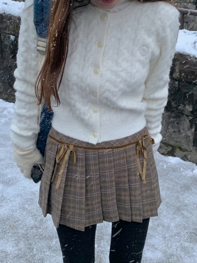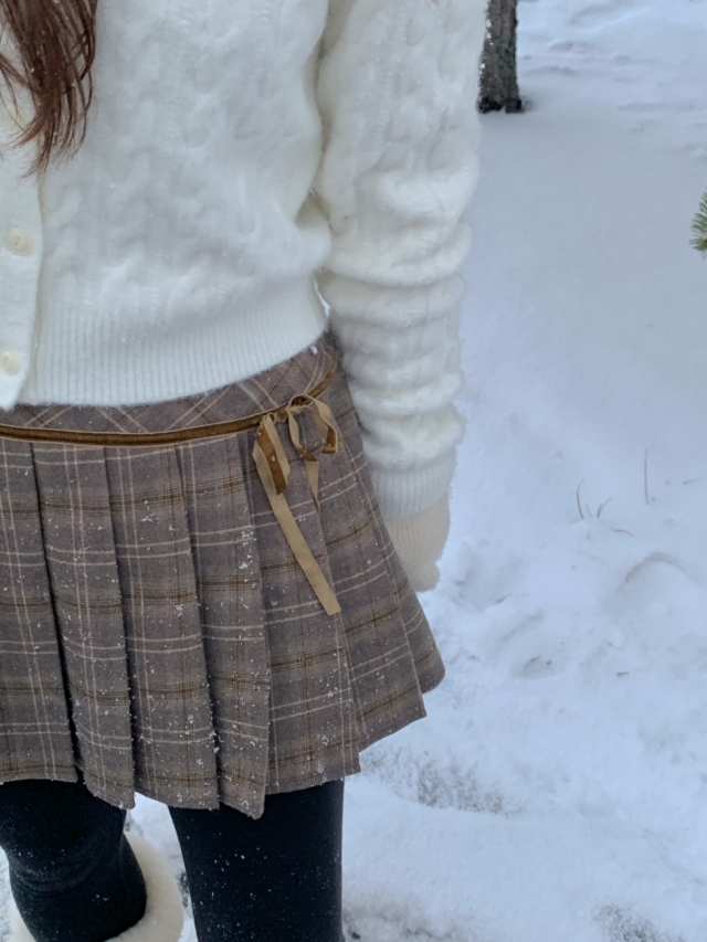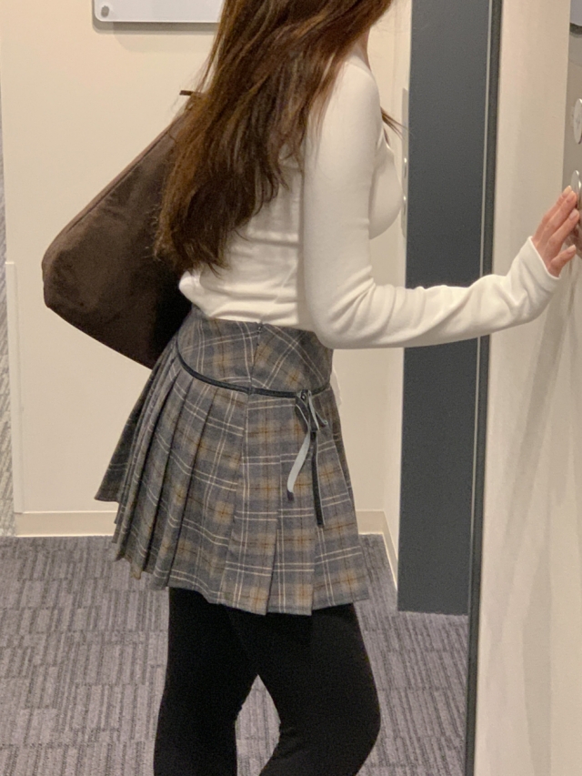 チェックリボンプリーツスカートミニスカート