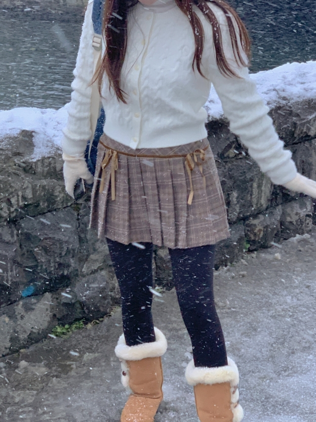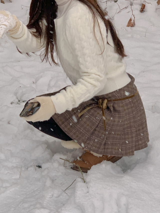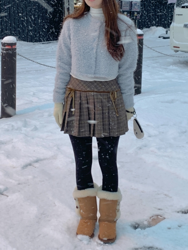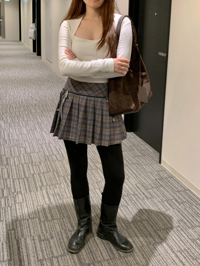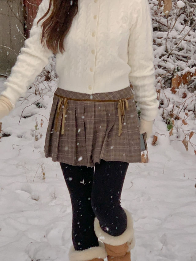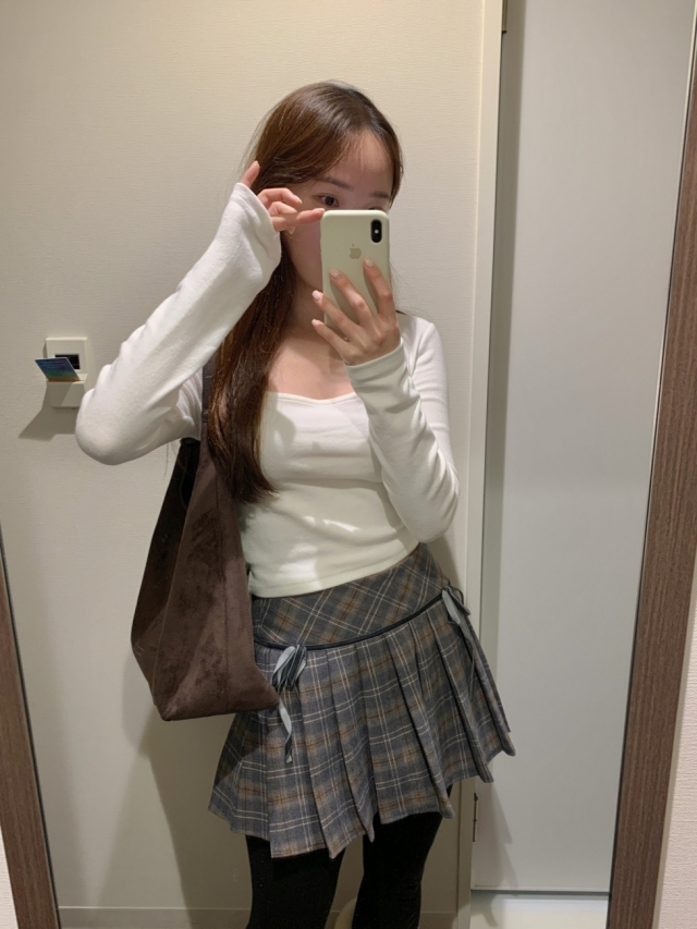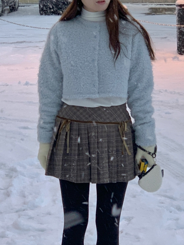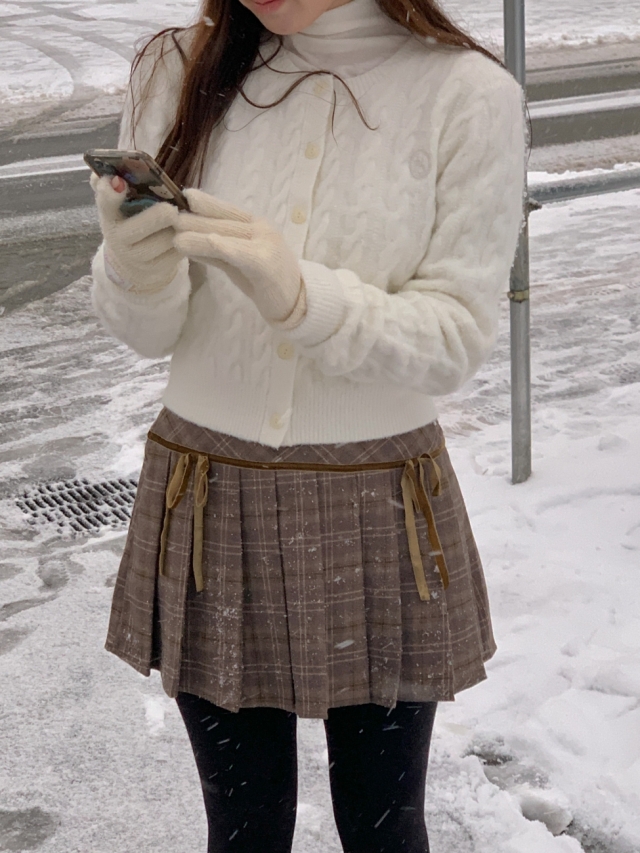 チェックリボンプリーツスカートミニスカート