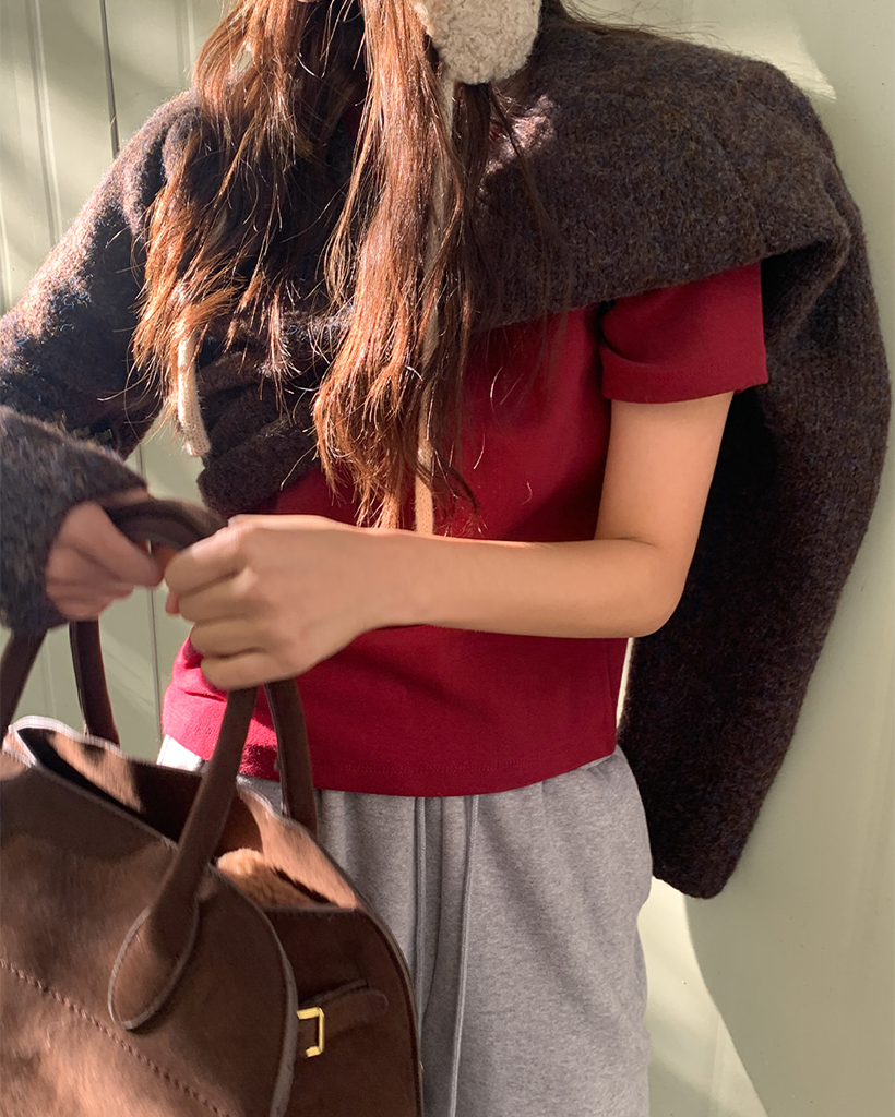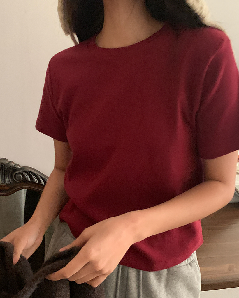 ピーチ裏起毛ベーシック半袖Tシャツ