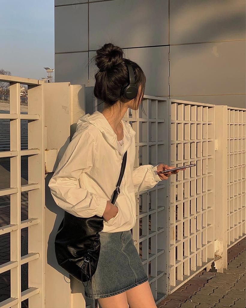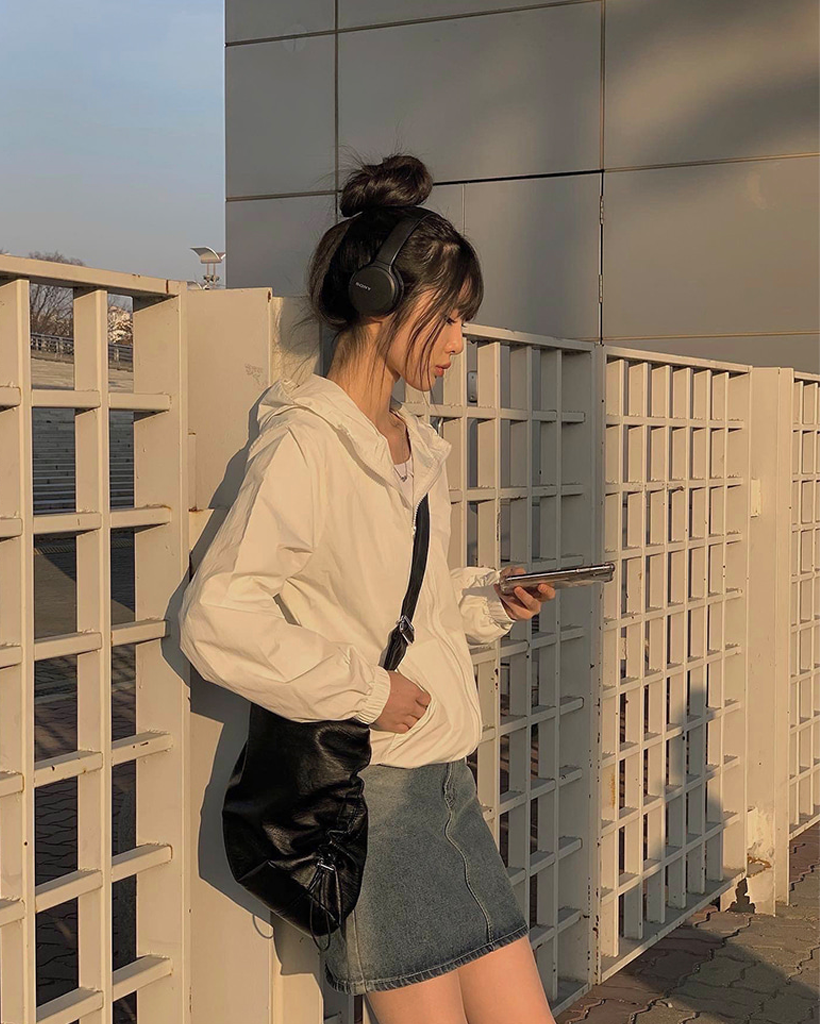 カンガルーポケットナイロンフードウインドブレーカー(3color)