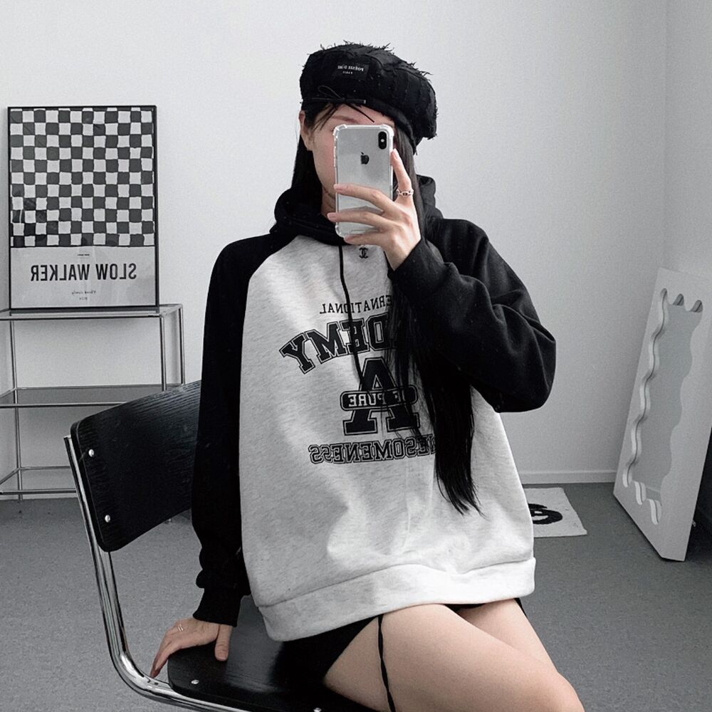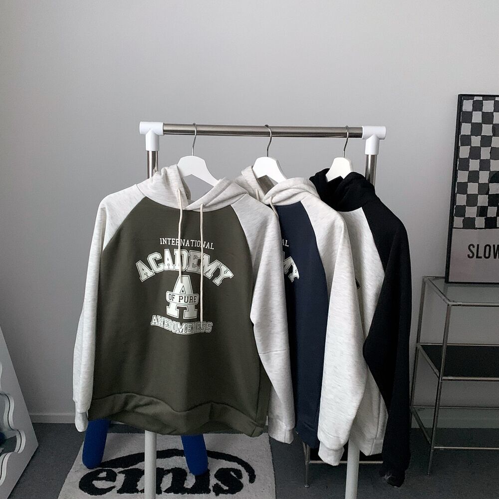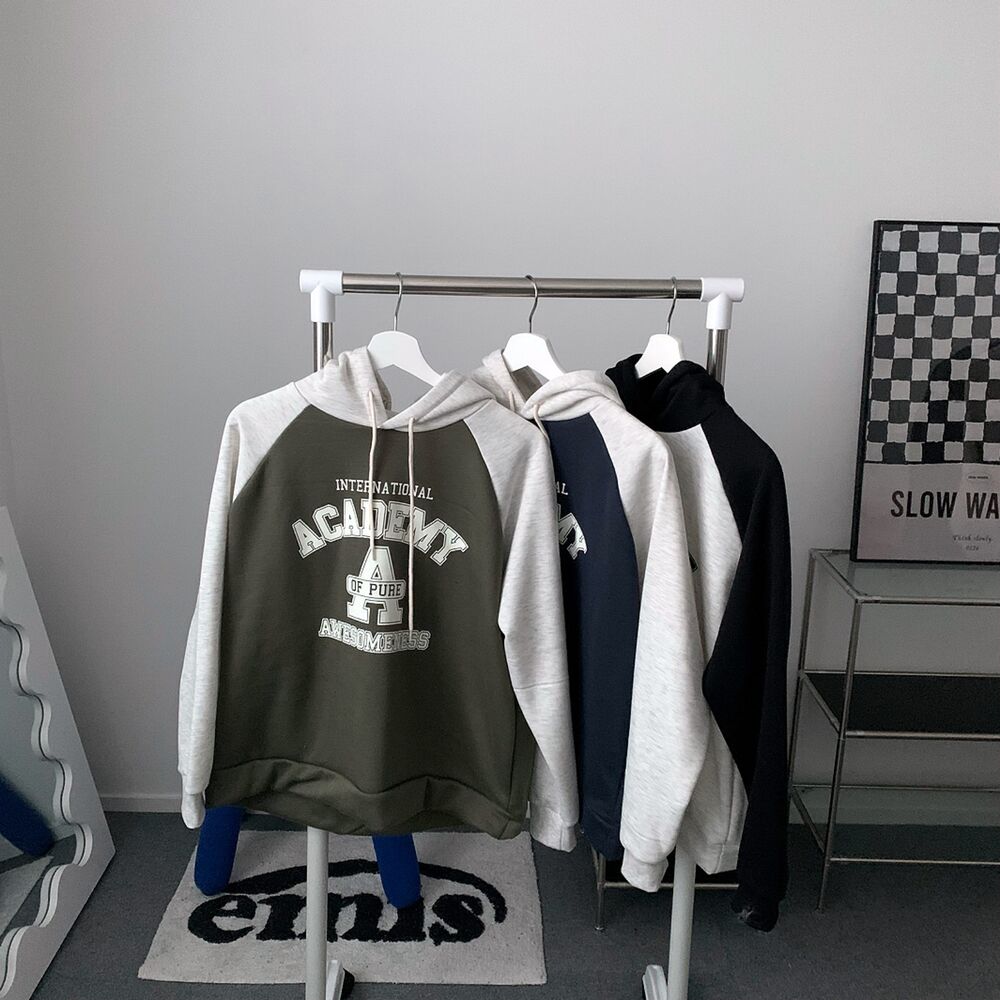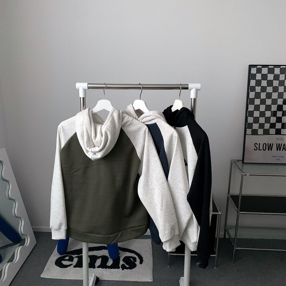 [裏起毛] バイカラーラグランフードパーカー(3color)