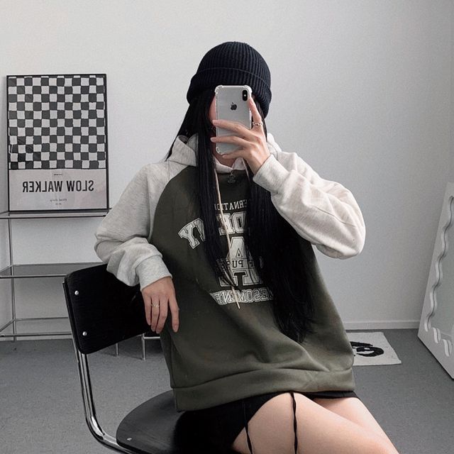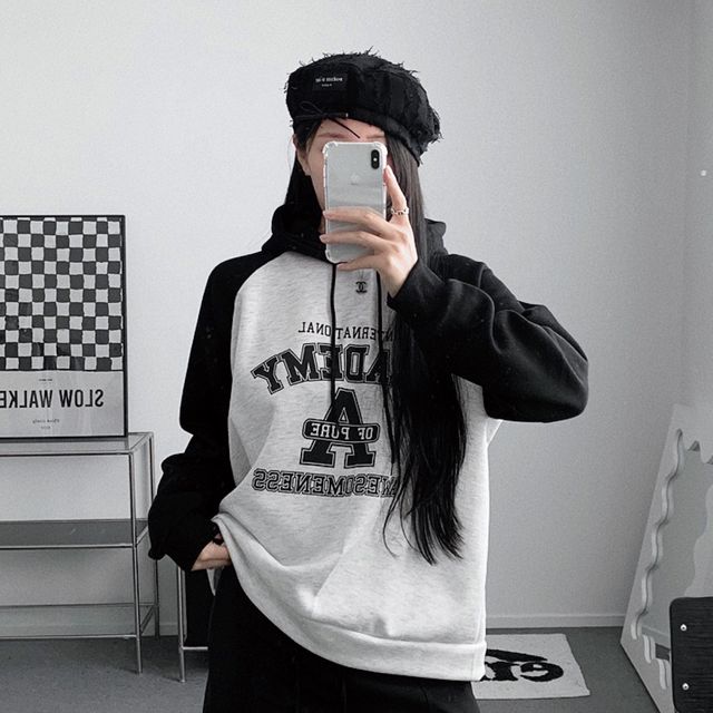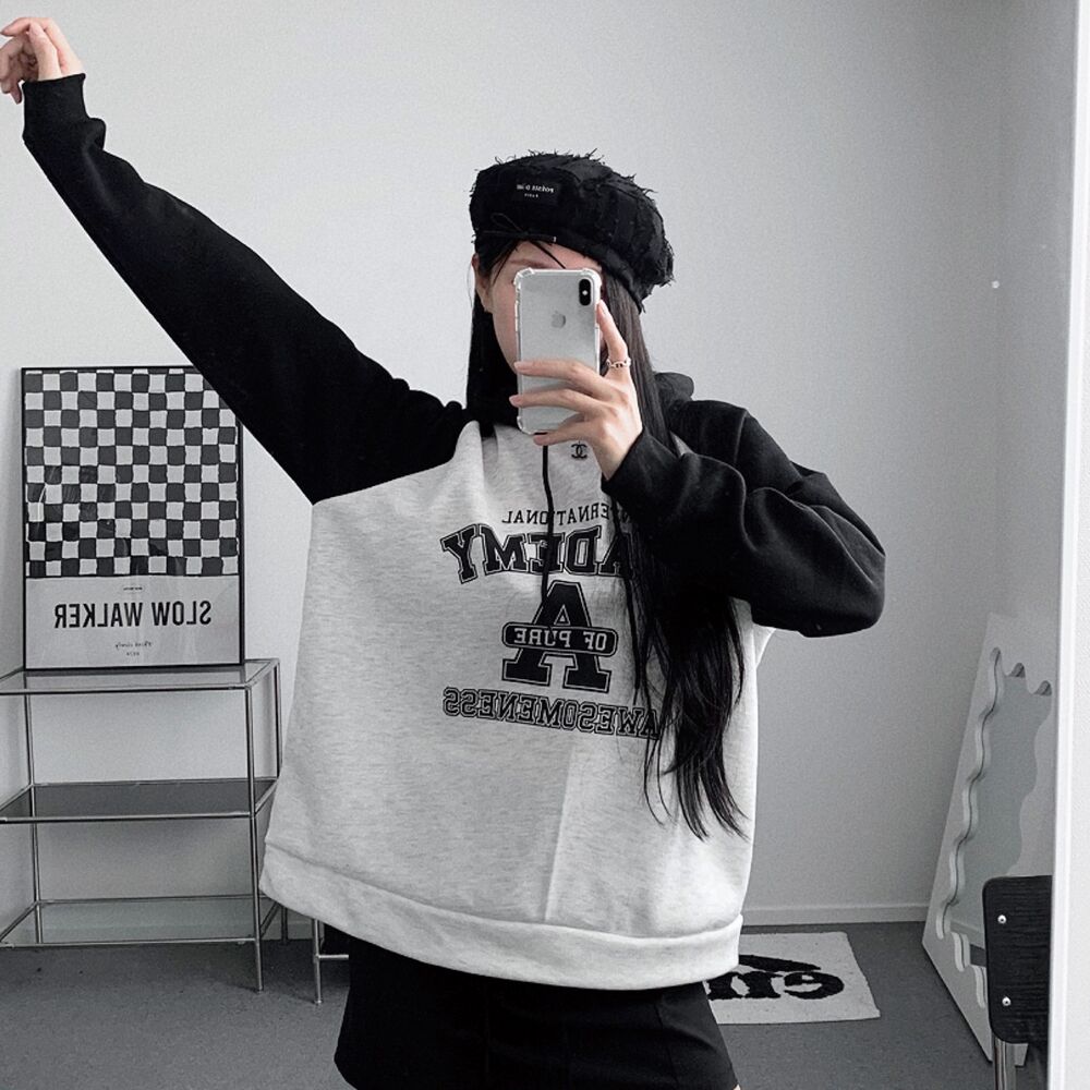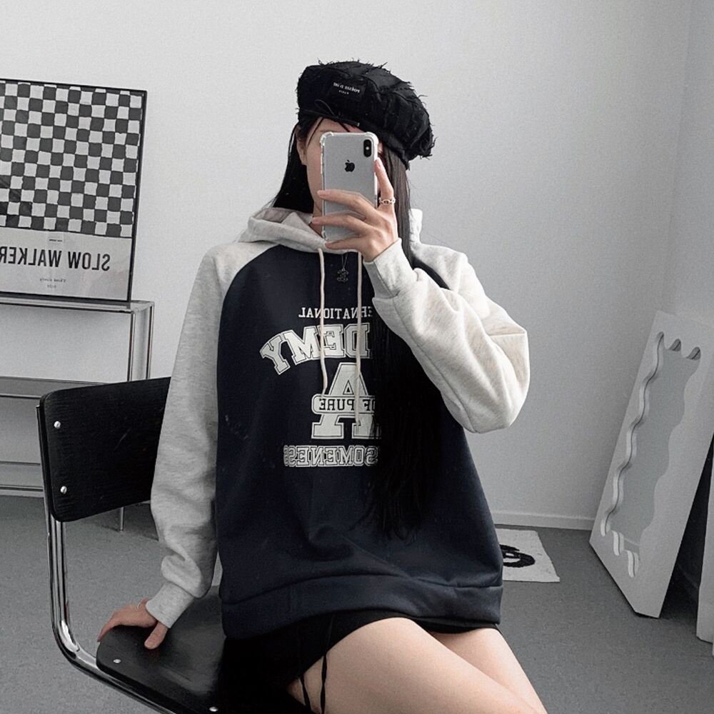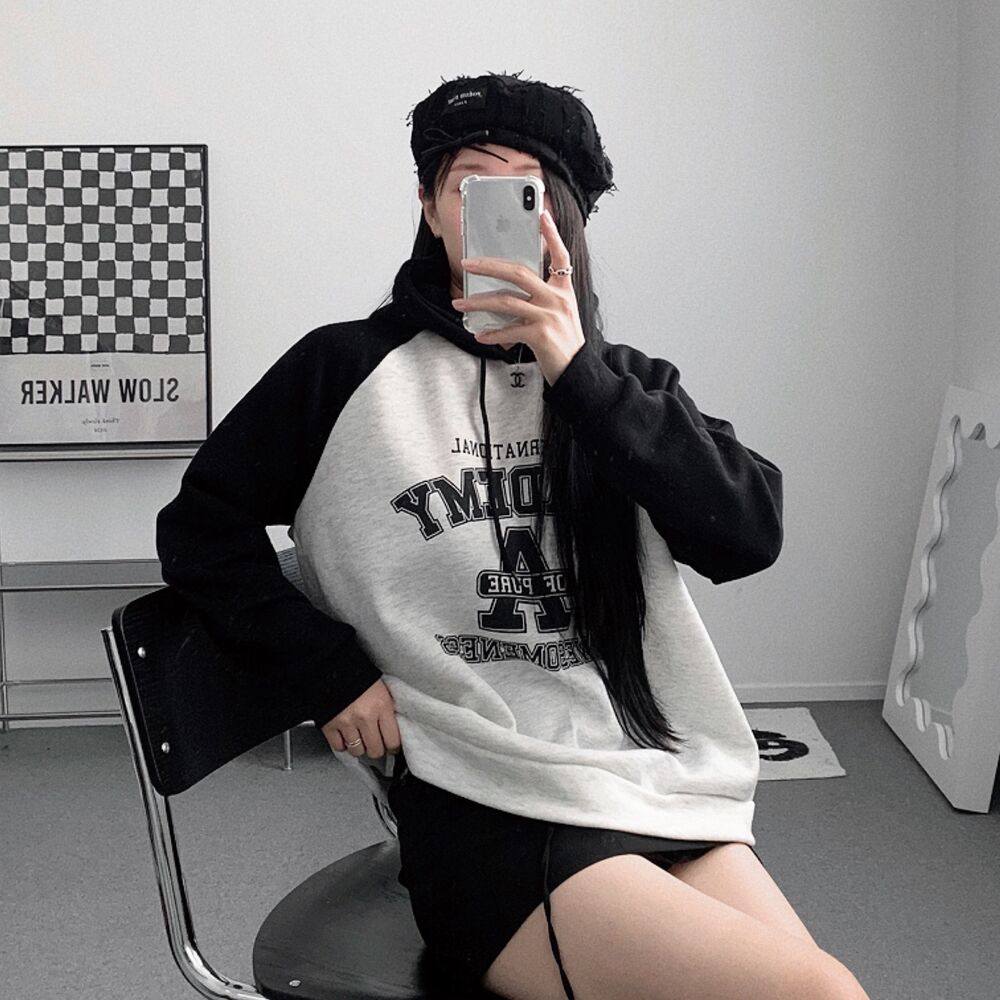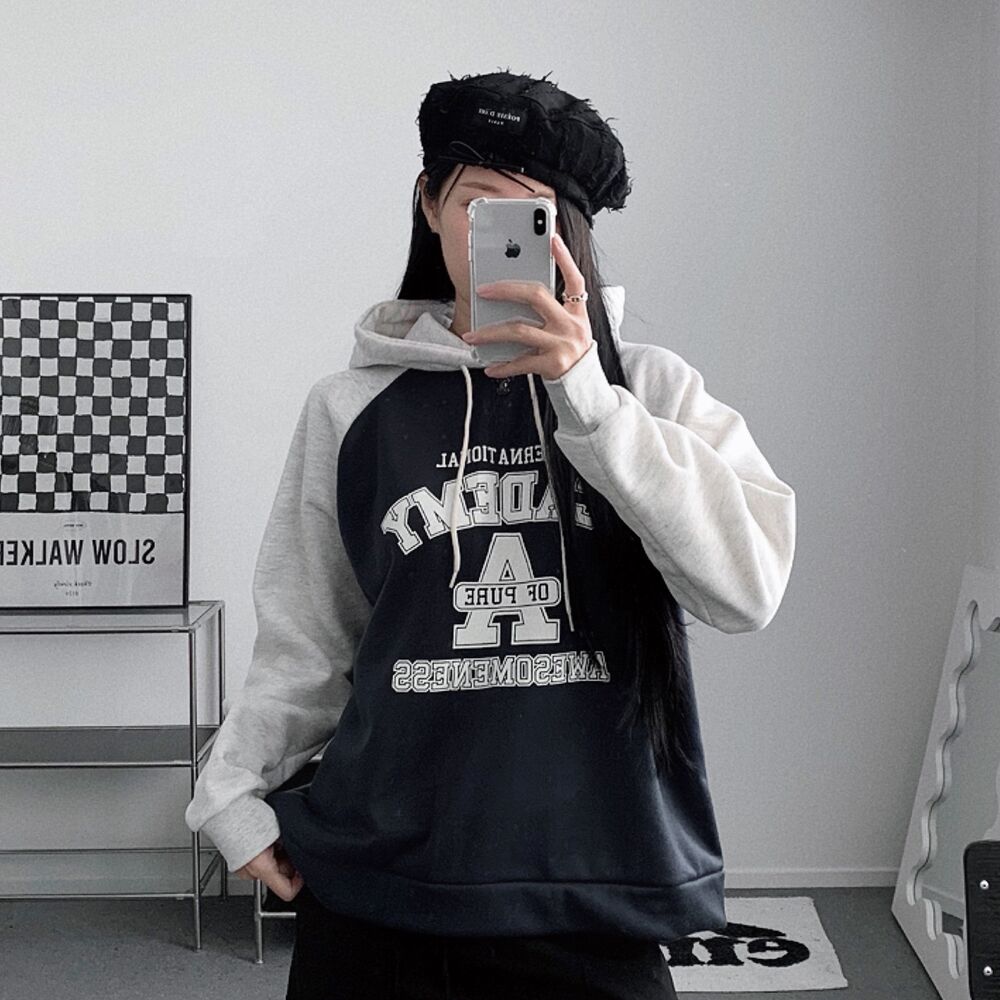 [裏起毛] バイカラーラグランフードパーカー(3color)