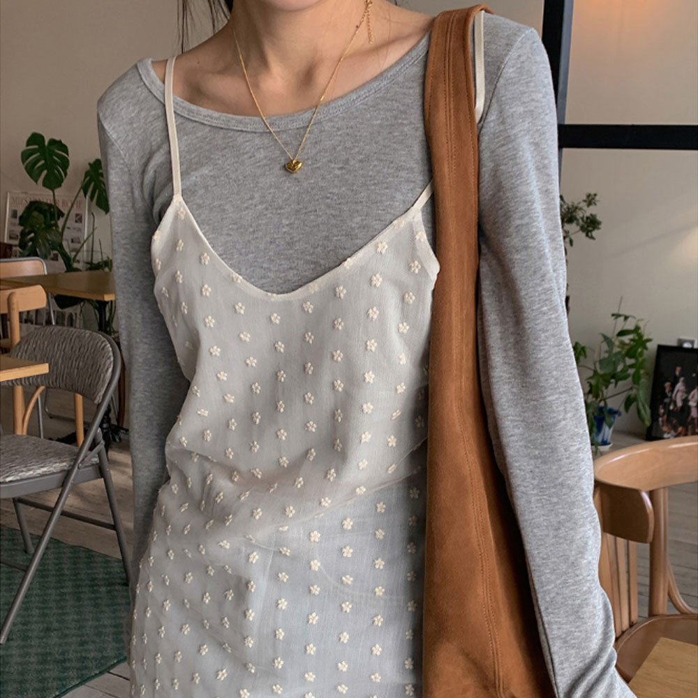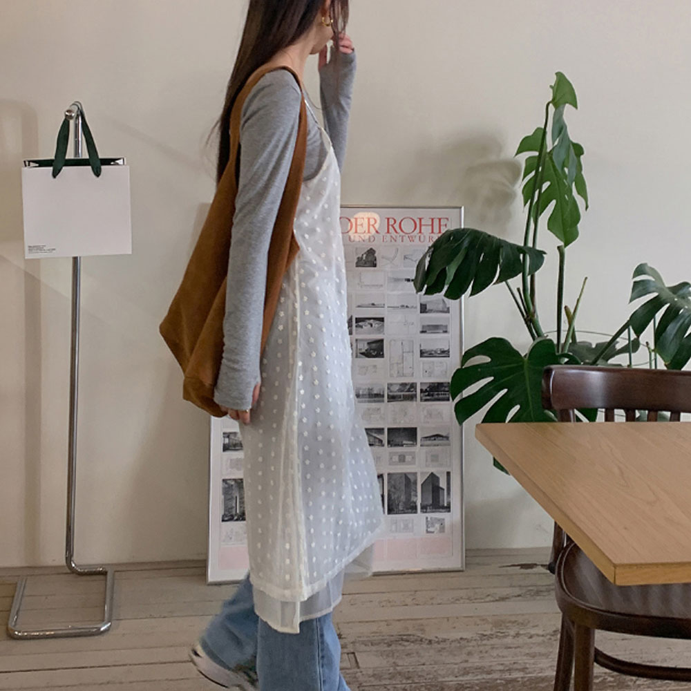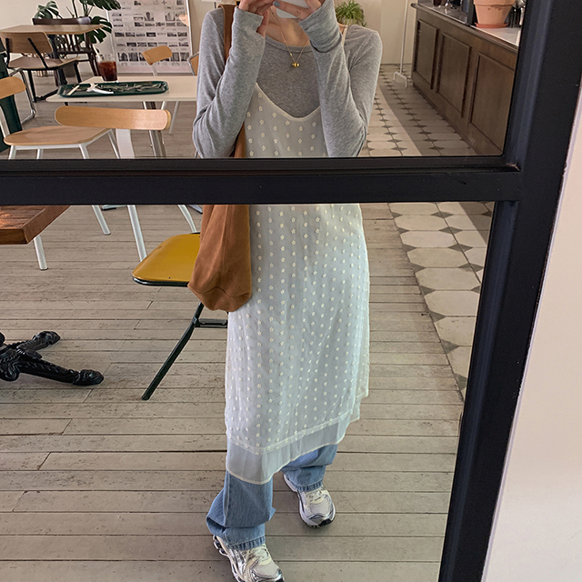 レースビスチェレイヤードロングノースリーブワンピース(2color)