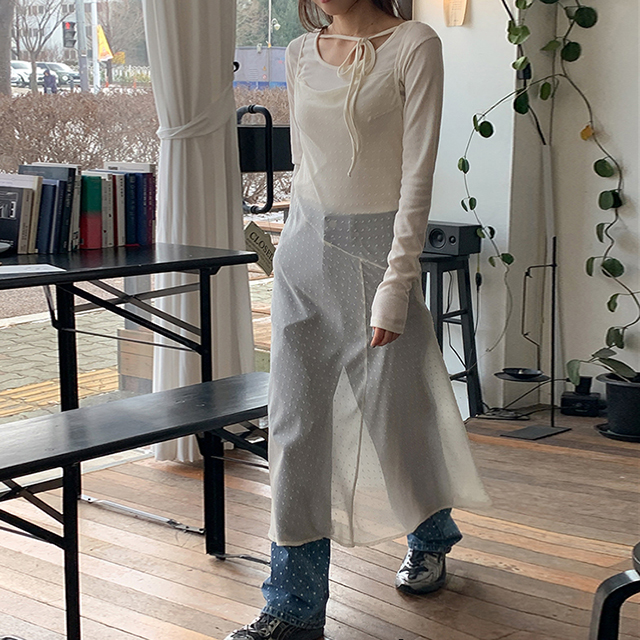 レースビスチェレイヤードノースリーブロングワンピース(2color)