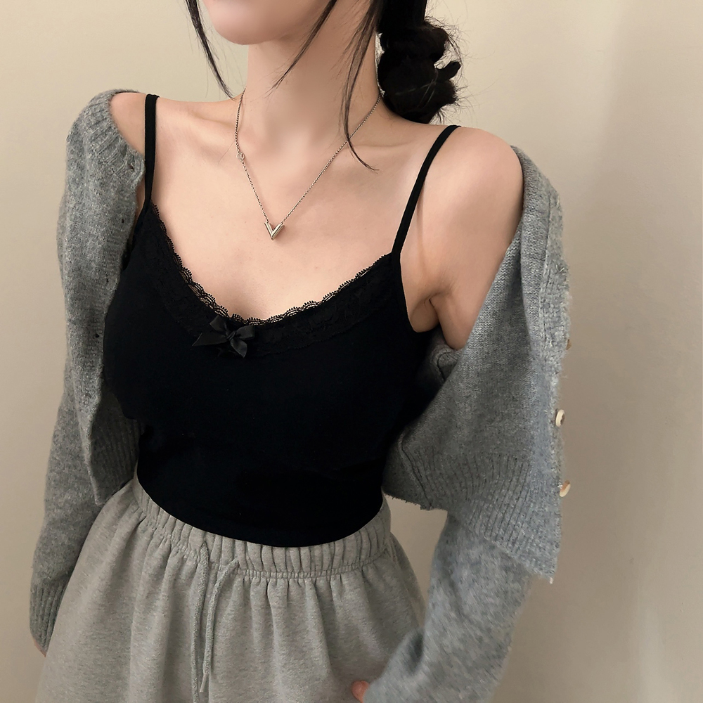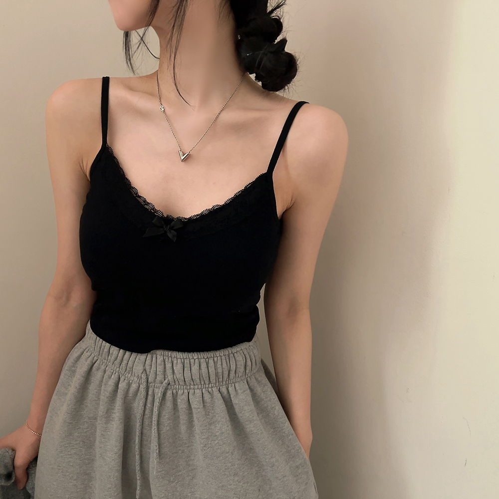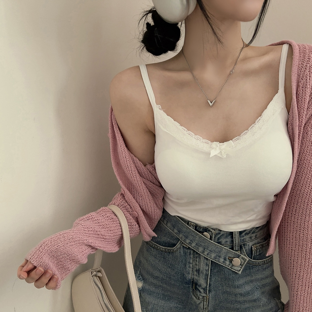 [カップ付き] レースリボンスリムクロップドノースリーブ