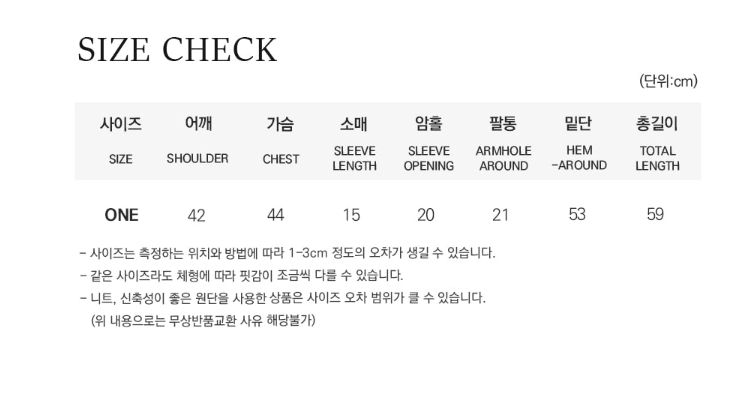 "サイズの測定方法によっては1~3cmほど誤差が生じる場合があります。