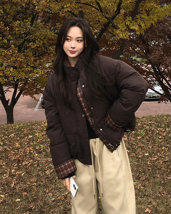 裏地チェック柄ダウンジャケット