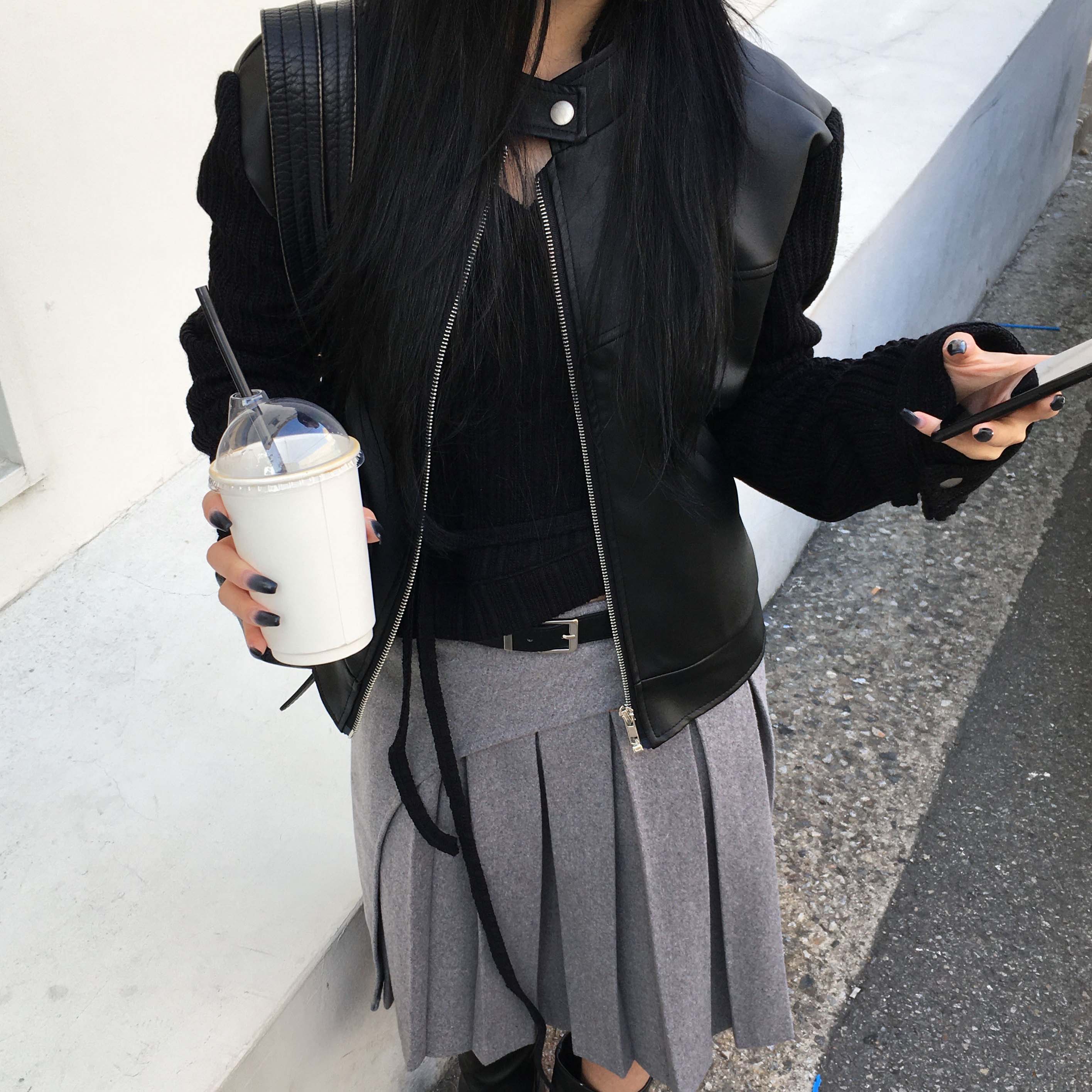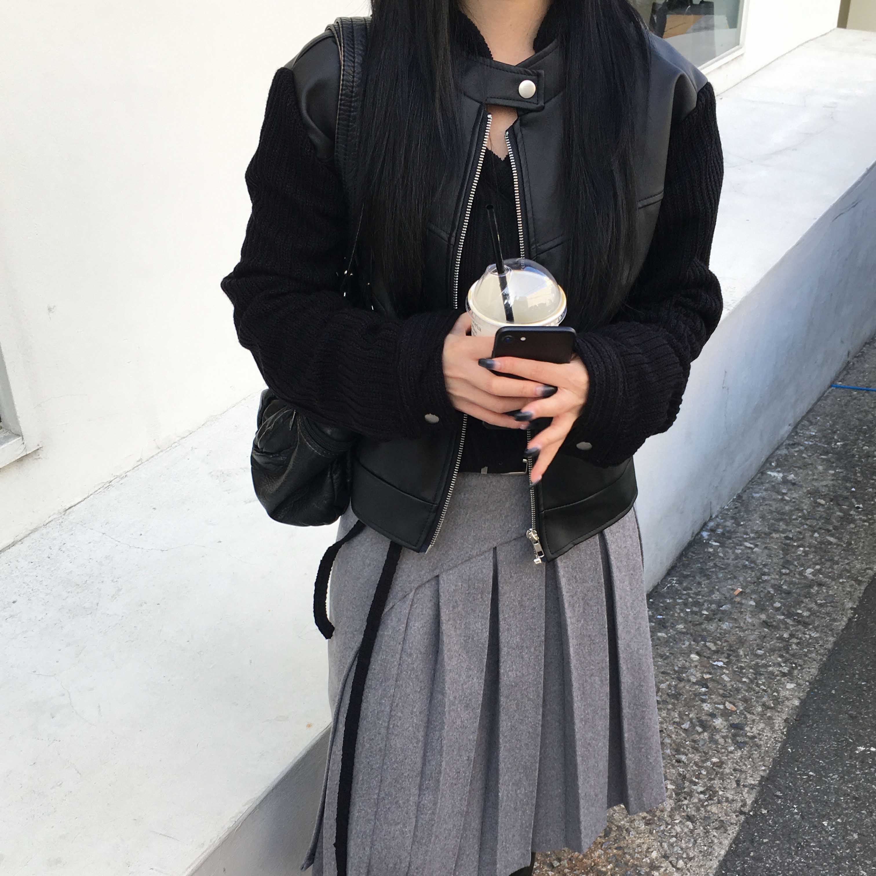 Leather knit jacket