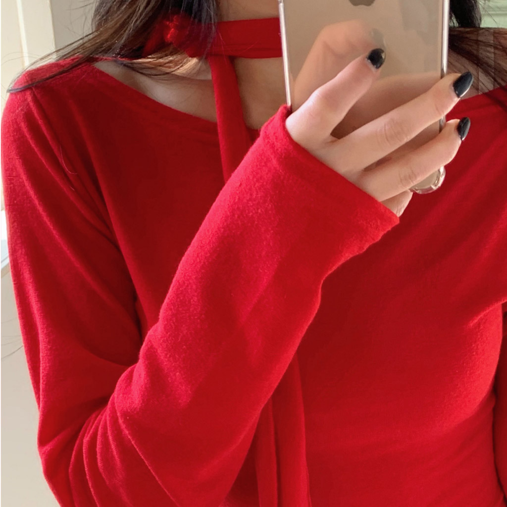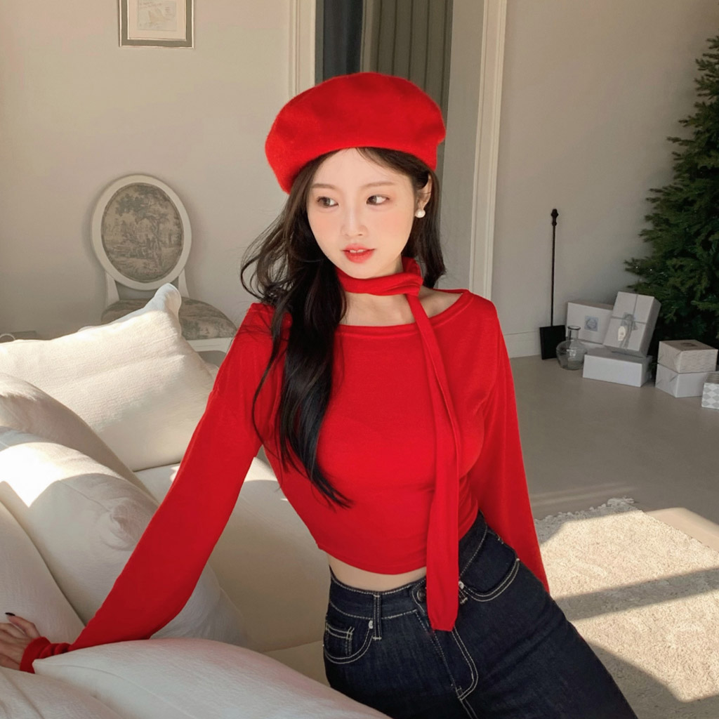 ウールタイオフショルダー裏起毛クロップドTシャツ