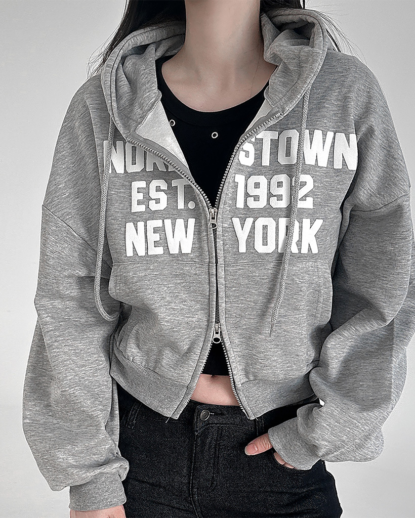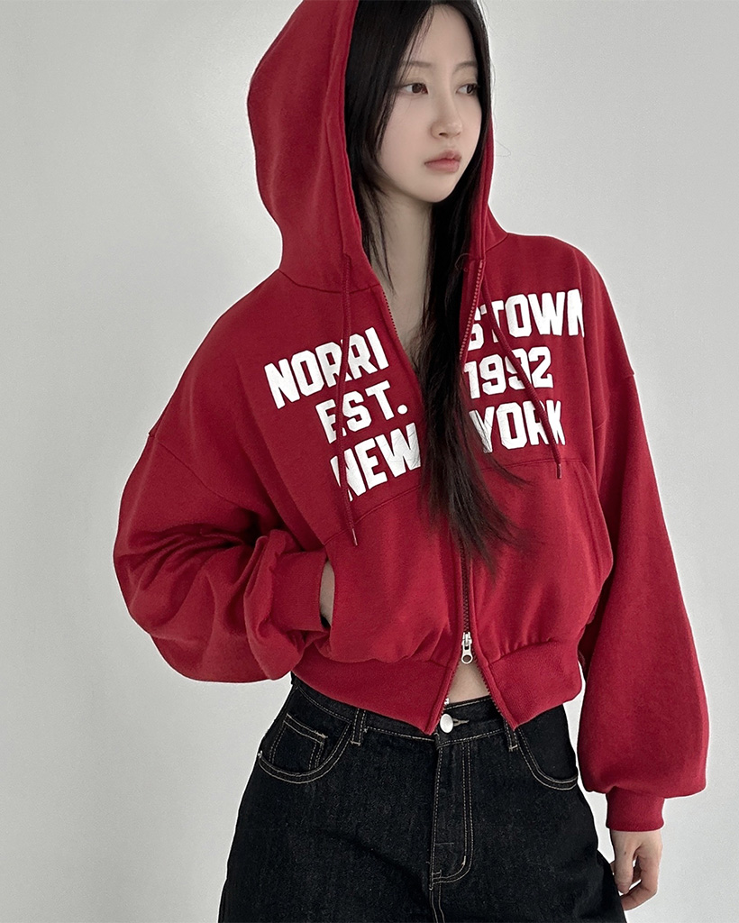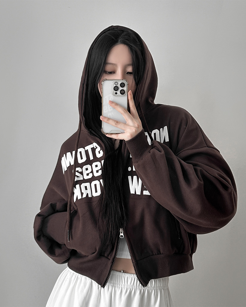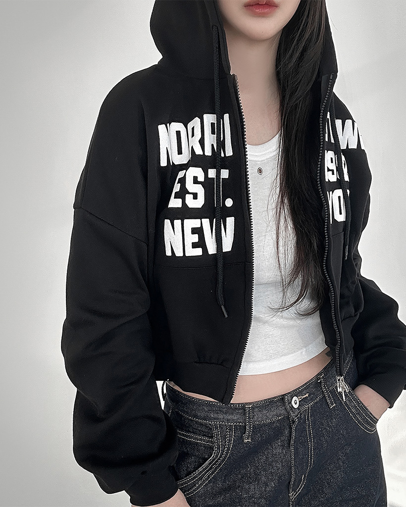 (5color)レタリングクロップド丈ジップアップパーカー